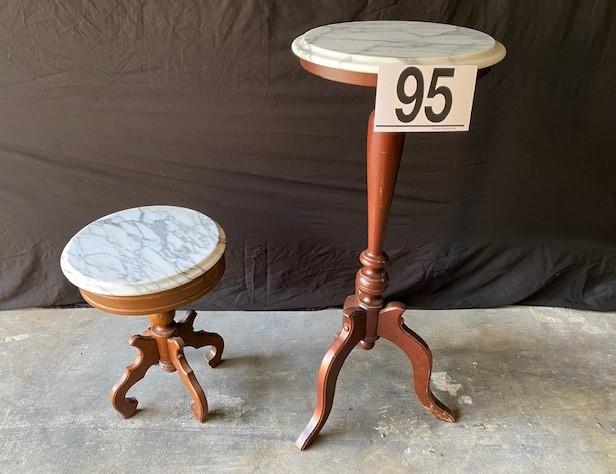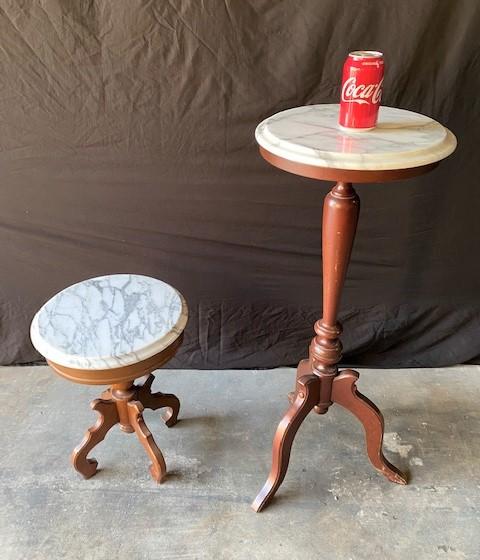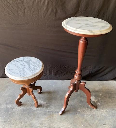 LOT#H95: Pair of Marble Top Mahogany Plant Stands