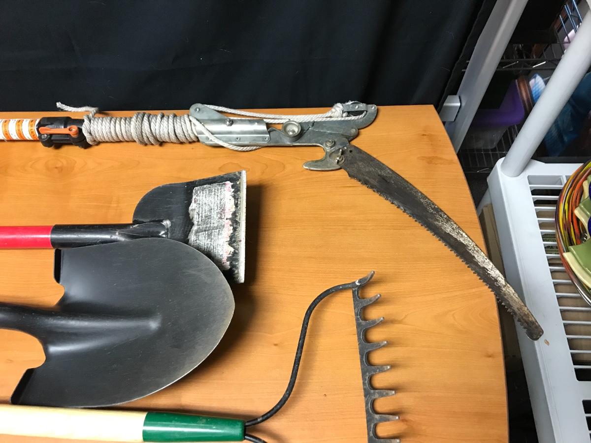 Garden Tool Lot Rakes Shovel Spade Branch Cutter Saw