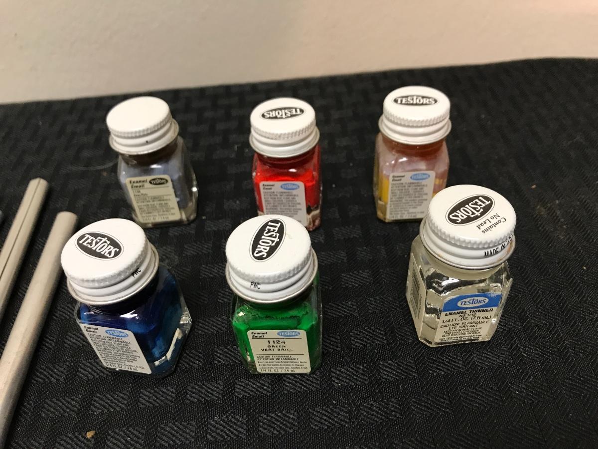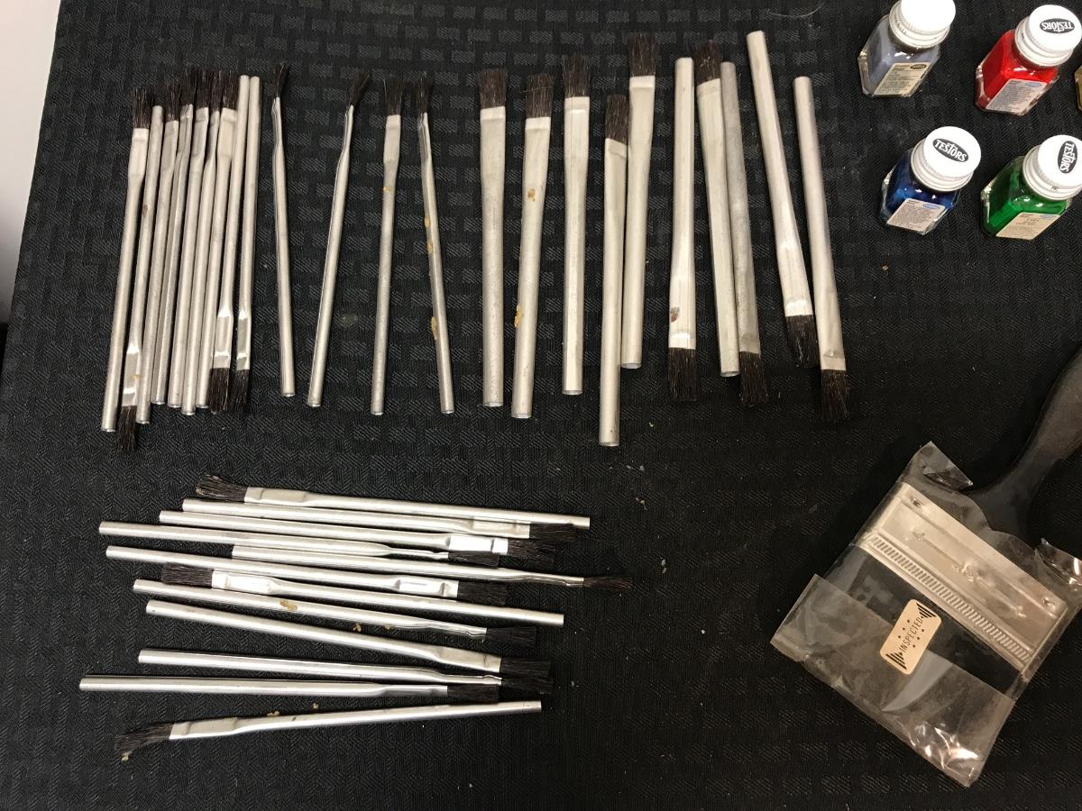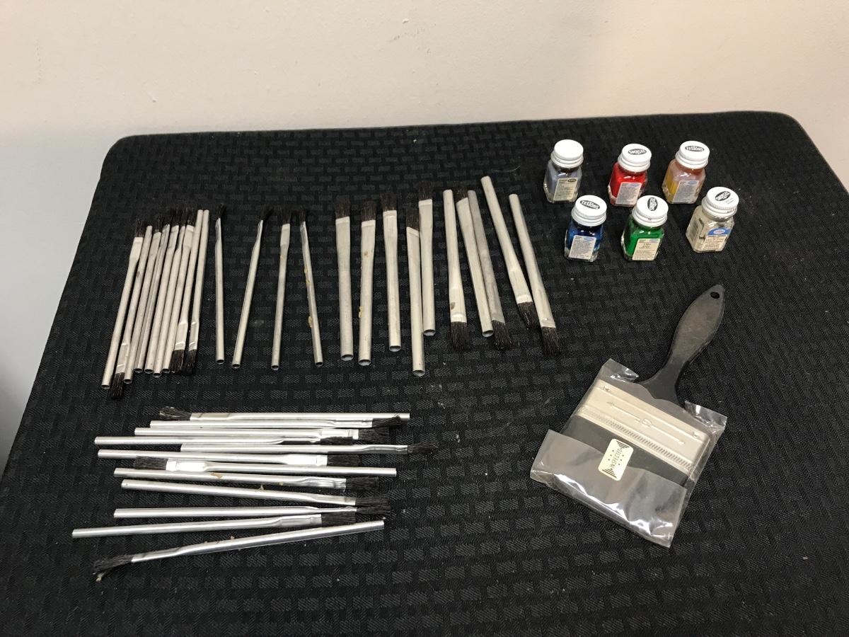 Lot of Hobby Paint Brushes and Paint, paint quality unknown because of age.