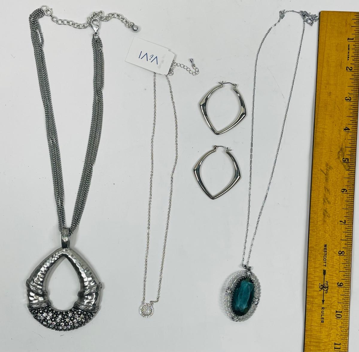 Jewelry Lot - 4pcs - necklaces and earrings - silver tone