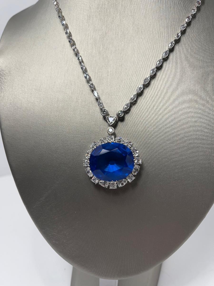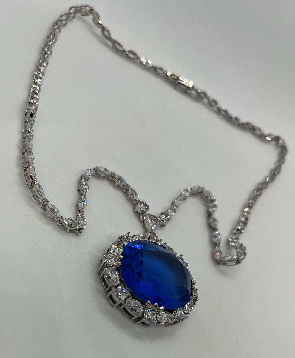 LOTJ9: New: Box & Presentation Folder Smithsonian Simulated Hope Diamond Limited Edition 18" Necklace