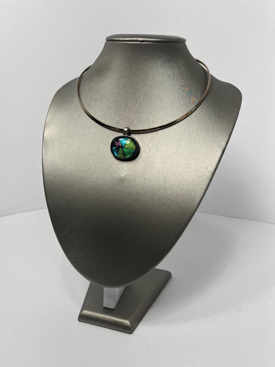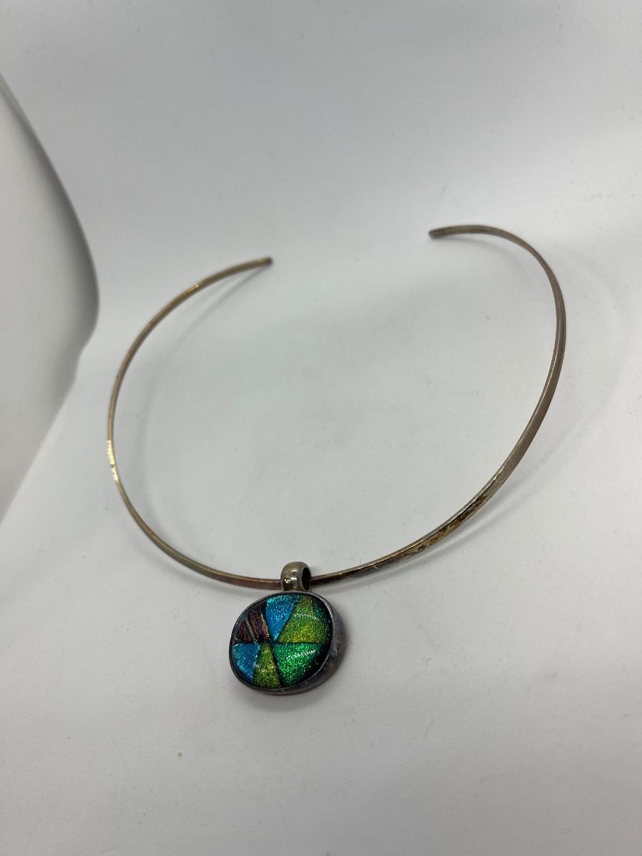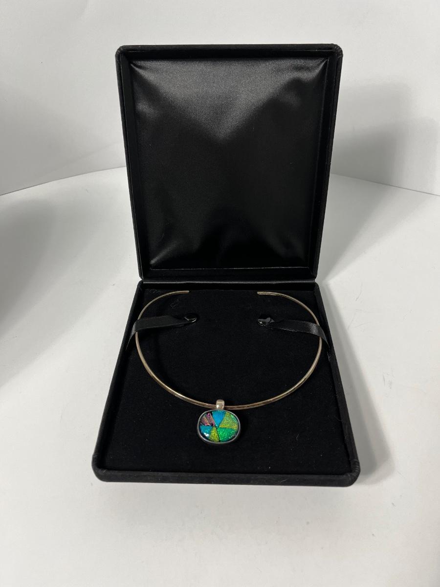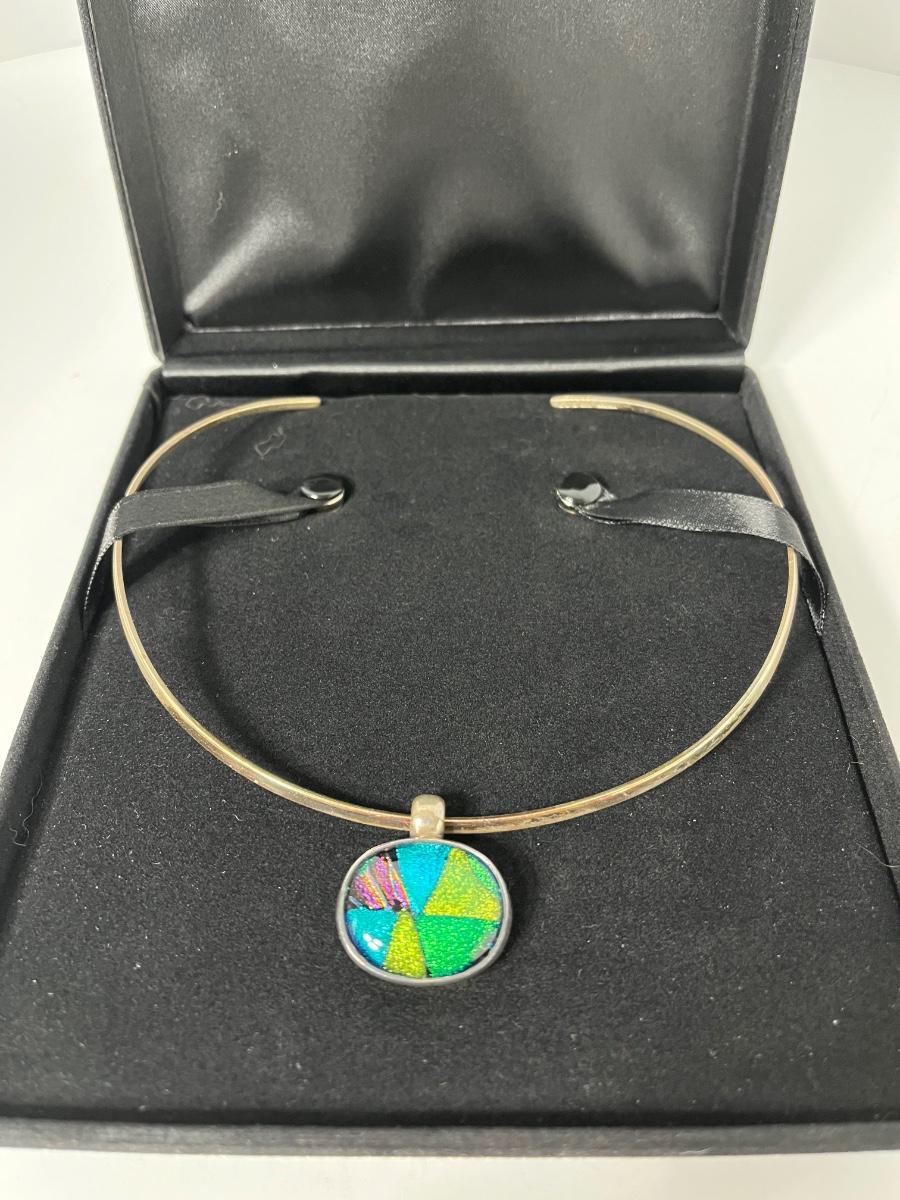 LOTJ15:New in Box Artisan Crafted Sterling Dichroic Glass Pendant with Collar