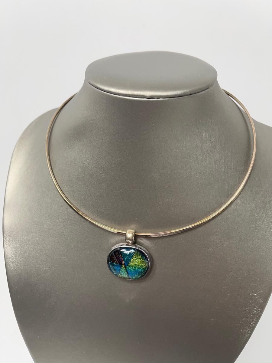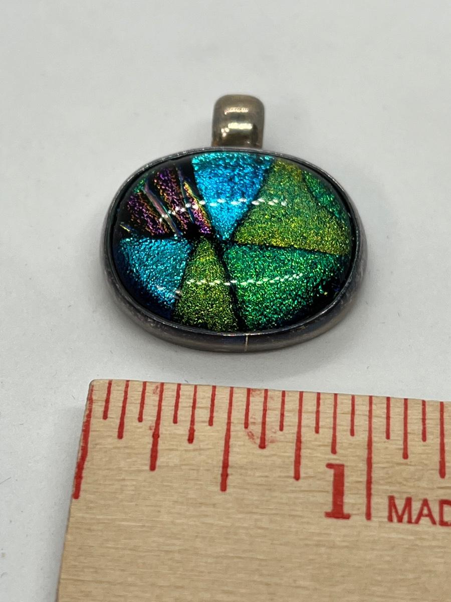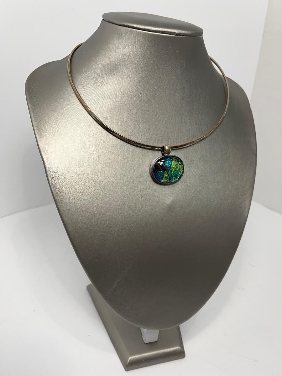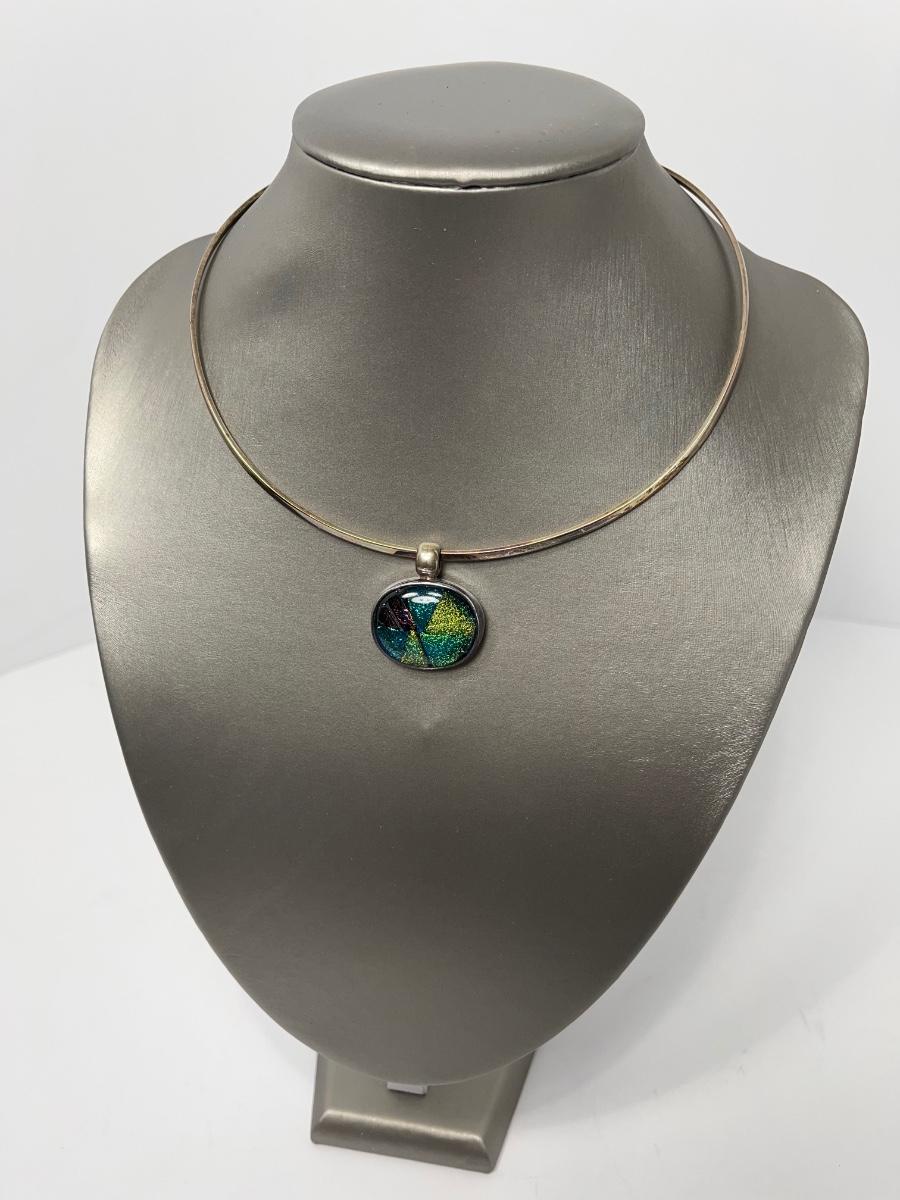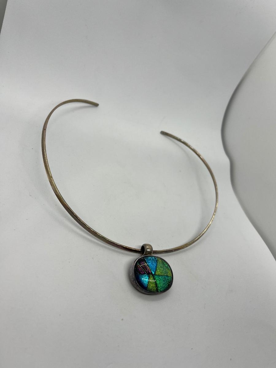 LOTJ15:New in Box Artisan Crafted Sterling Dichroic Glass Pendant with Collar