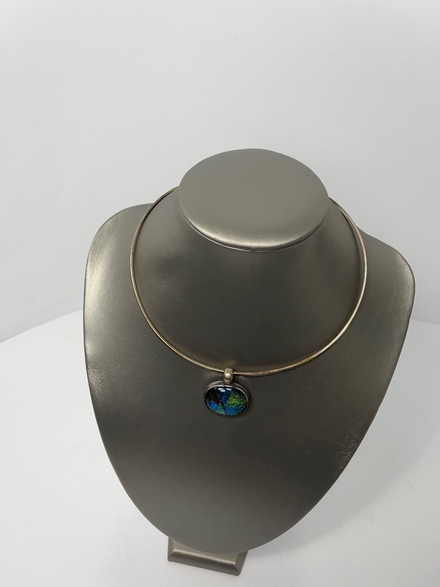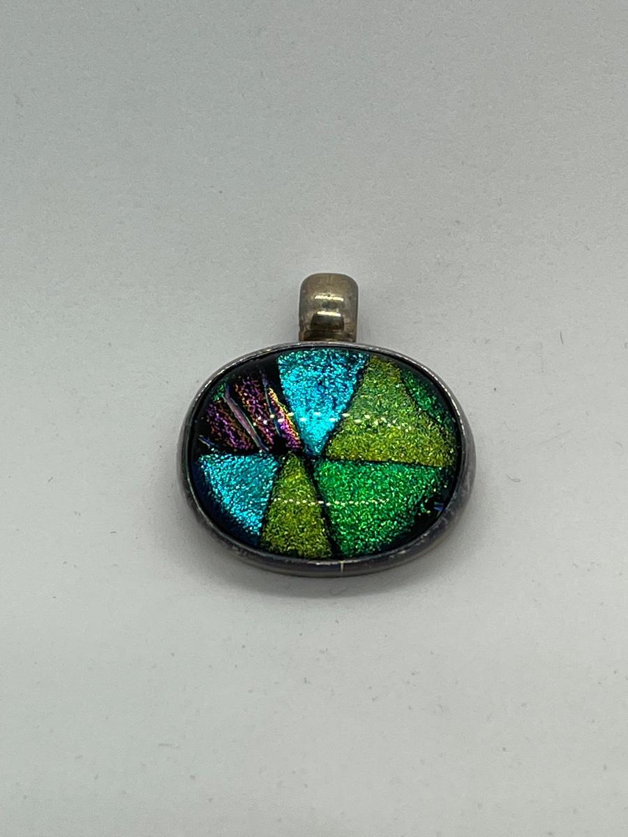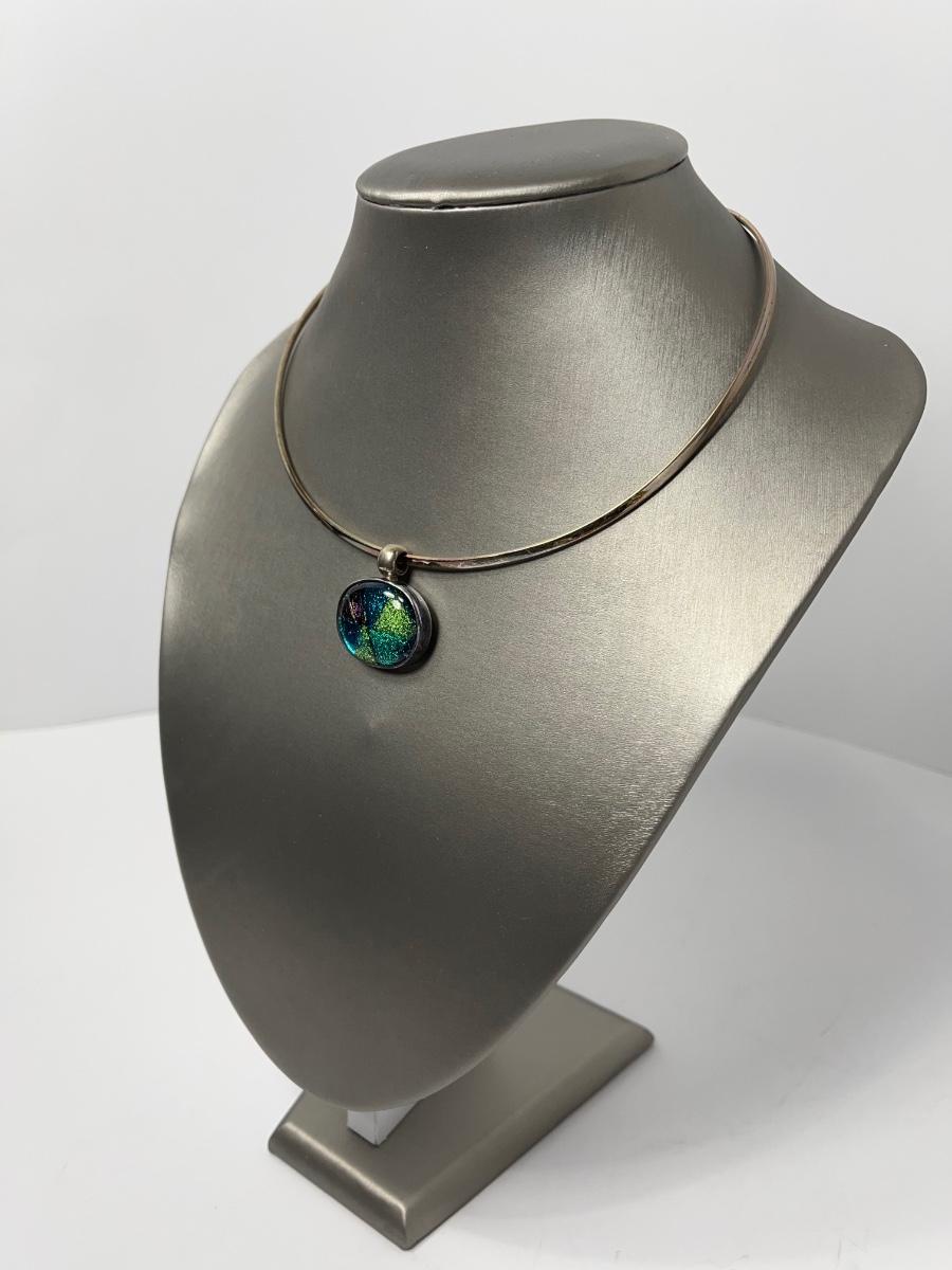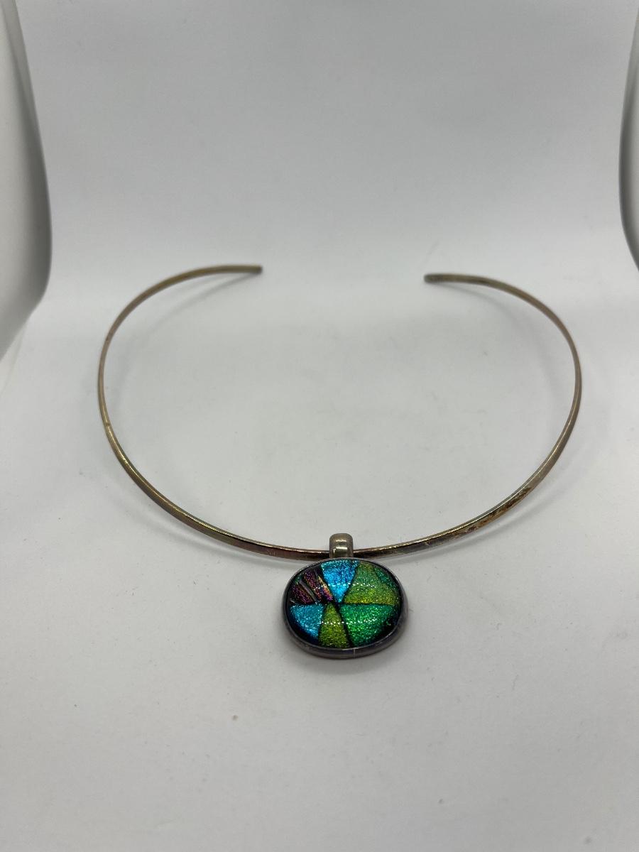 LOTJ15:New in Box Artisan Crafted Sterling Dichroic Glass Pendant with Collar
