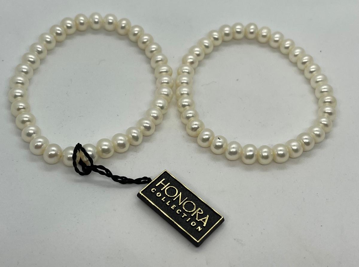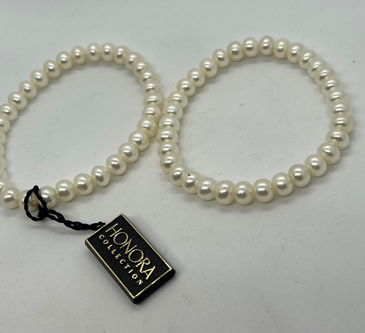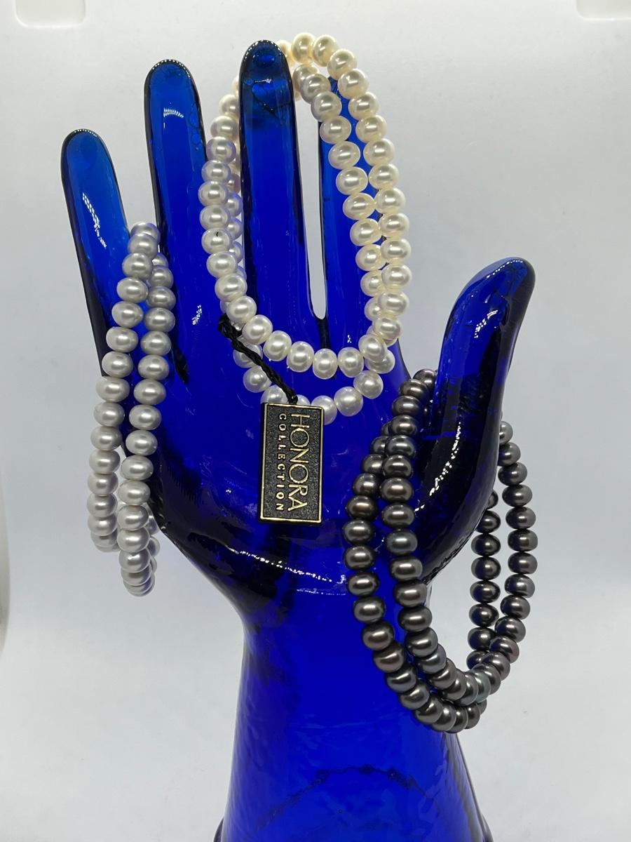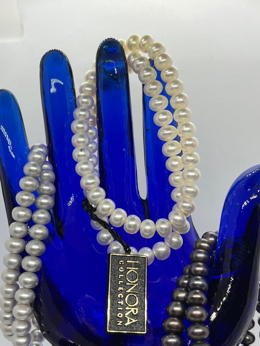 LOTJ36: New in box Honora Cultured Freshwater Pearls st of 6 Stretch bracelets White, grey and black