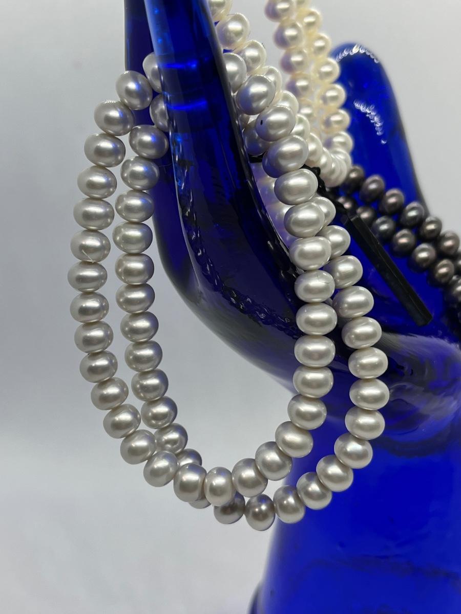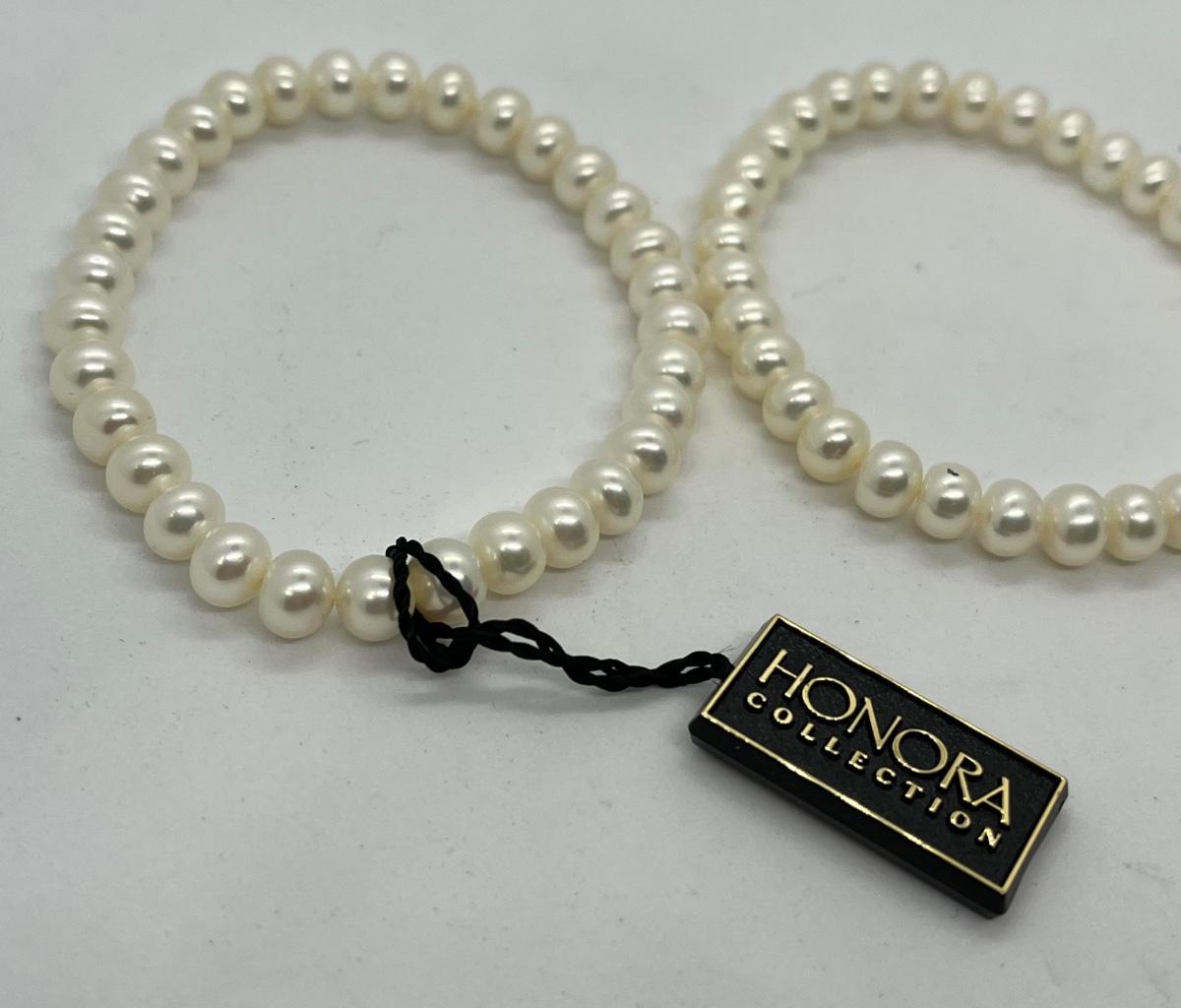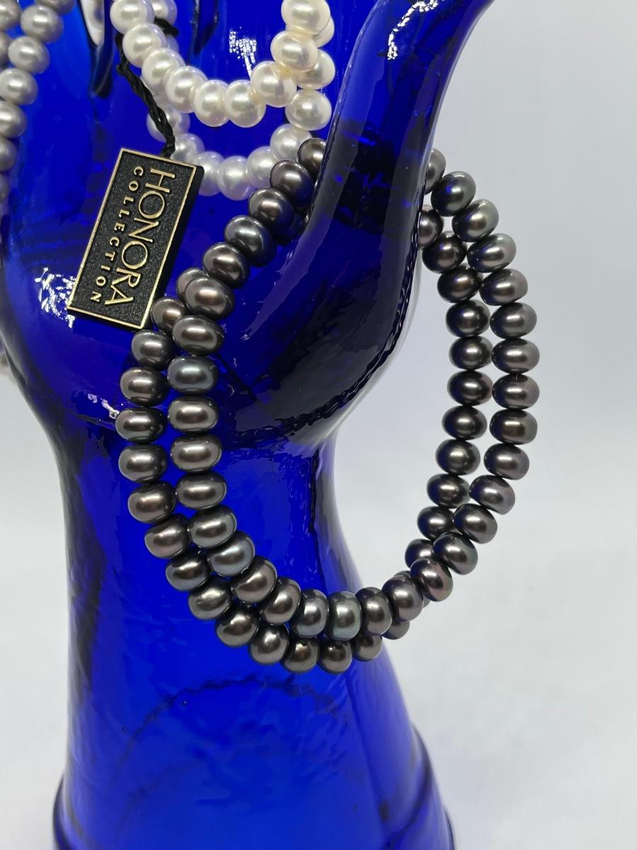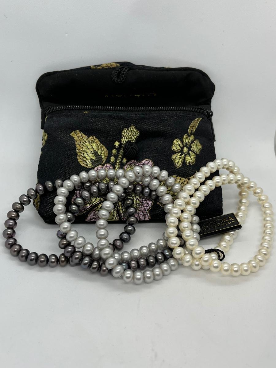 LOTJ36: New in box Honora Cultured Freshwater Pearls st of 6 Stretch bracelets White, grey and black