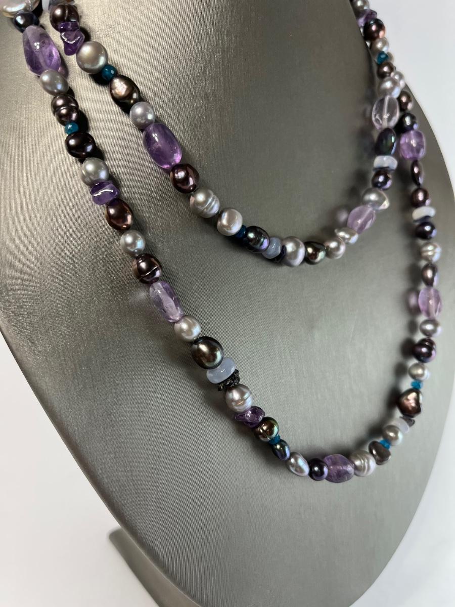 LOTJ38: New in box Honora 42" Strand Cutured Freshwater Pearls (Dark A-D)