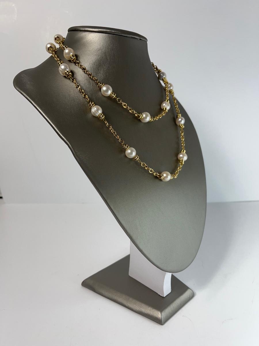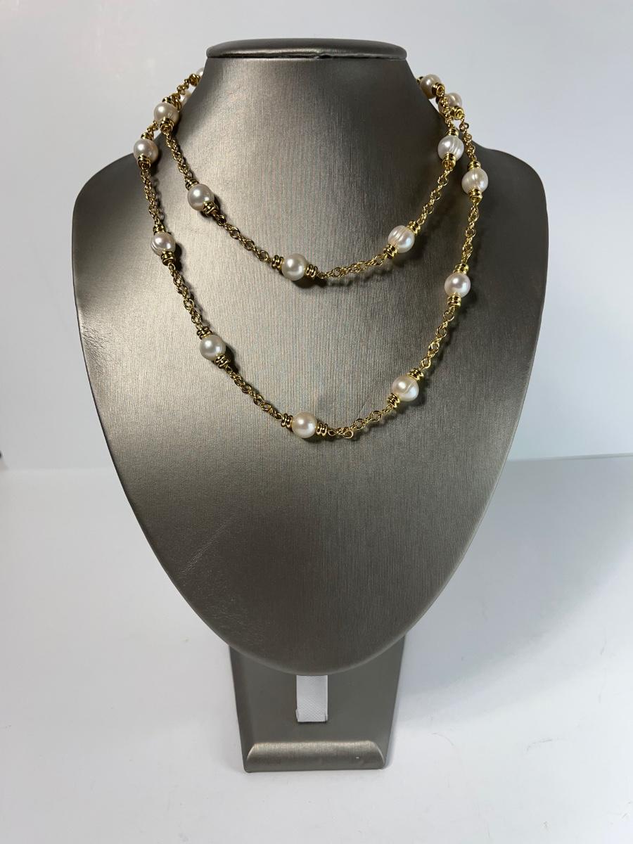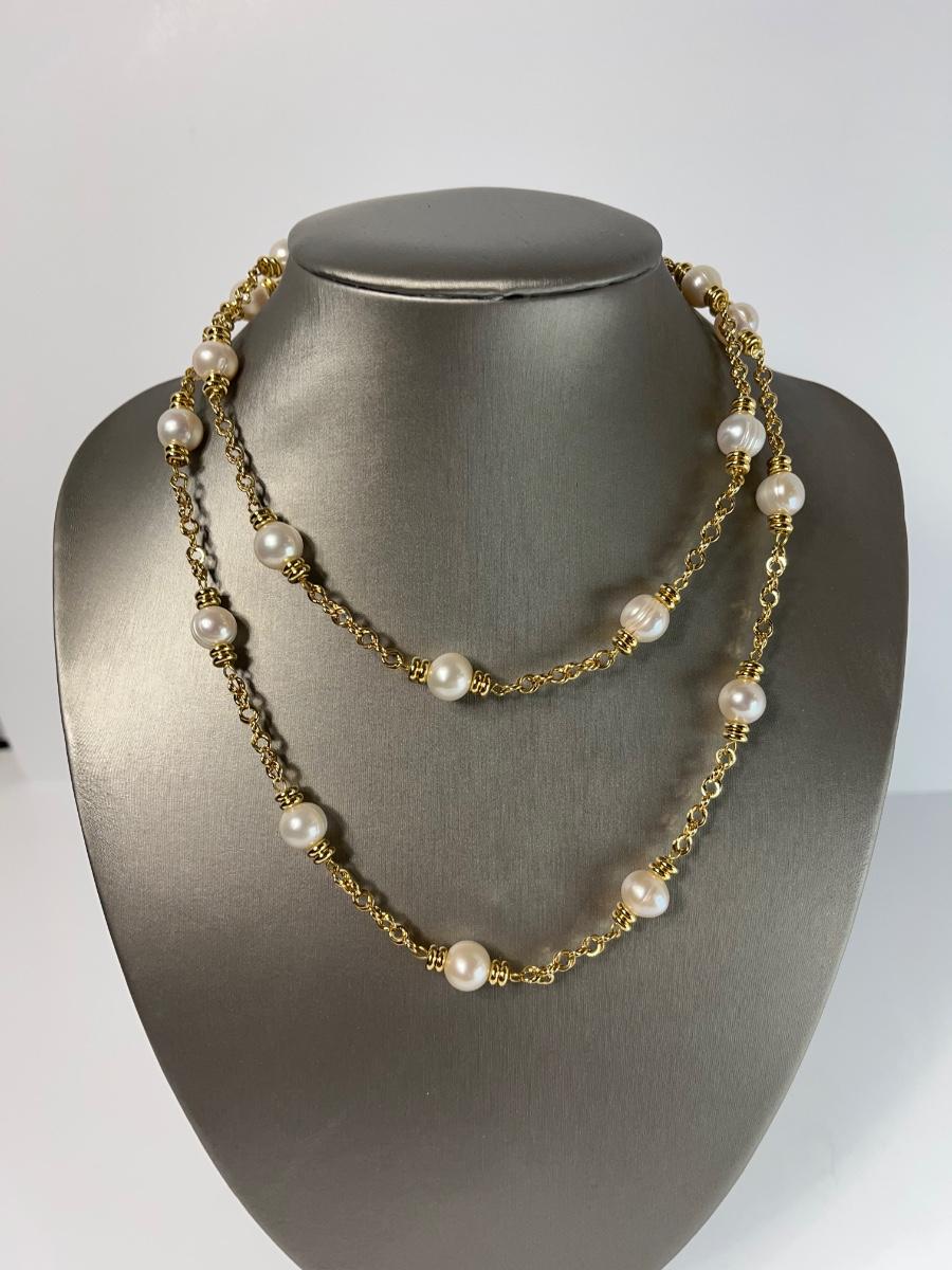 LOTJ46: New in box Honora Cultured Pearl 36" Necklace Yellow Bronze Italy