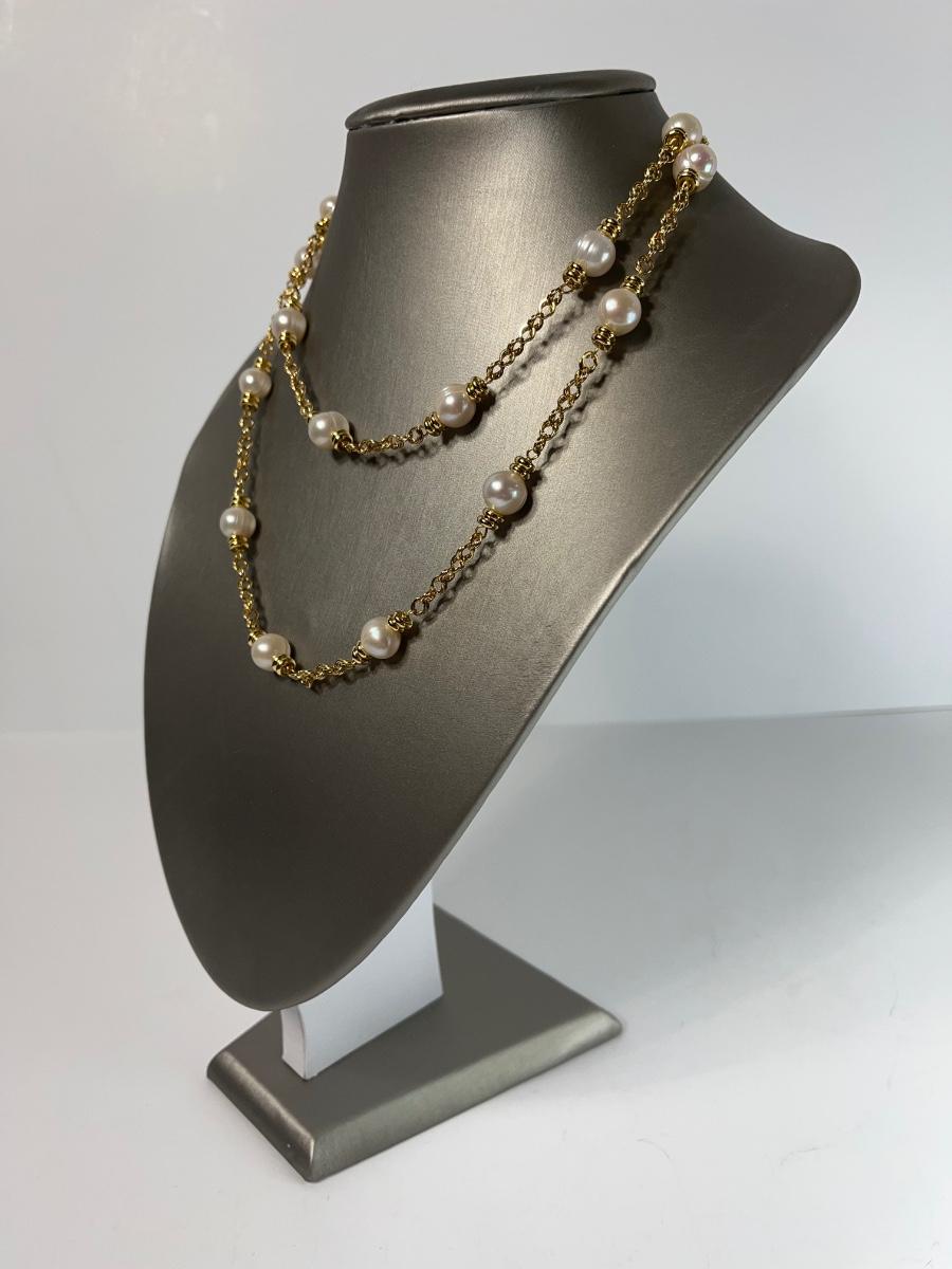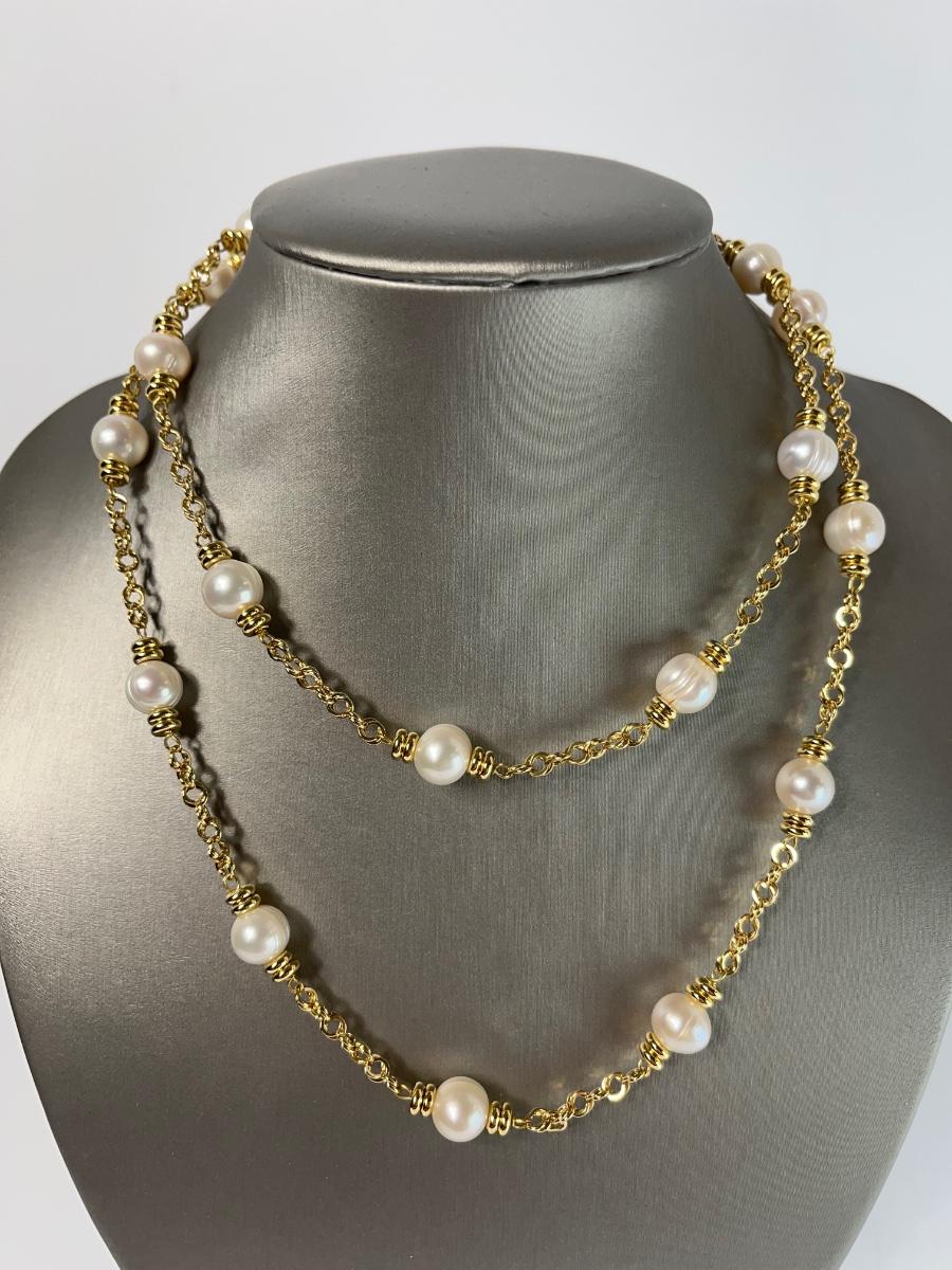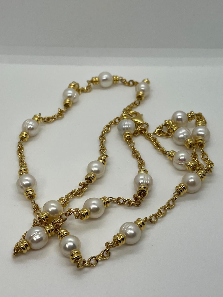 LOTJ46: New in box Honora Cultured Pearl 36" Necklace Yellow Bronze Italy