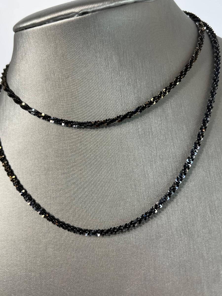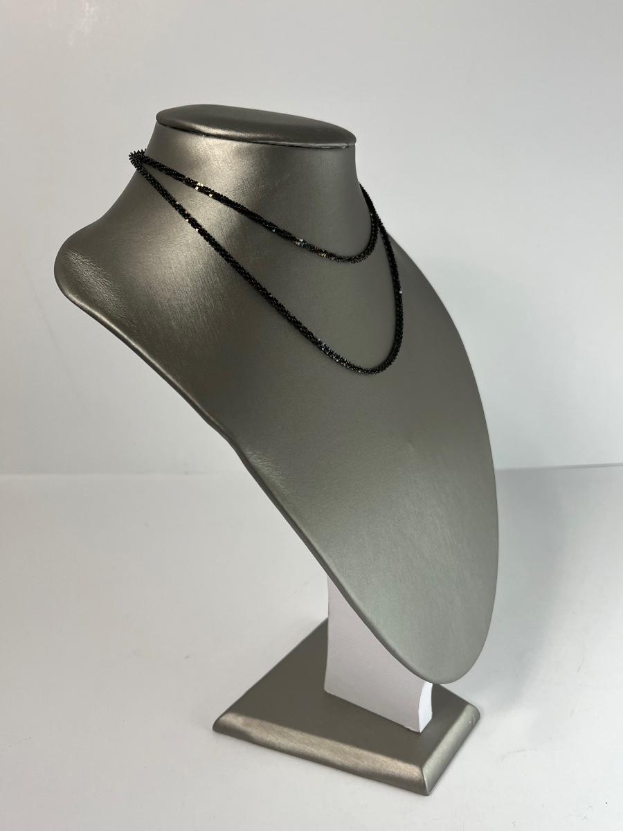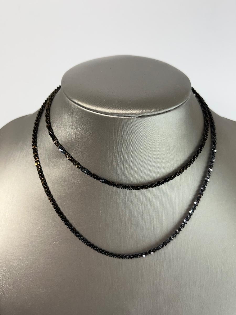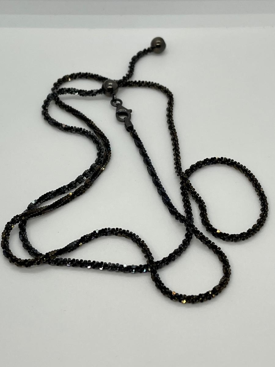 LOTJ47: New in box Vicenza Italy 36" Adjustable Sterling Silver Chain Black Margherita 10.6g