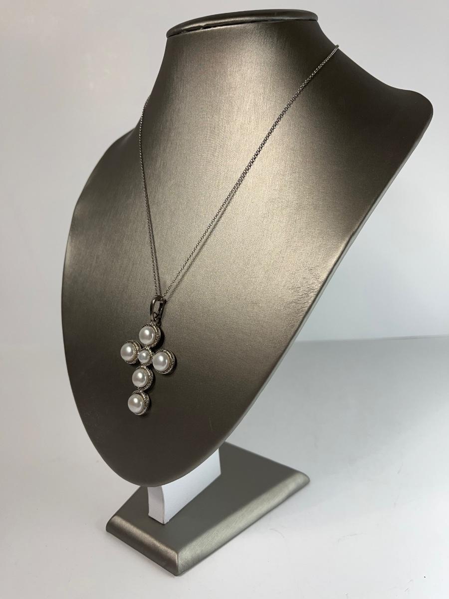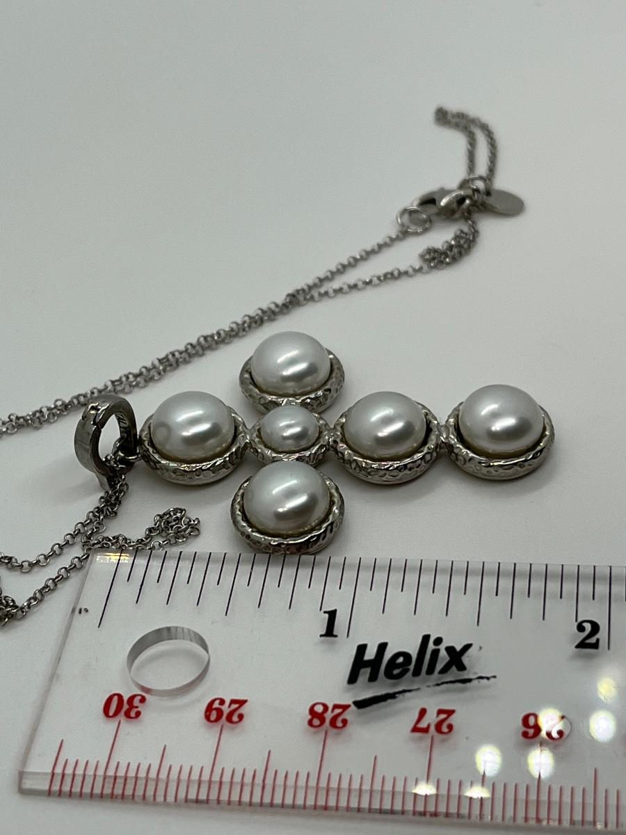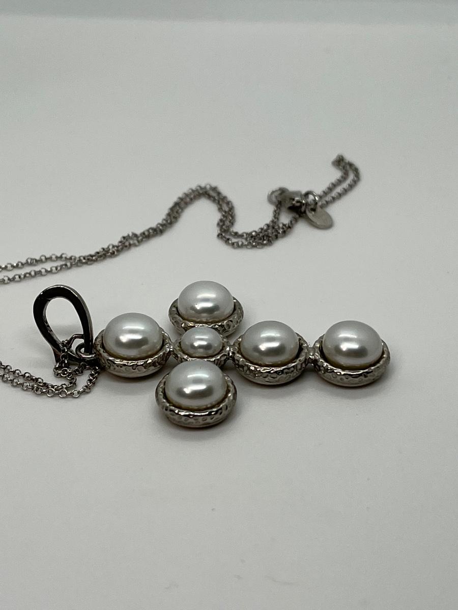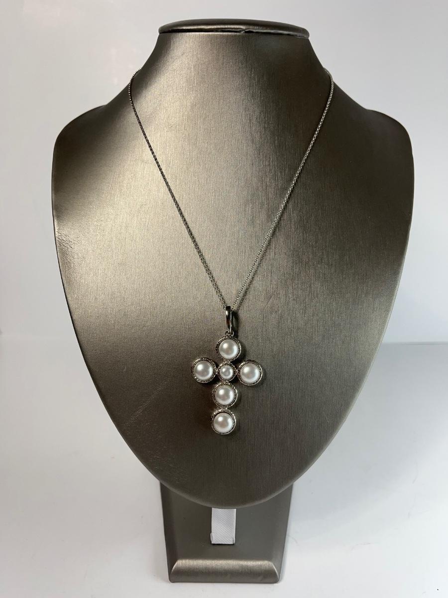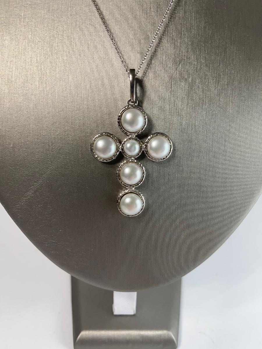 LOTJ52: New in box Honora Cultured White Pearl Cross Sterling Enhancer/Pendant and 18" Chain