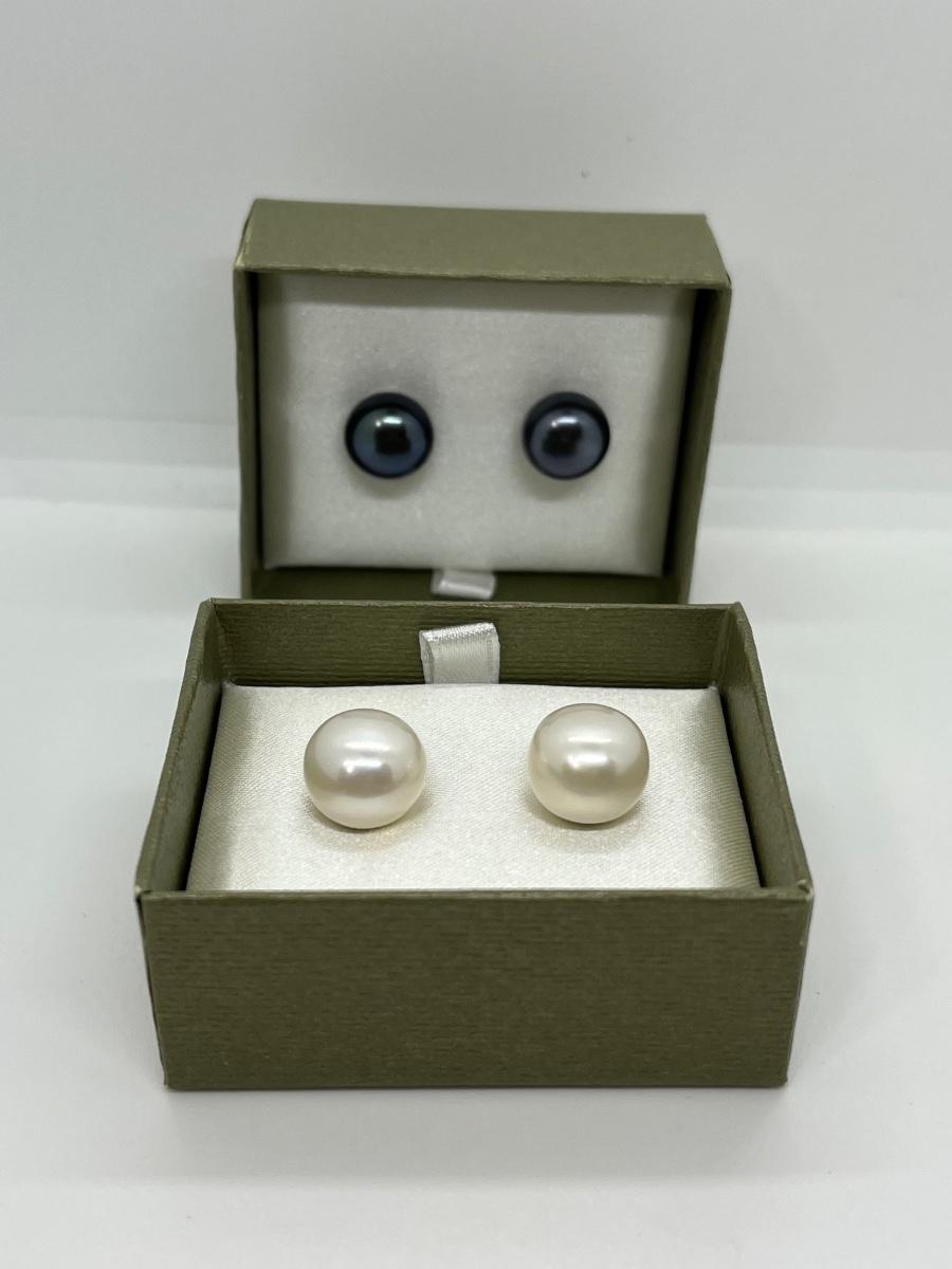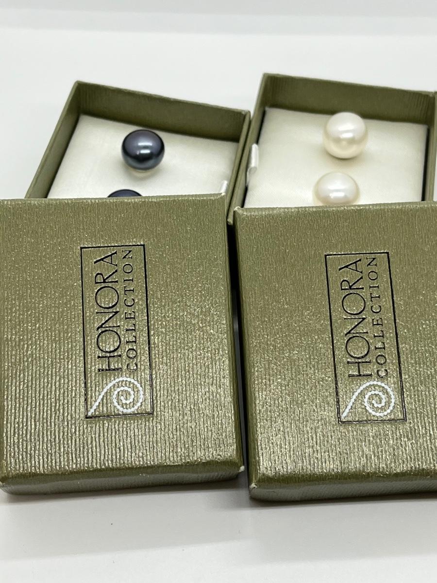 2 pairs -1 white 1 black - Honora cultured pearl pierced button earrings The pictures show condition, measurements if taken, and what is included in the lot. All items unless noted, are pre-owned and may or may not have been worn. Unless noted in the pictures or description, there are no boxes for the jewelry. Shipping will be offered at the actual shipping cost to your zip-code plus $4.00 per lot for packing and handling. We can do combined shipping. Items over $50.00 will have an added insurance charge, and will be signature required for delivery at the buyers expense. For a shipping quote, please email with zip code and items (lot) numbers. Treasure Me Estate Sales offers shipping as a courtesy and in doing so, reserves the right to choose the shipping supplies including whether not to send in an envelope or box to protect the integrity of the item. When the auction closes, and all items have sold, you will receive an invoice with all of your winning items. If you need shipping, and there is not a shipping charge on the invoice, please email for a quote and new invoice will be sent with shipping charges and pay at that time. Paying through PayPal helps so we can generate a label with tracking, but is not required. Thank you and please email with any questions.