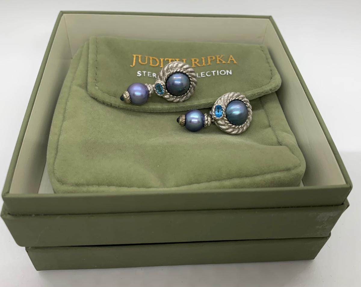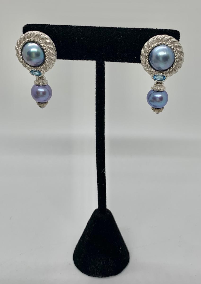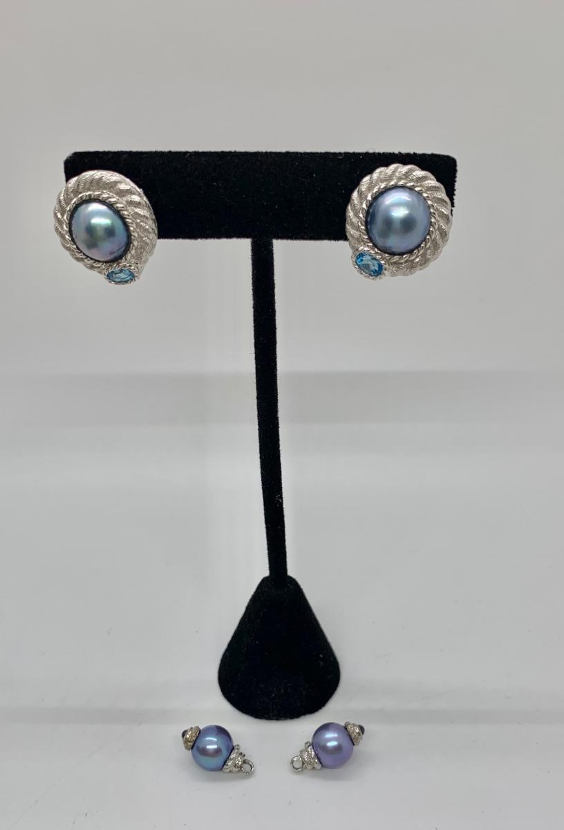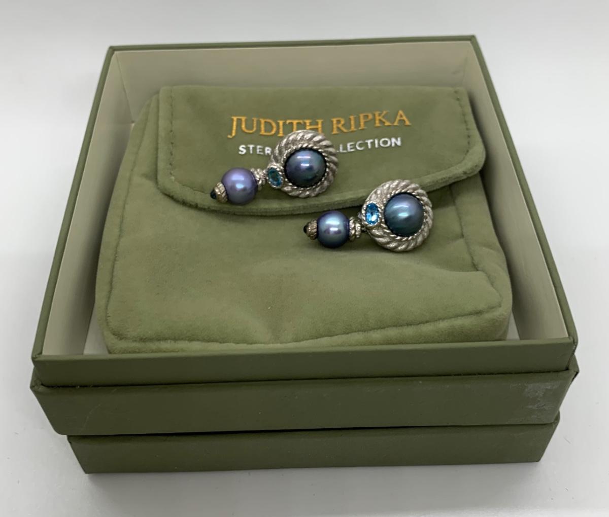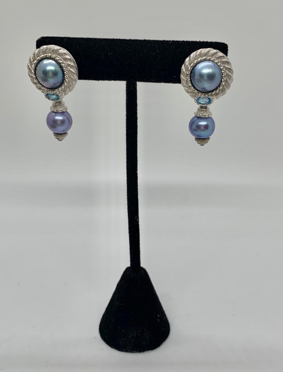 LOTJ62: New in Box Judith Ripka Cultured Mabe Pearl Pierced Earrings with Drop