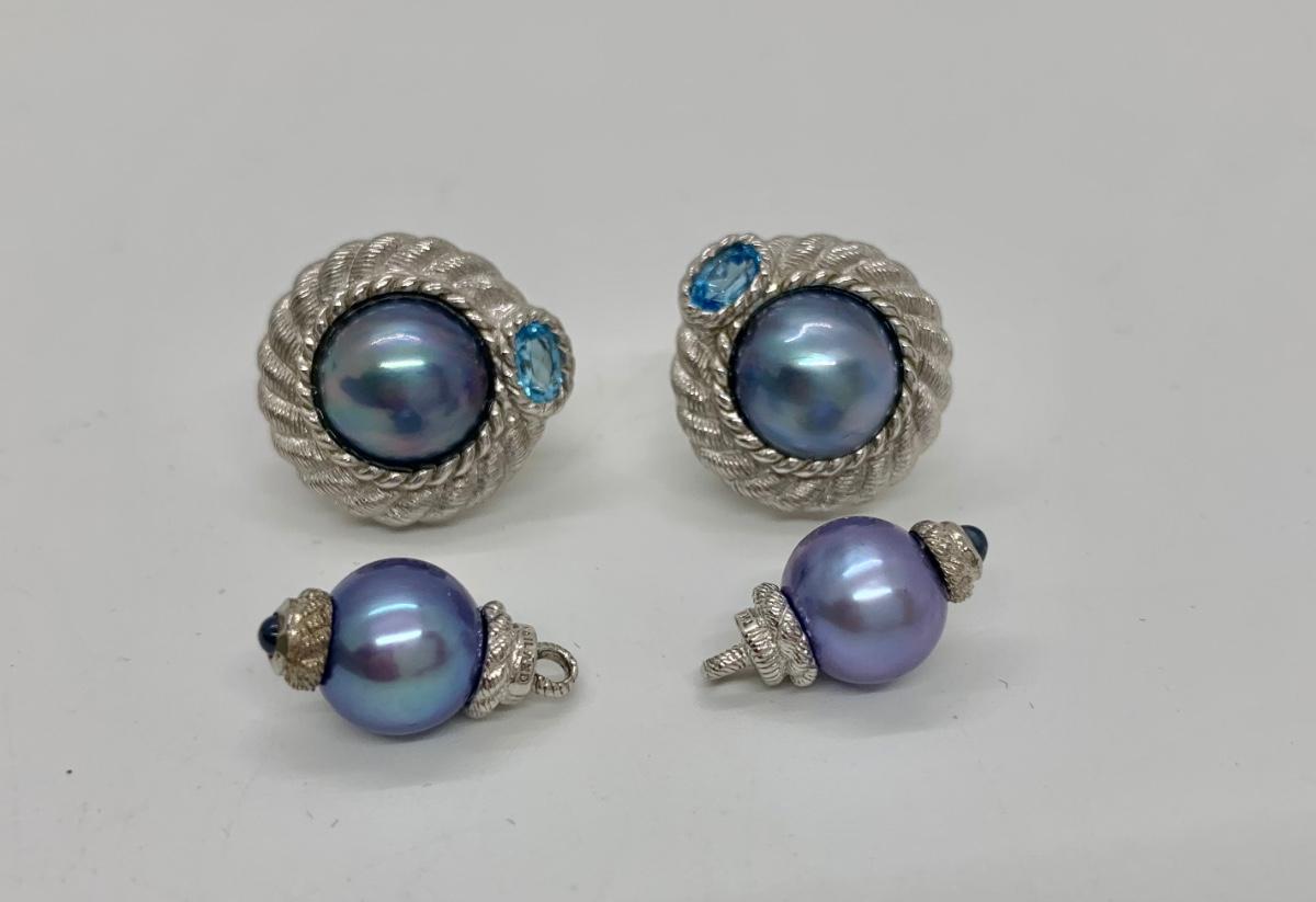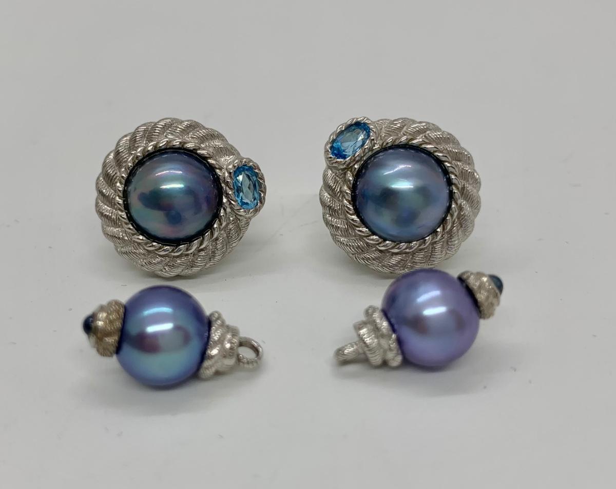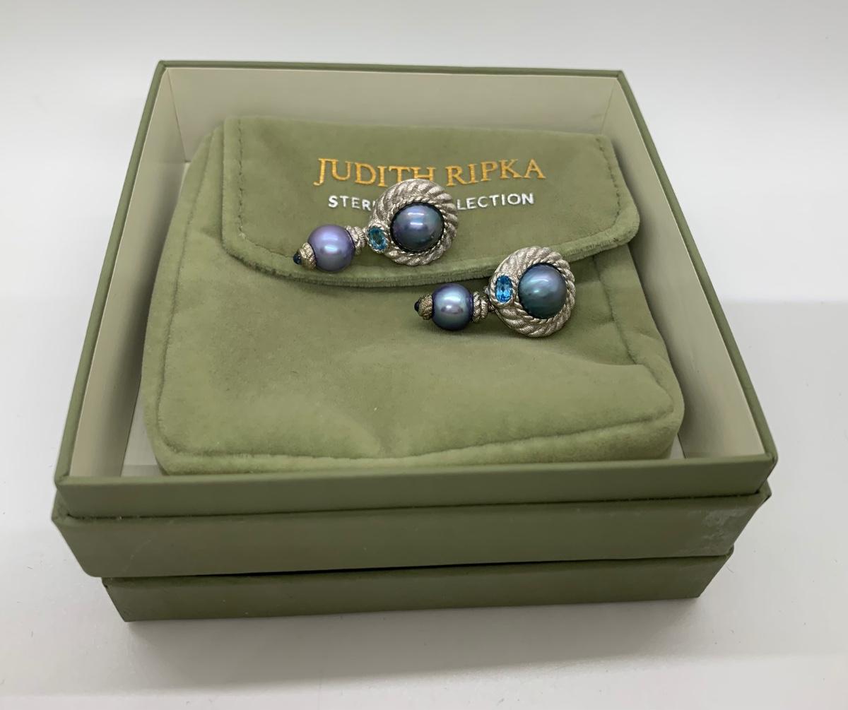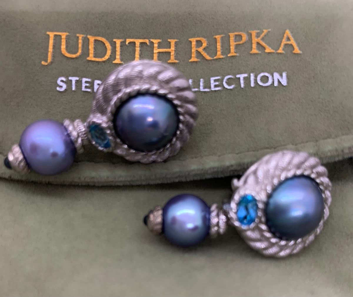 LOTJ62: New in Box Judith Ripka Cultured Mabe Pearl Pierced Earrings with Drop