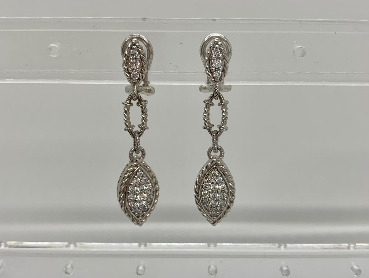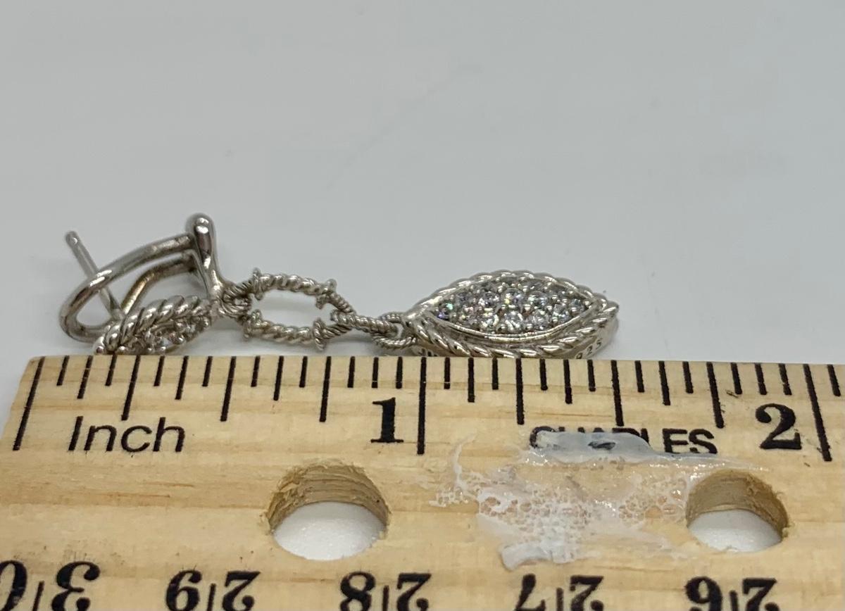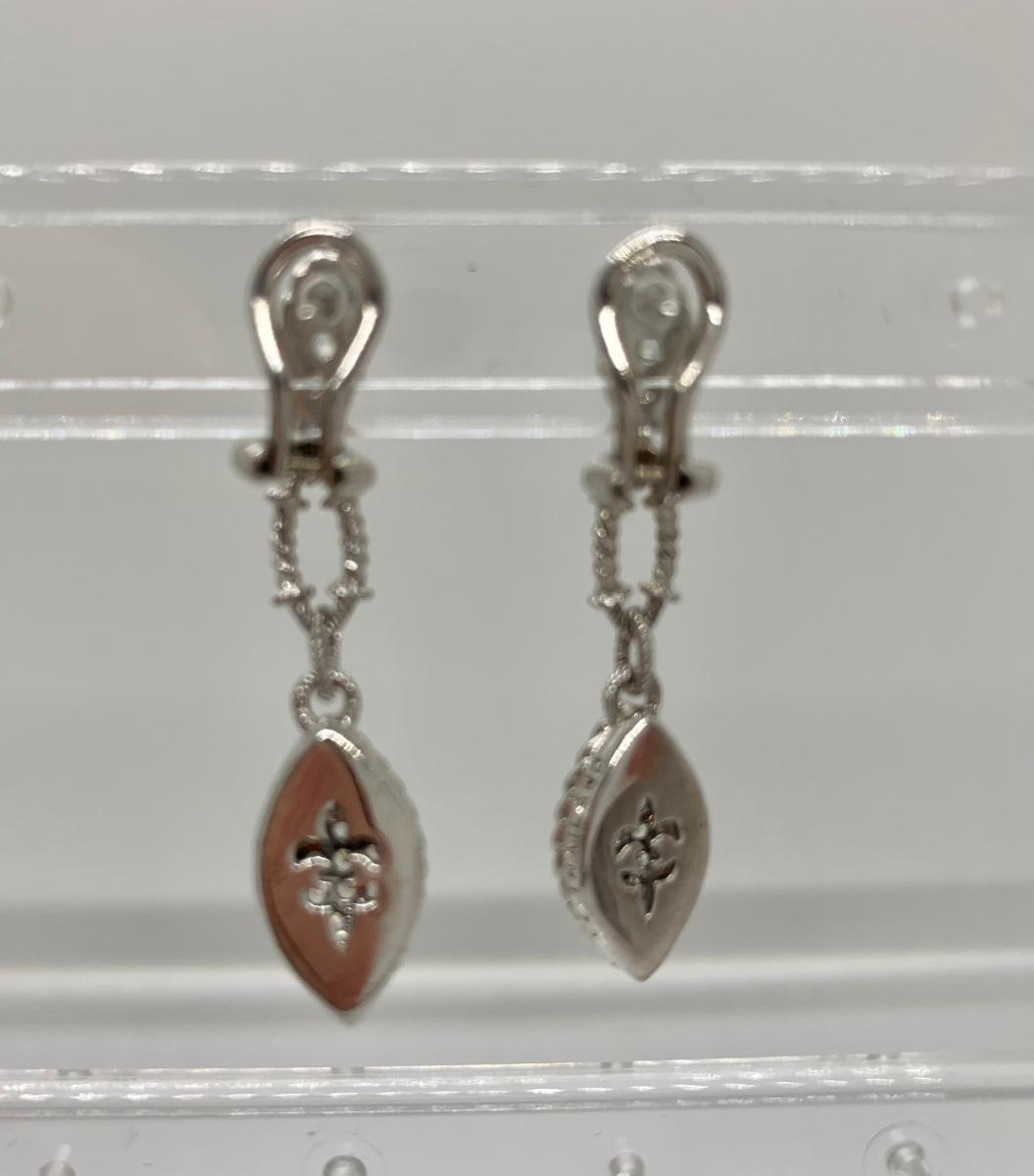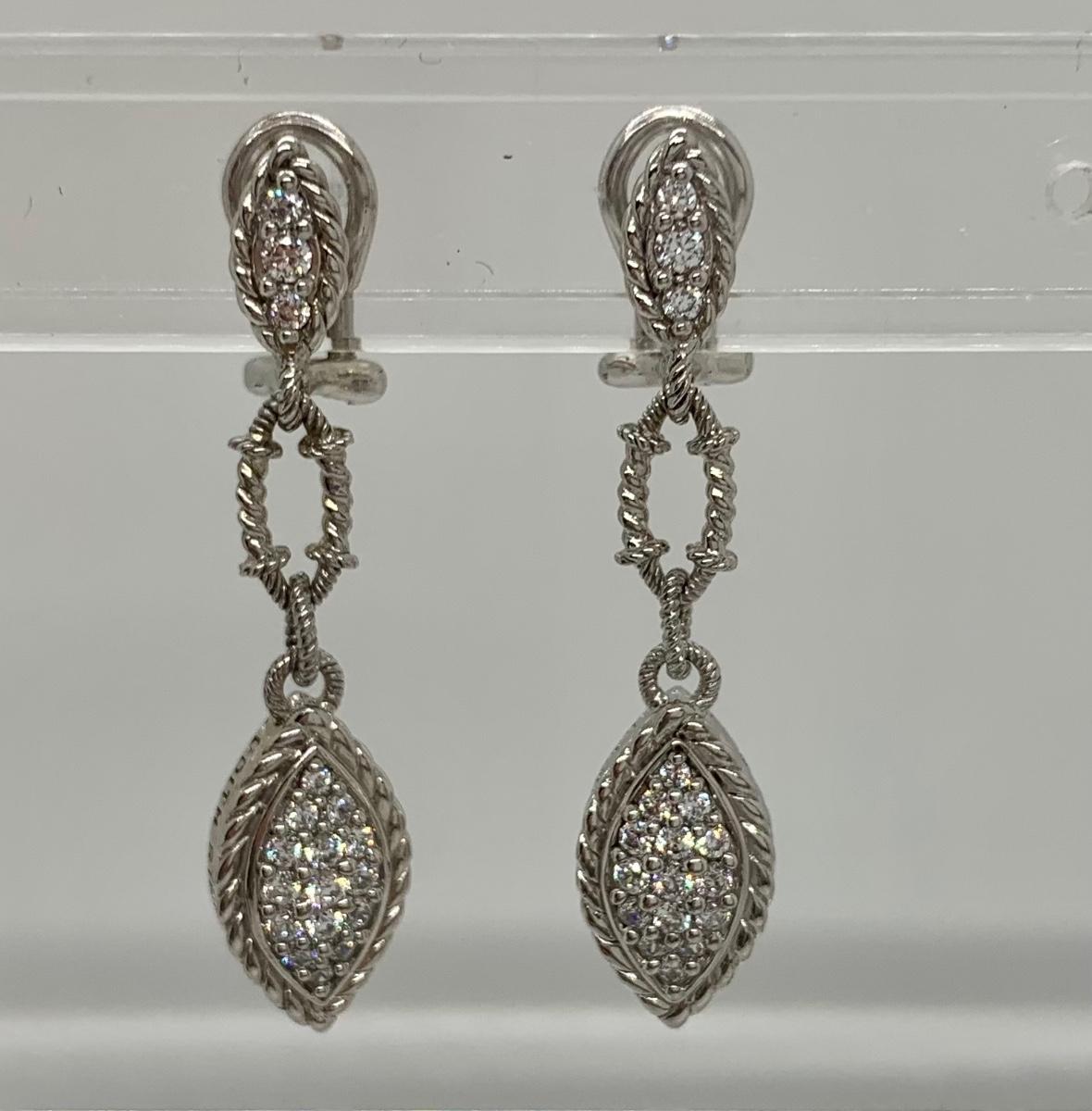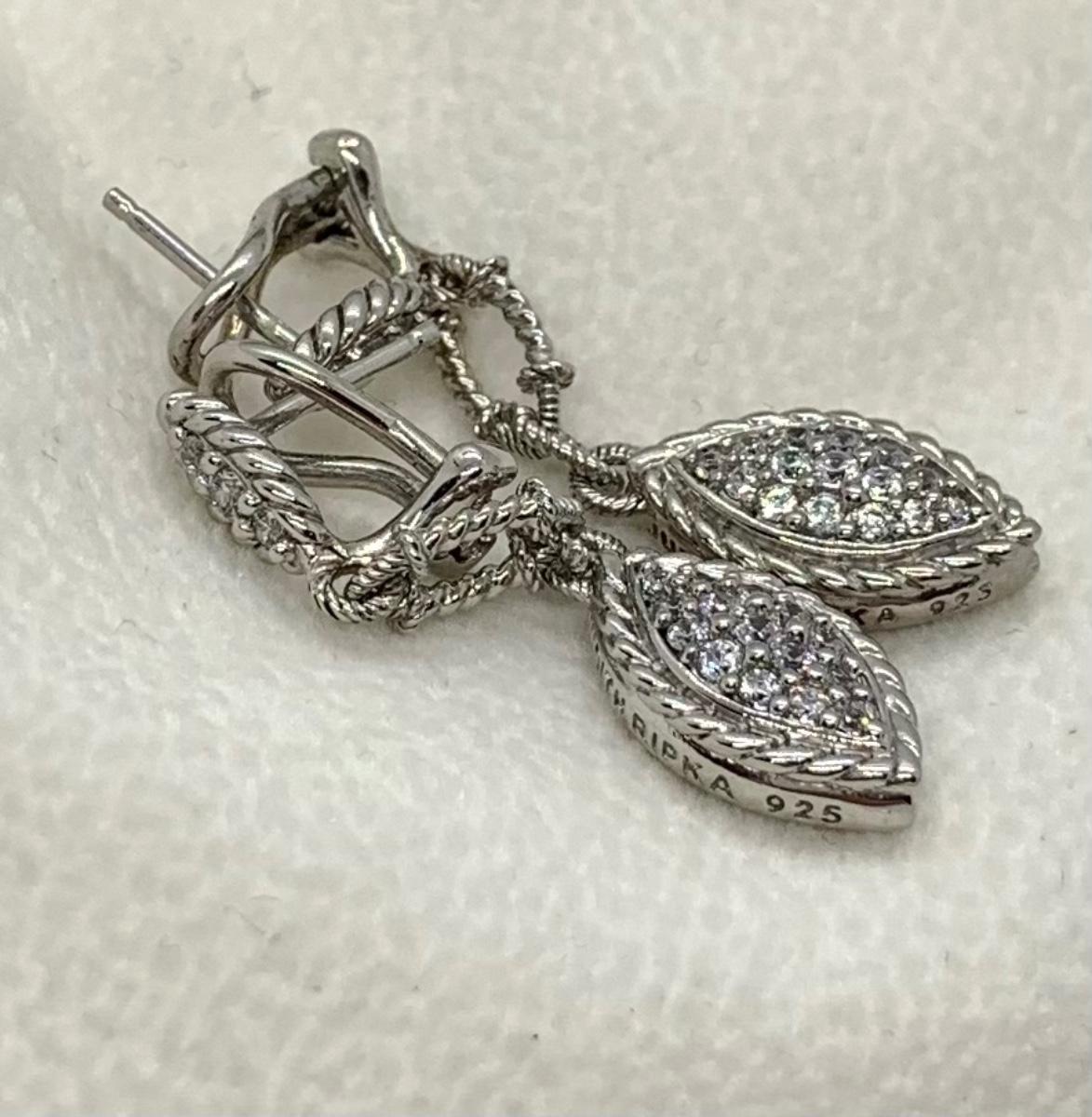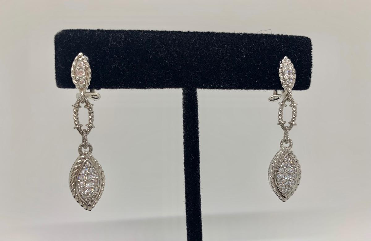 LOTJ64: New in box Judith Ripka Diamonique Sterling Silver Marquis Shape Pierced Leverback Dangle Earrings