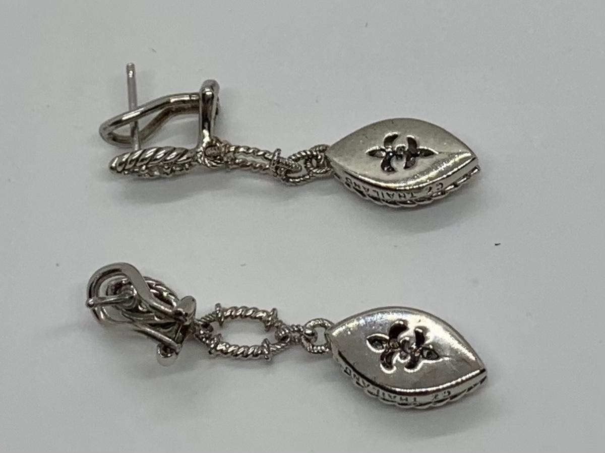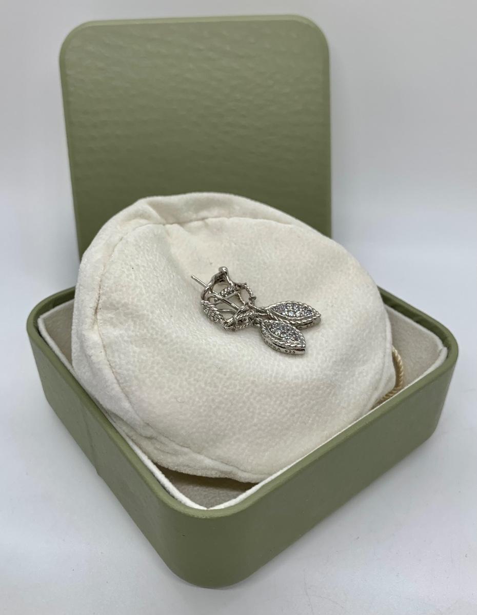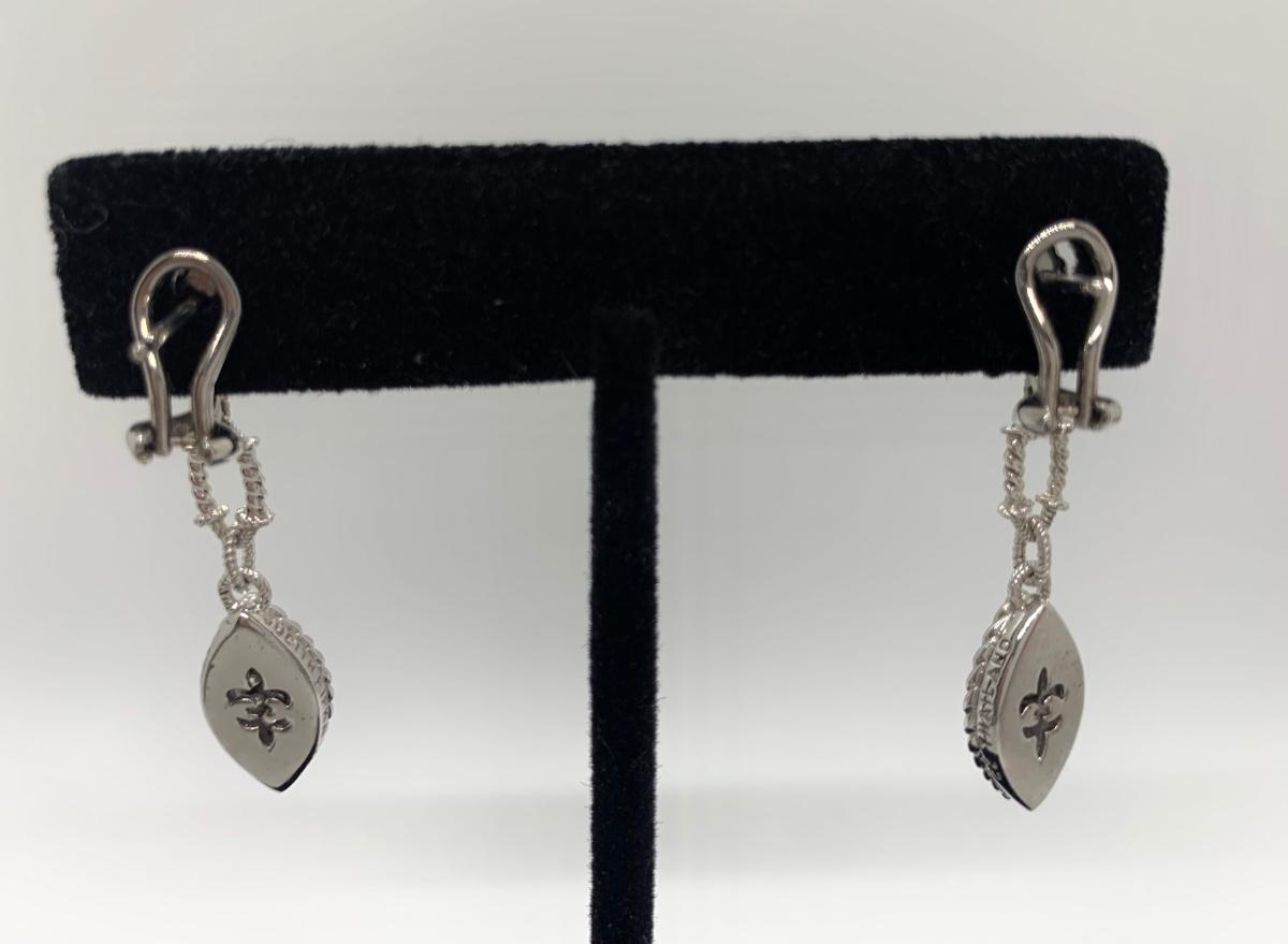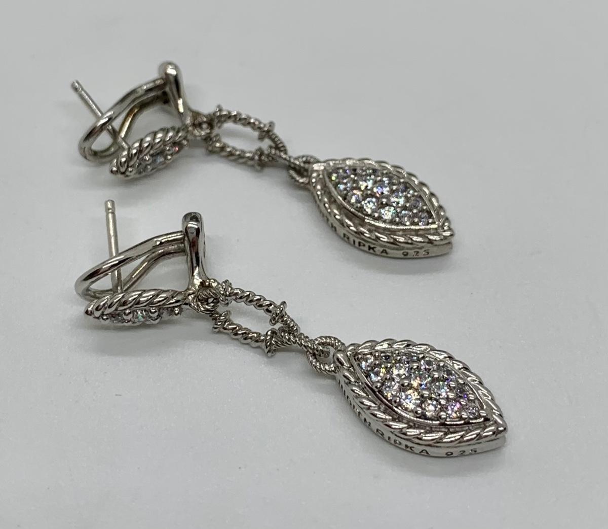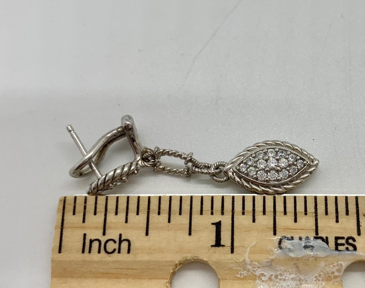 LOTJ64: New in box Judith Ripka Diamonique Sterling Silver Marquis Shape Pierced Leverback Dangle Earrings