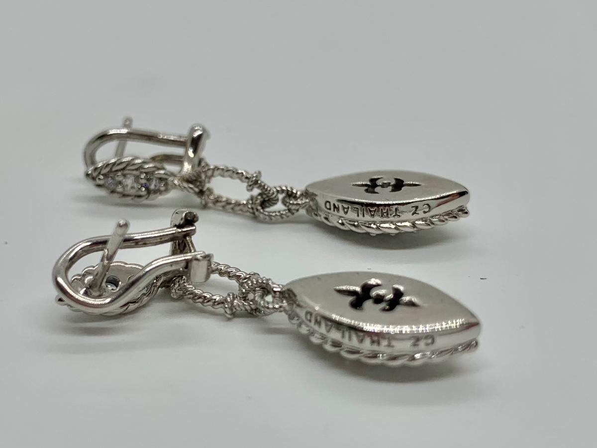 LOTJ64: New in box Judith Ripka Diamonique Sterling Silver  Marquis Shape Pierced Leverback Dangle Earrings