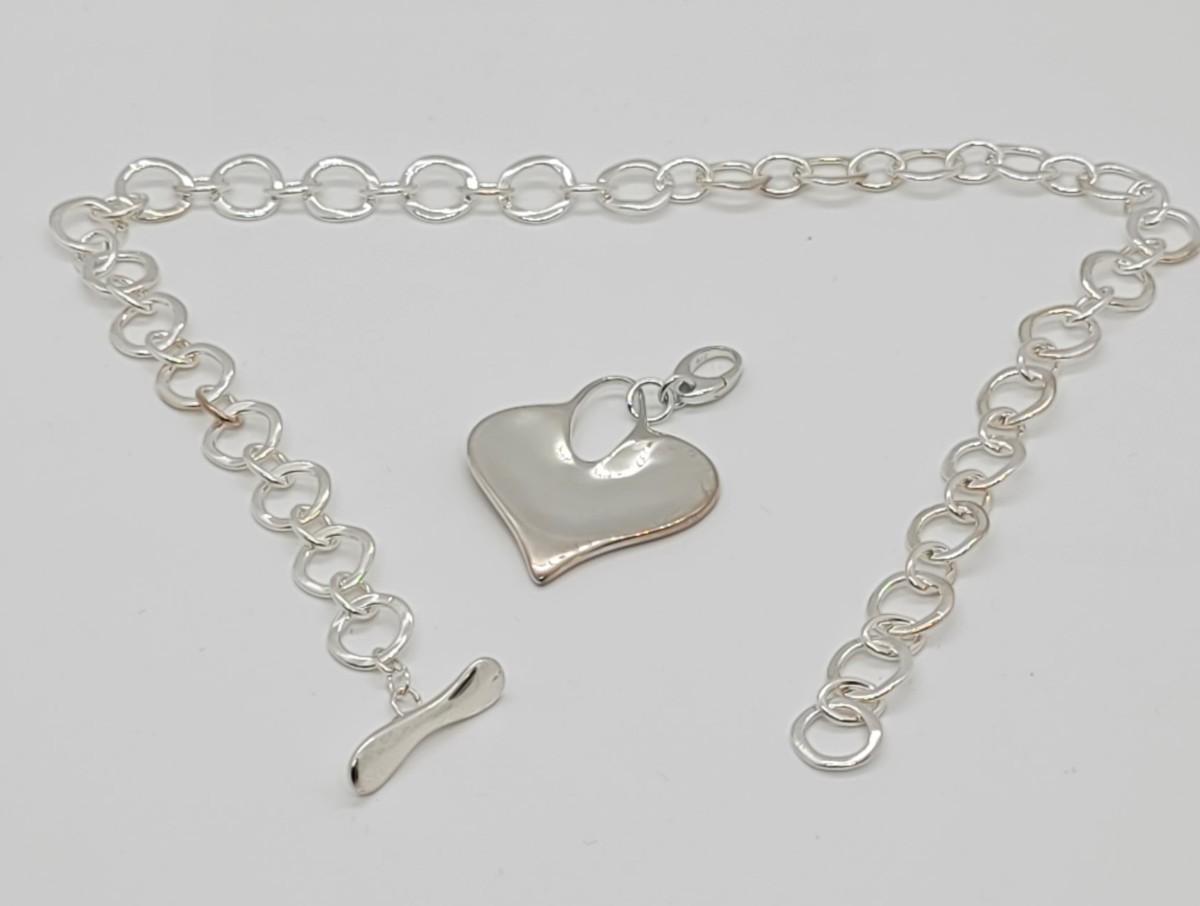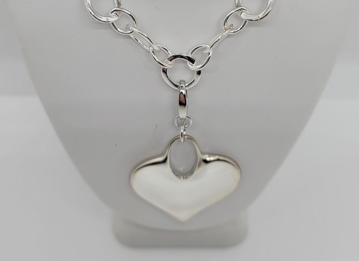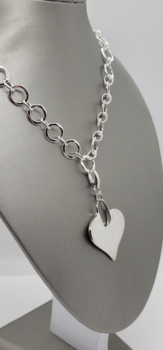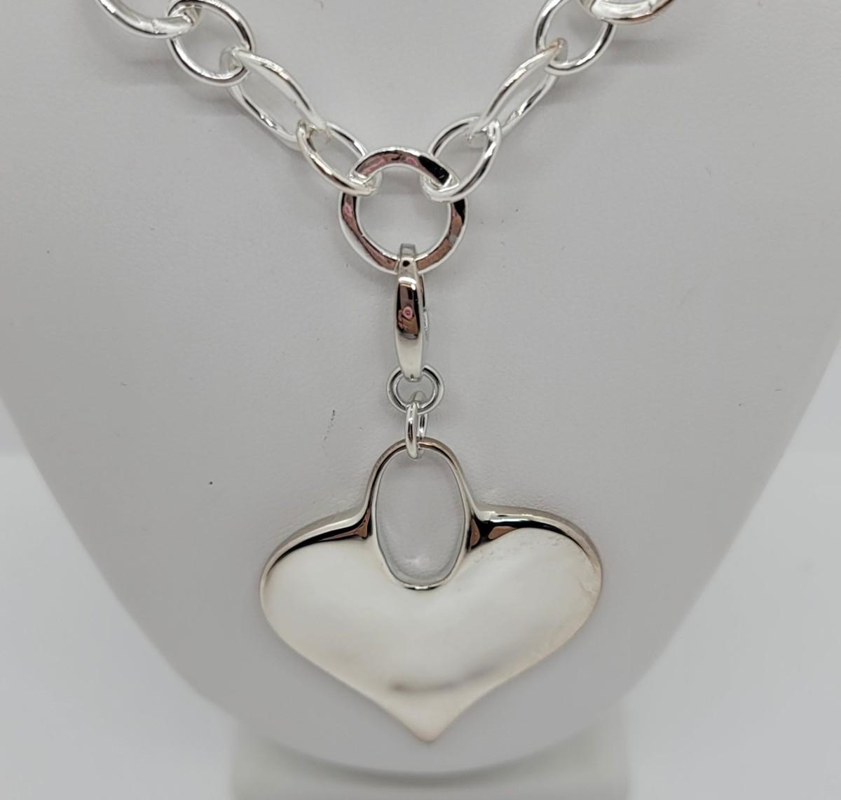LOTJ73: New in Box RLM STUDIO Sterling 18" soft circle link Necklace with Heart Enhancer/Pendant
