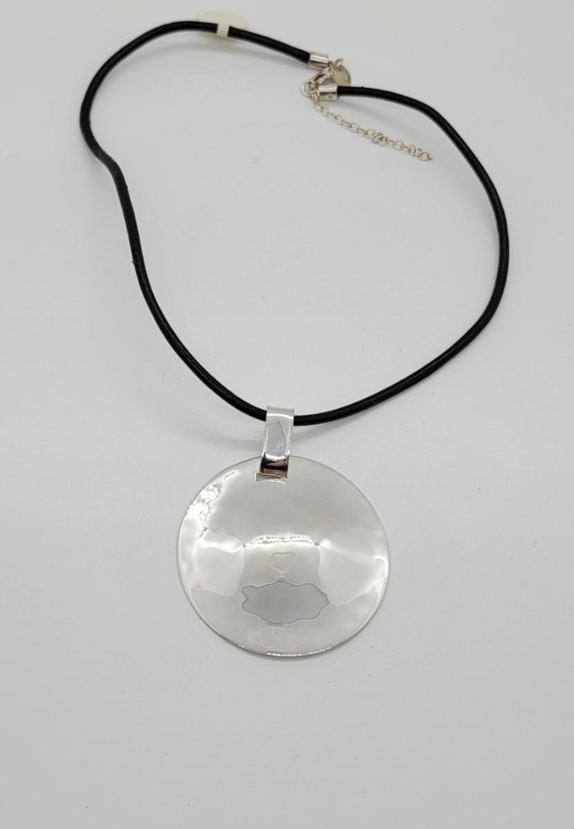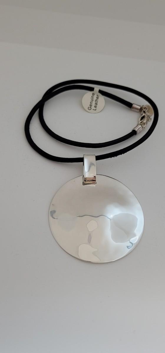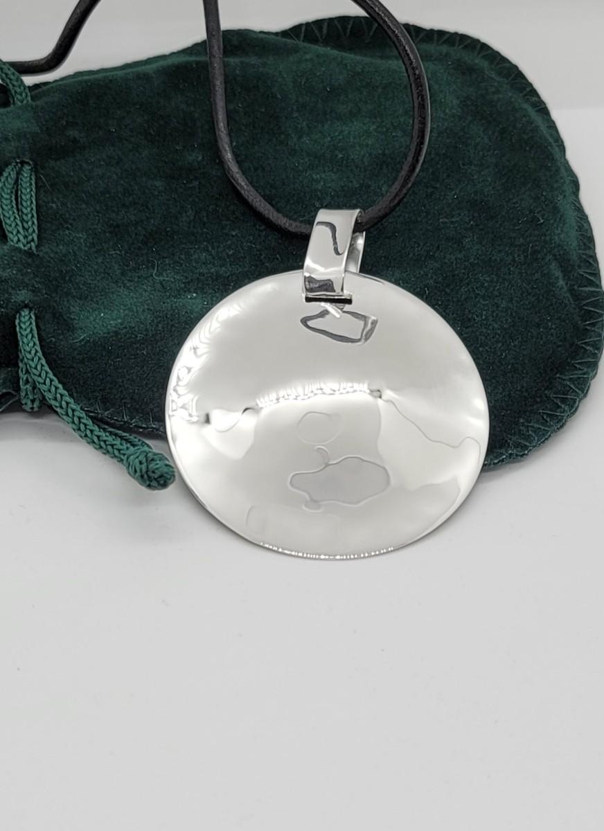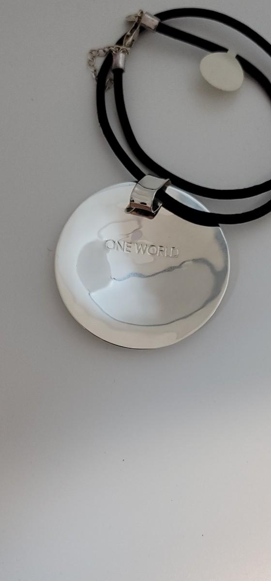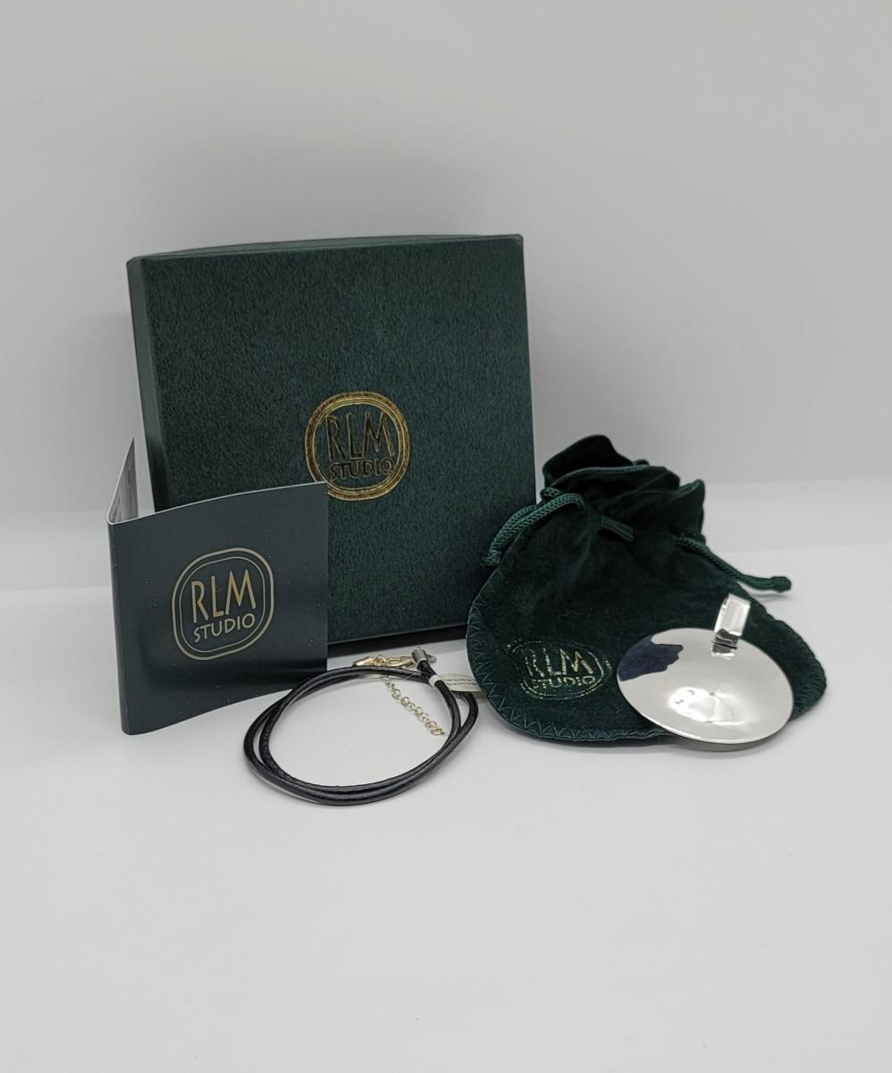 LOTJ79: RLM Studio Sterling One World Round Pendant and adjustable leather cord (17"-20")