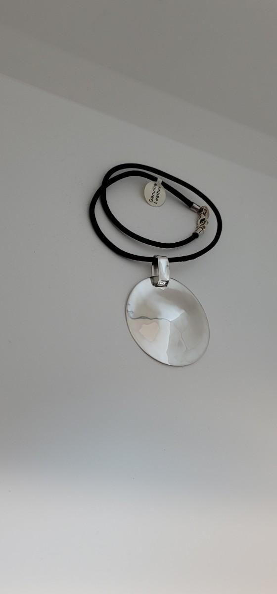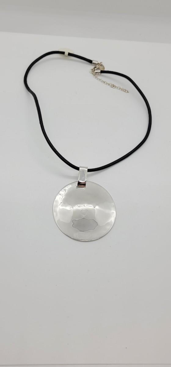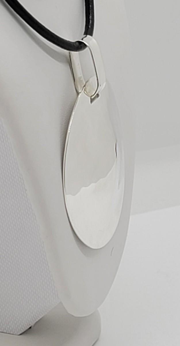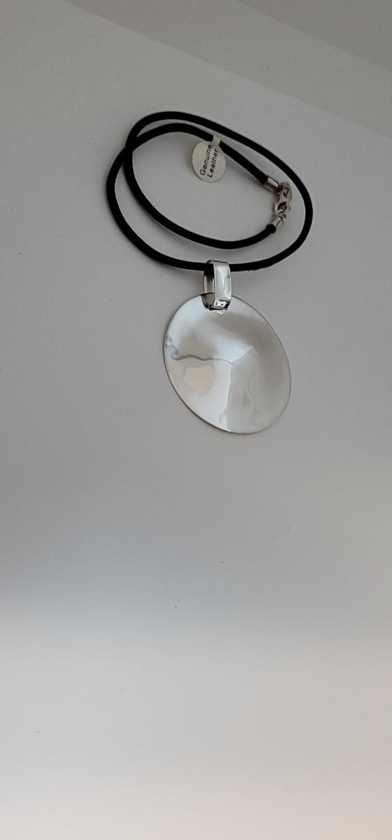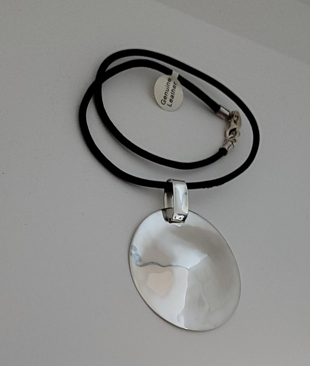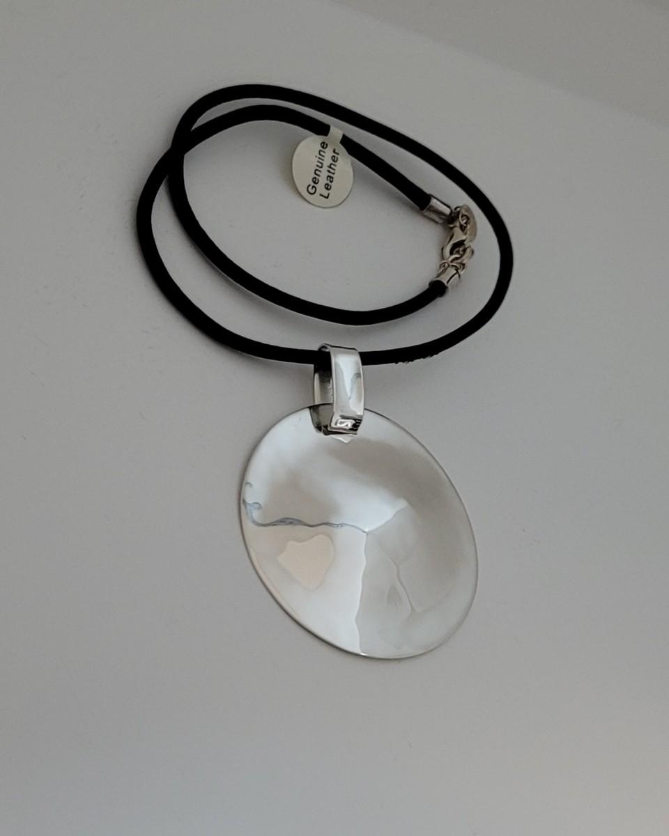LOTJ79: RLM Studio Sterling One World Round Pendant and adjustable leather cord (17"-20")