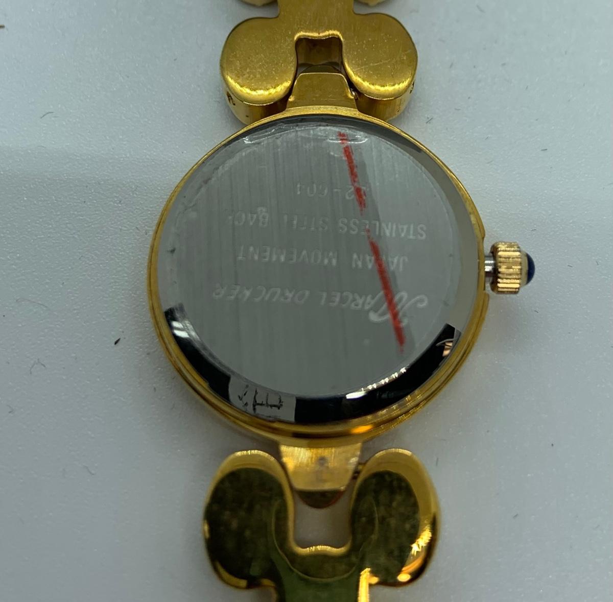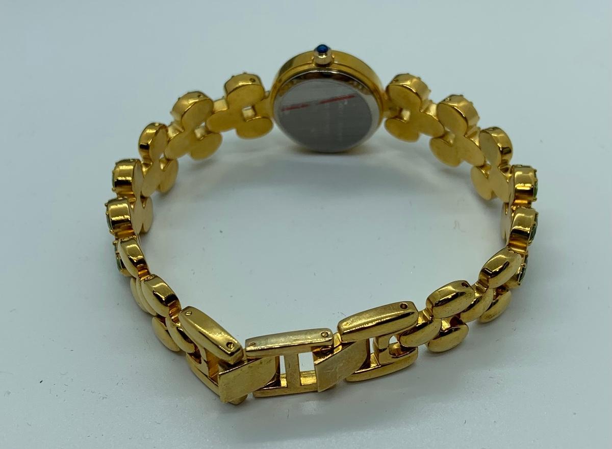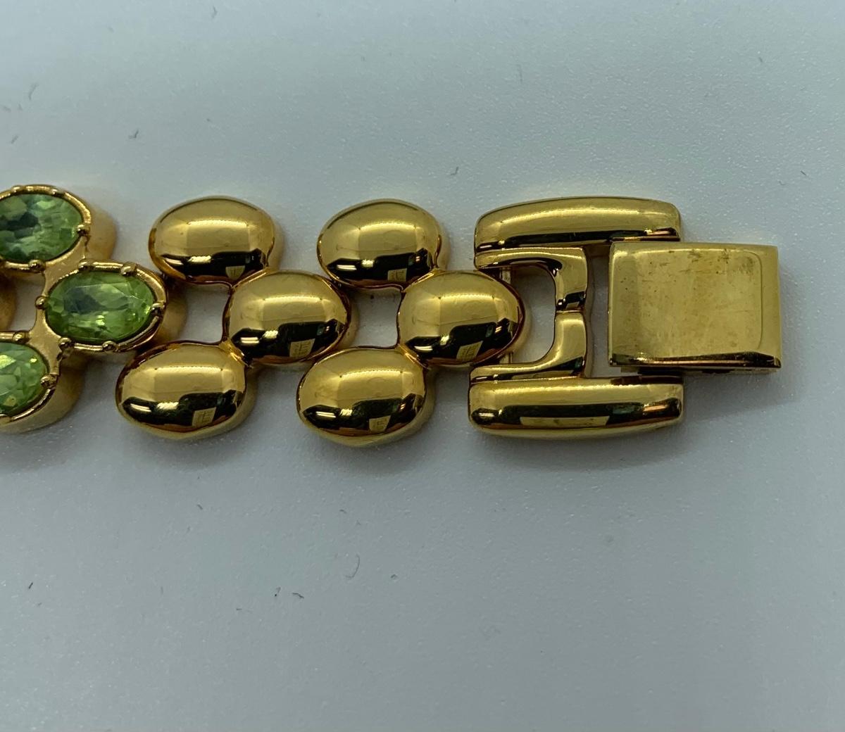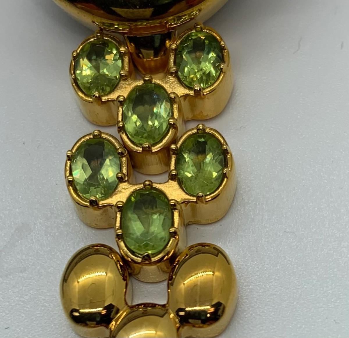 LOTJ82: New in Box Marcel Drucker Oval Peridot Gemstones Goldtone Bracelet Watch 8" long NEEDS NEW BATTERY