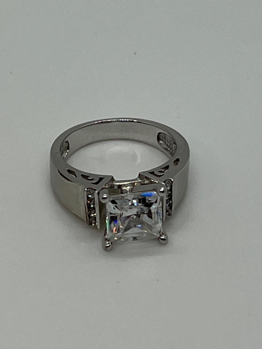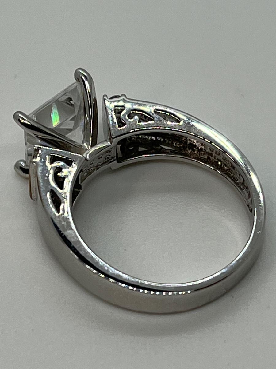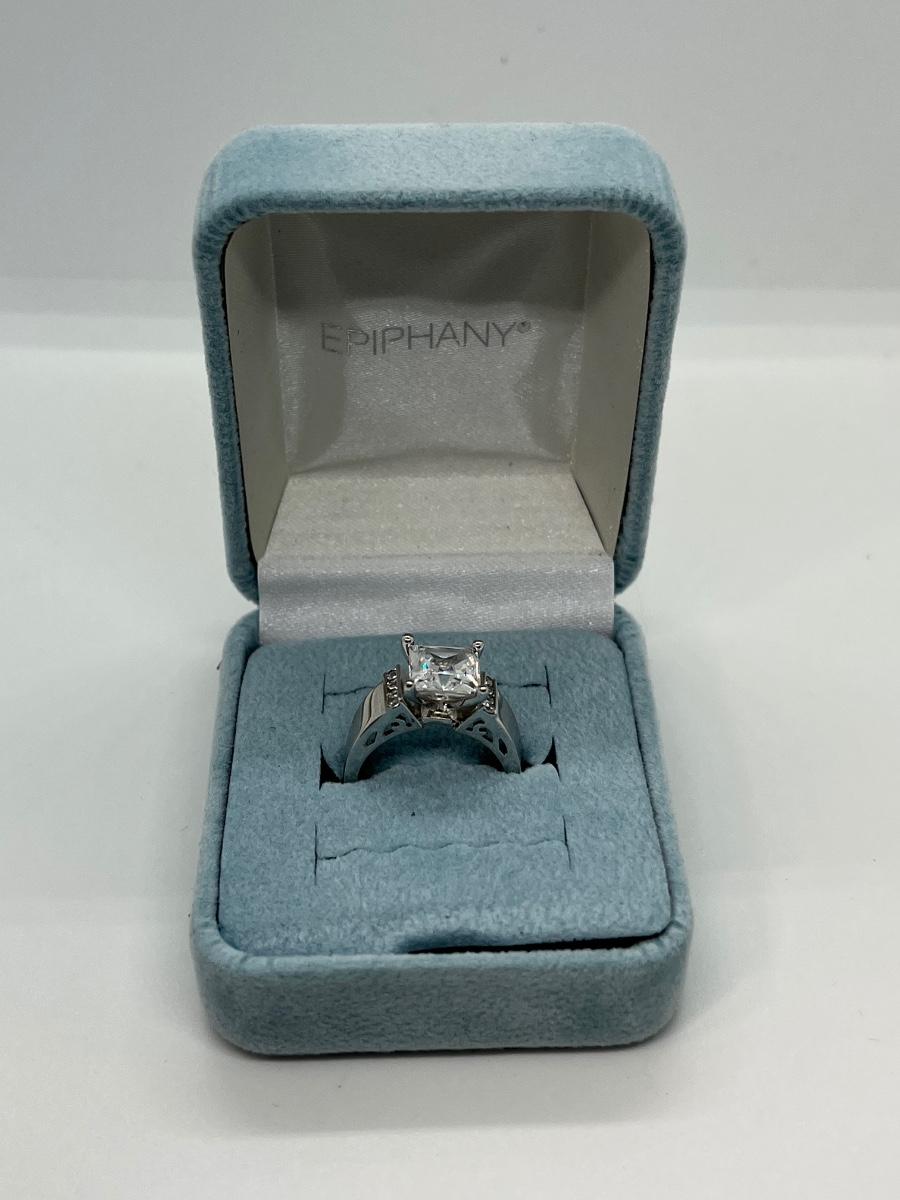 LOTJ94: New in Box Epiphany Platinum Clad 925 cz Diamonique Princess cut Ring sz. 6