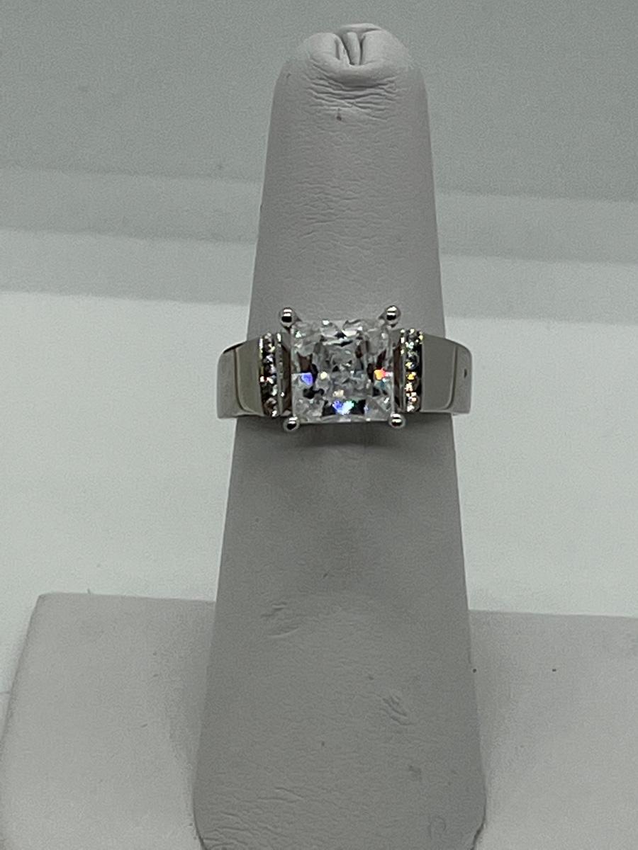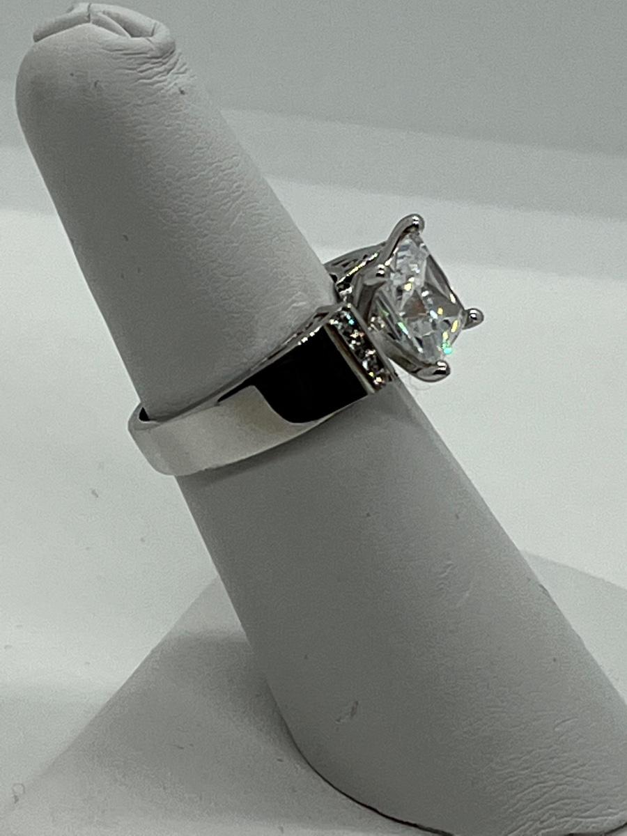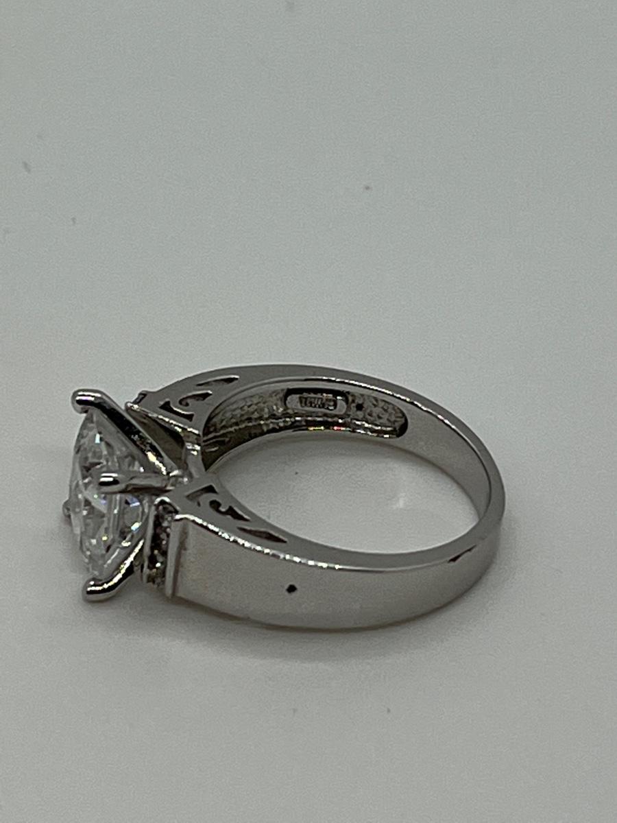 LOTJ94: New in Box Epiphany Platinum Clad 925 cz Diamonique Princess cut Ring sz. 6