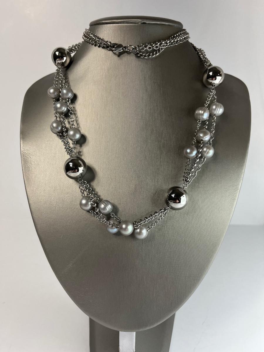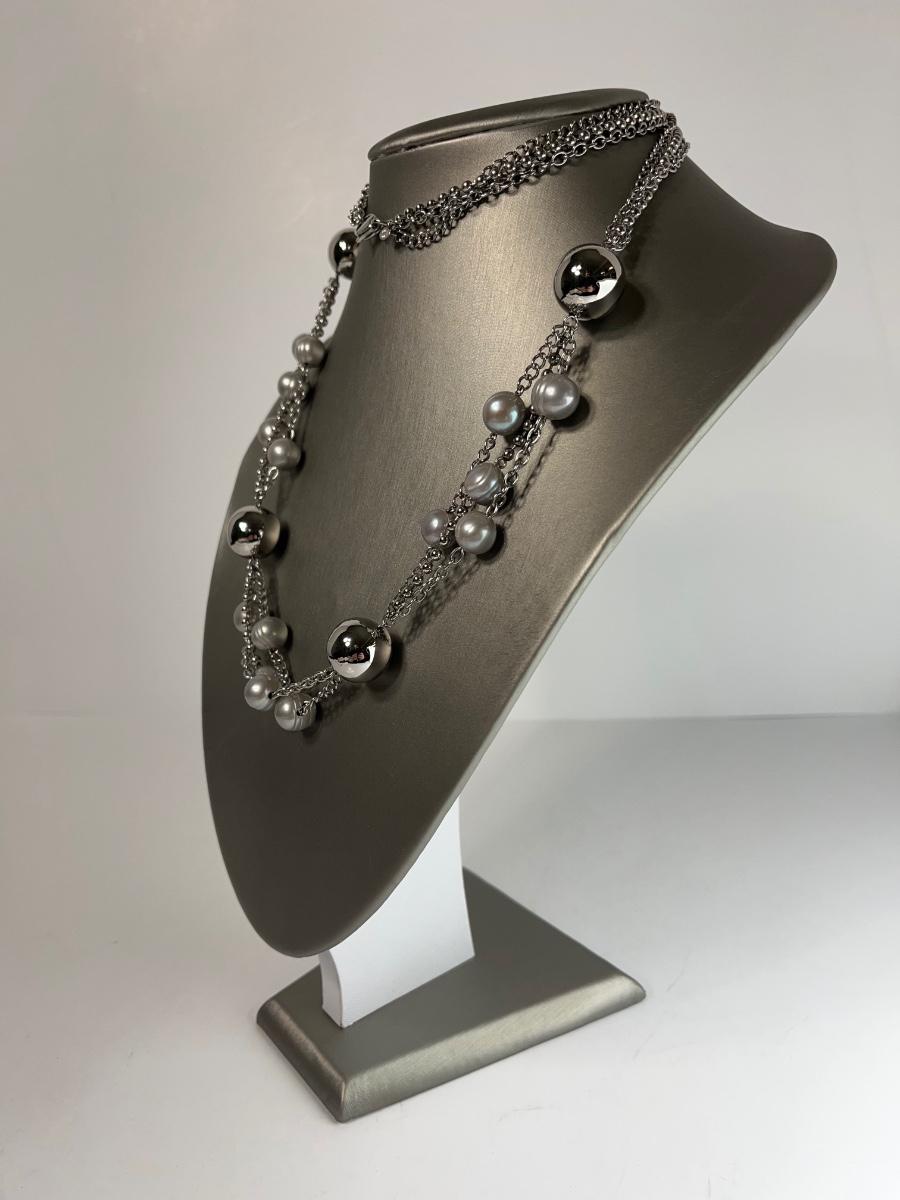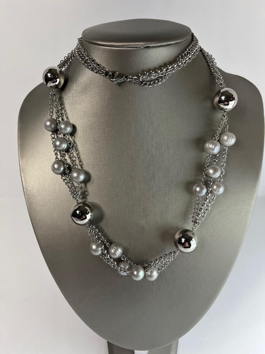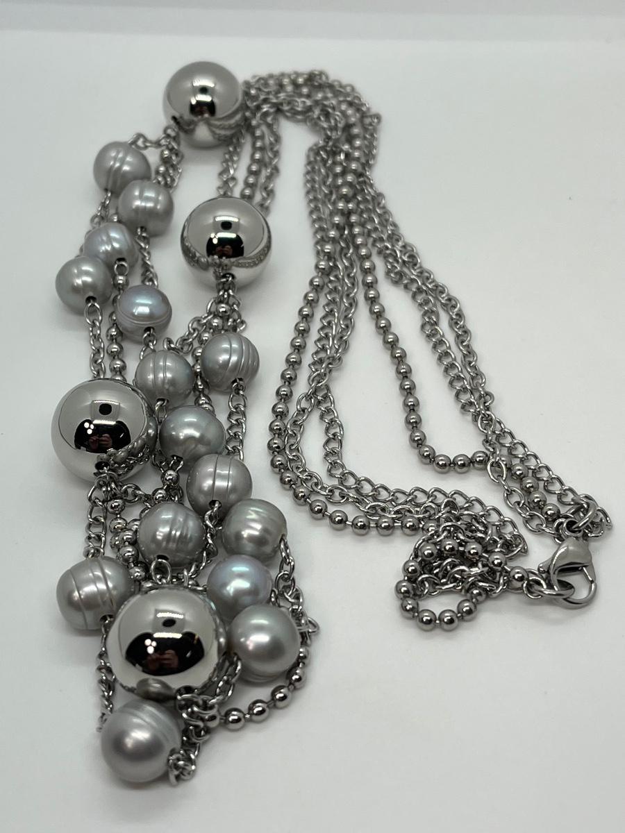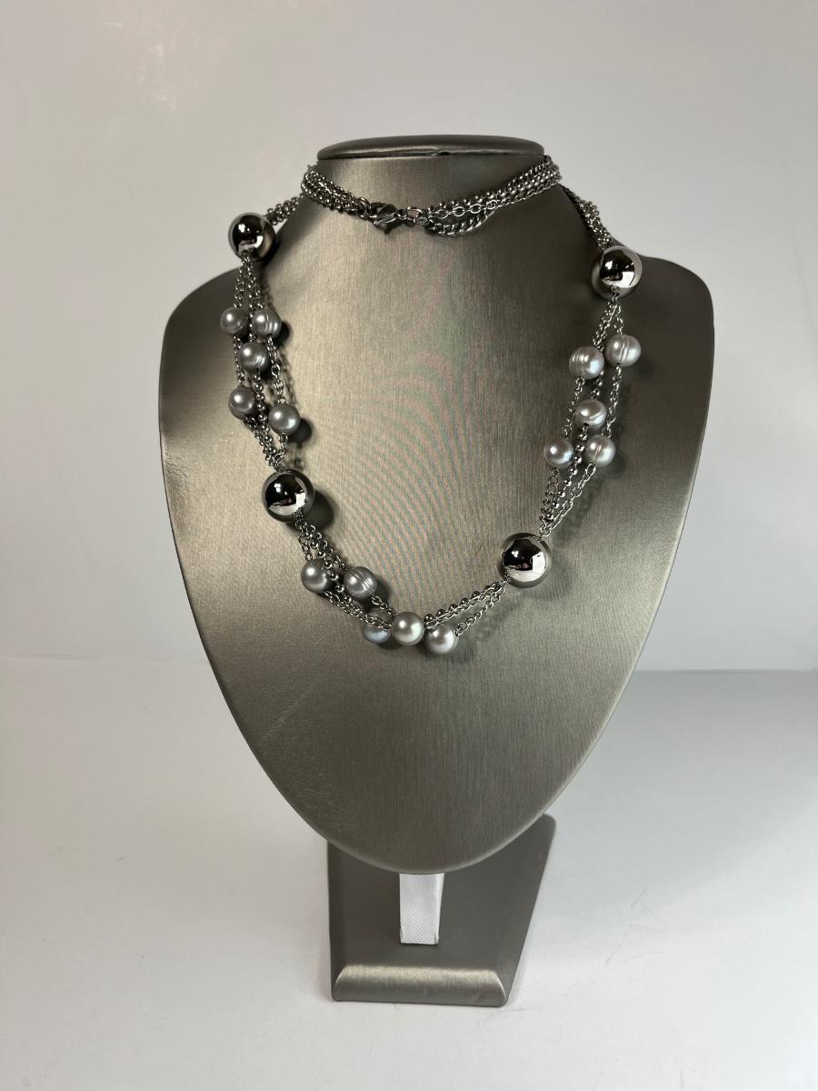 LOTJ98: New in Box Honora Cultured Pearl and silver pearl  Multi-strand Twist Steel Necklace 32”