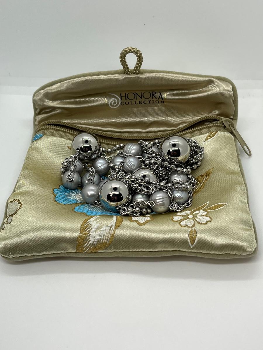 LOTJ98: New in Box Honora Cultured Pearl and silver pearl Multi-strand Twist Steel Necklace 32”