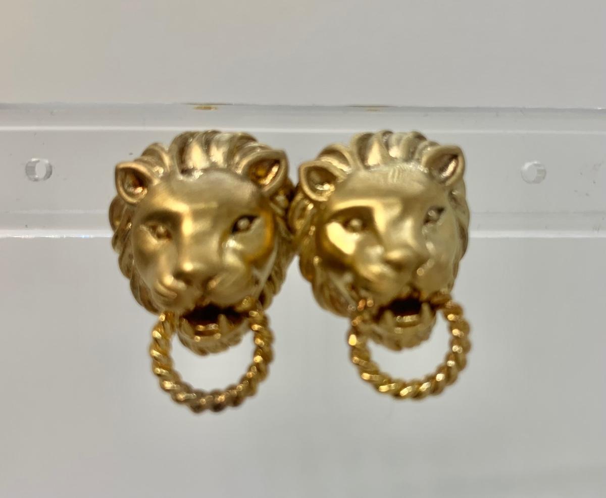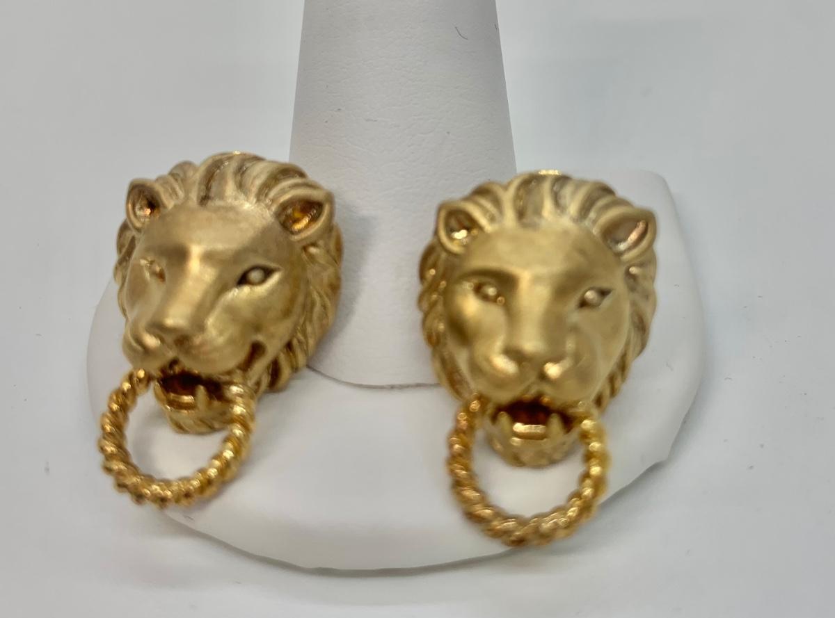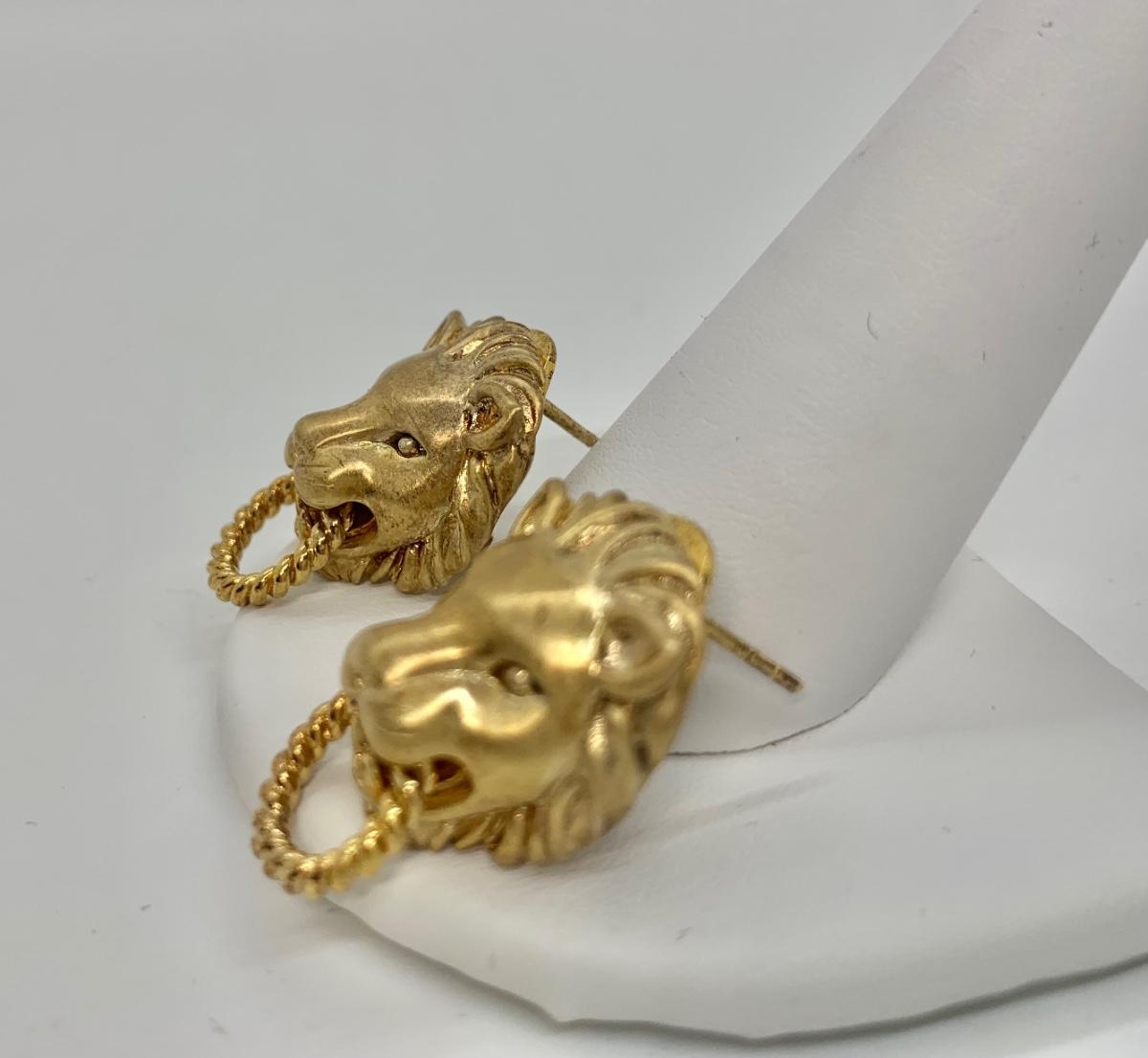 LOTJ103: 925 gold vermeil Lion doorknocker pierced earrings