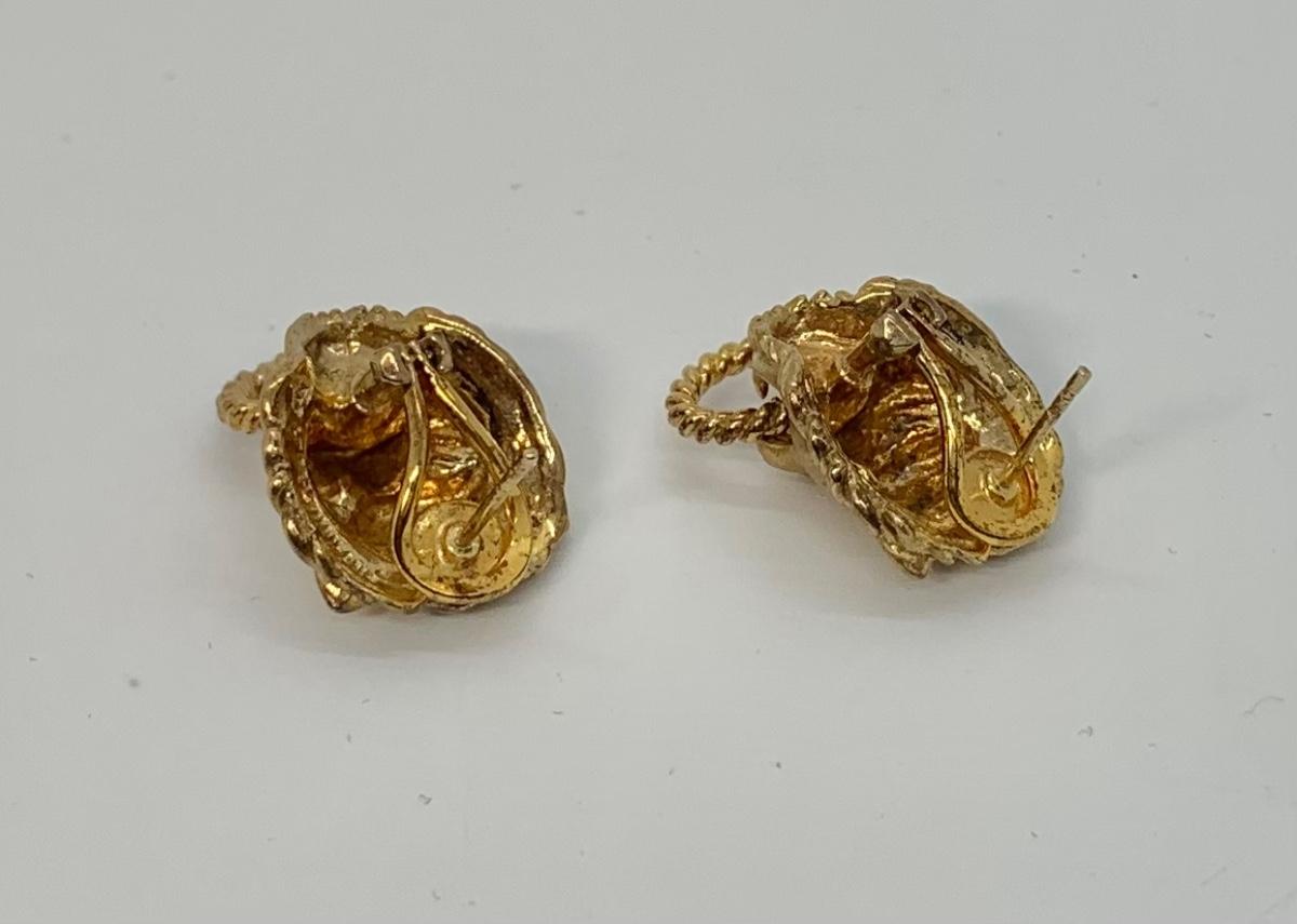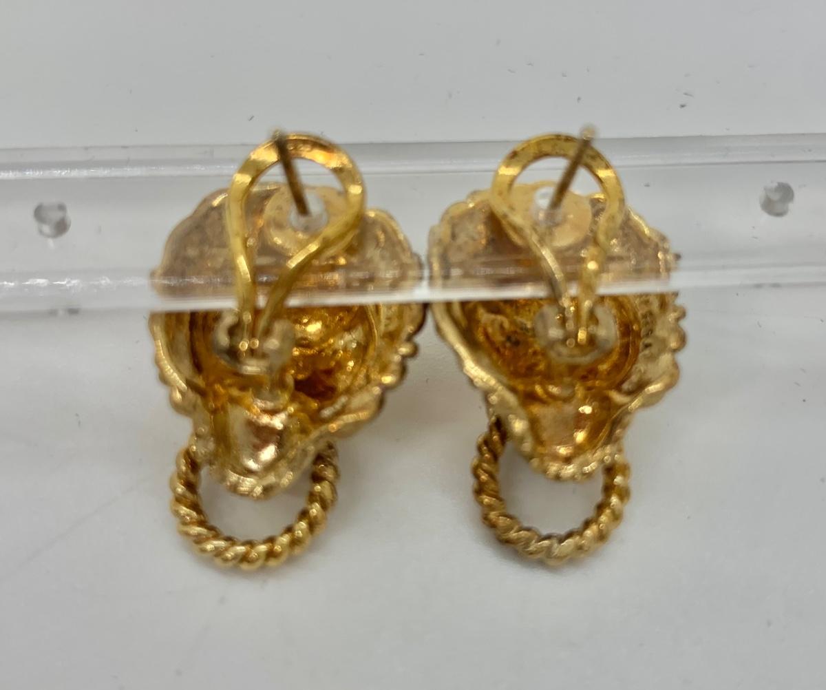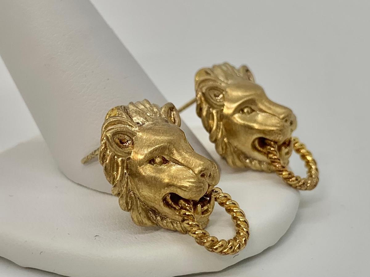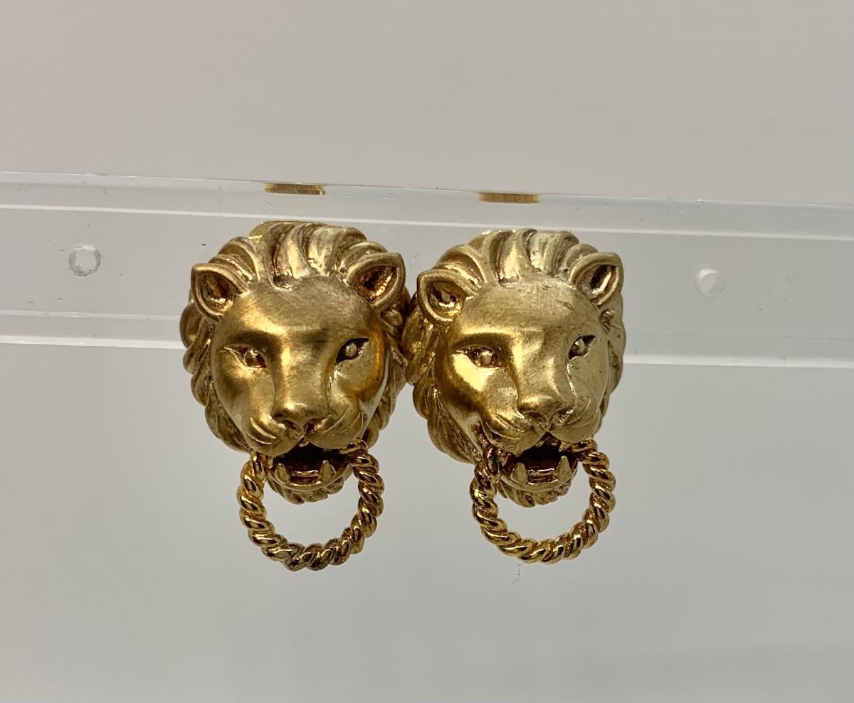 LOTJ103: 925 gold vermeil Lion doorknocker pierced earrings