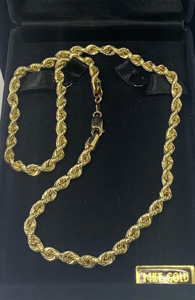 LOTJ108: 14k Gold Bold Rope Chain Necklace  20" L  10 grams TW