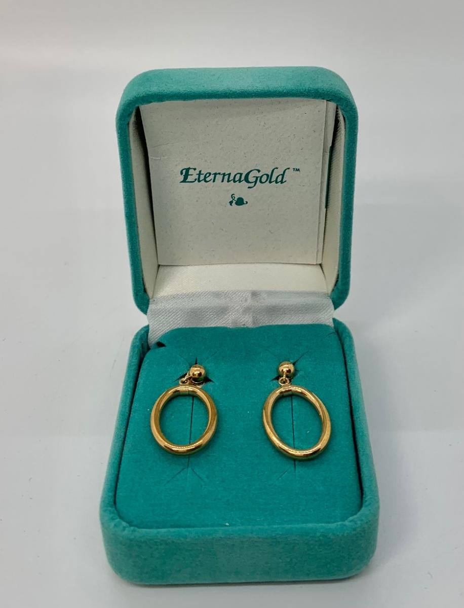 LOTJ112: 14k EternaGold Oval Loop Dangle Pierced Earrings 1+ grams TW