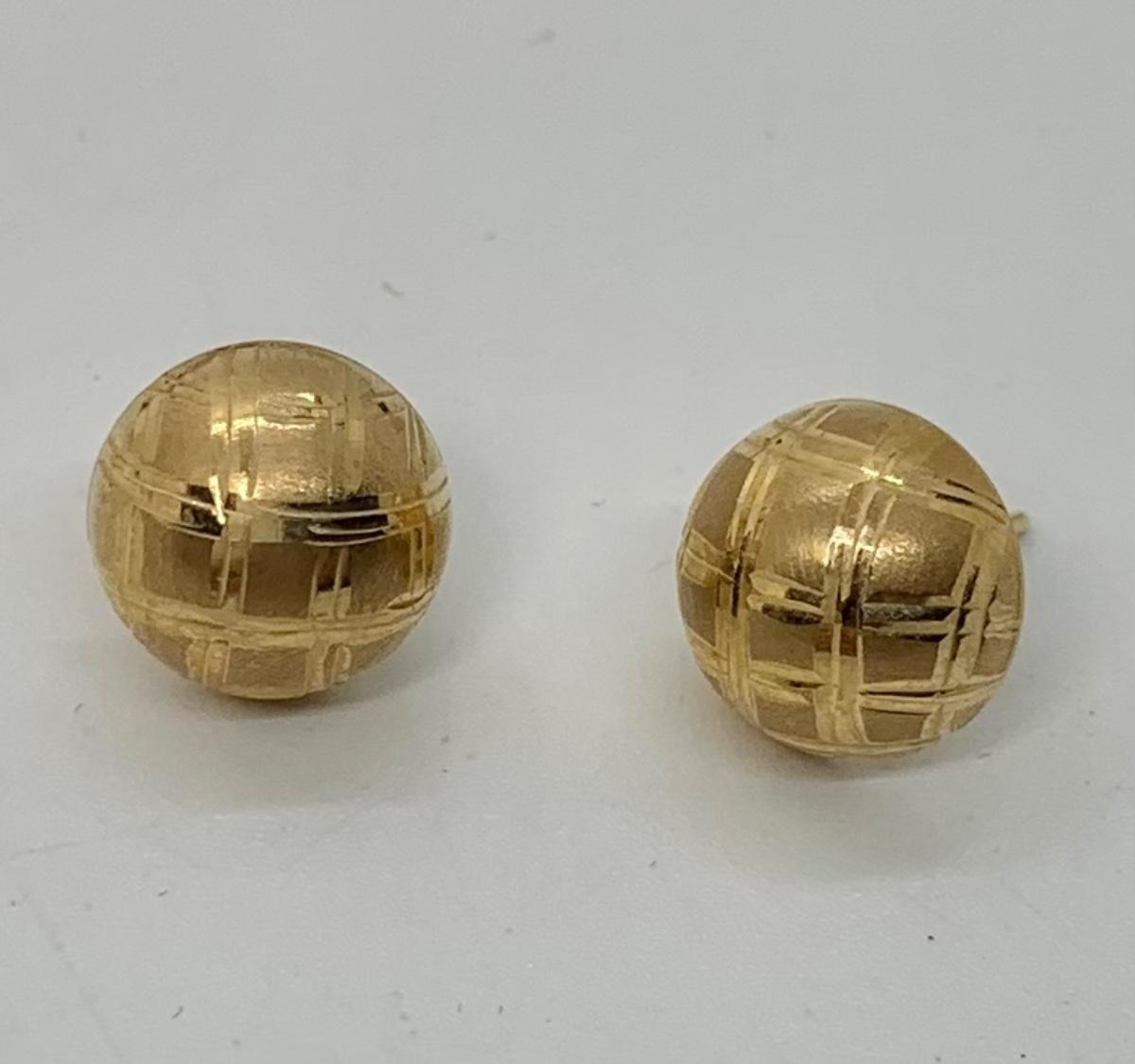 LOTJ114: 14k yellow gold Diamond Cut Pierced Button Earrings 1+ grams TW