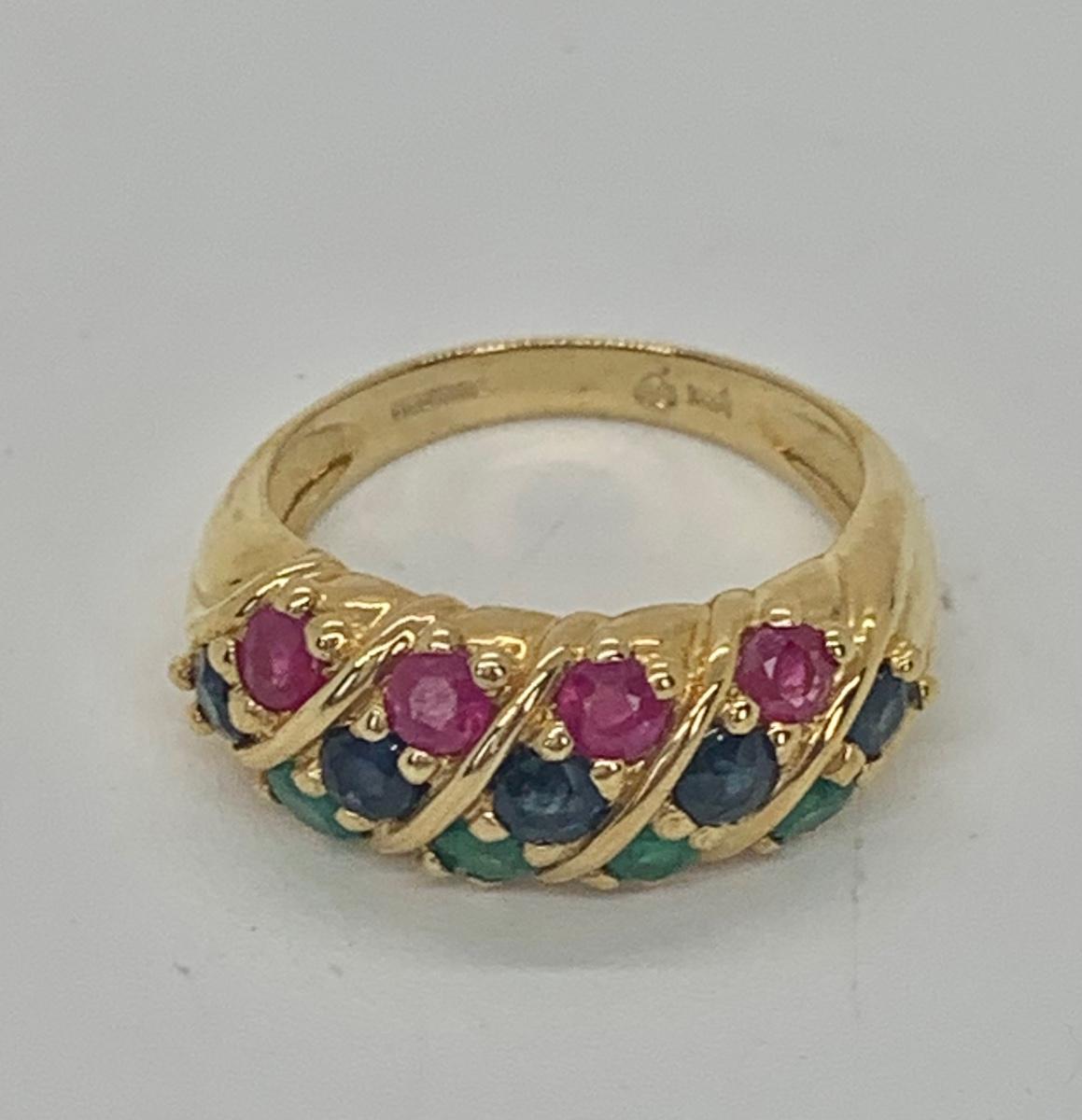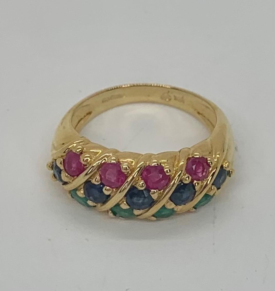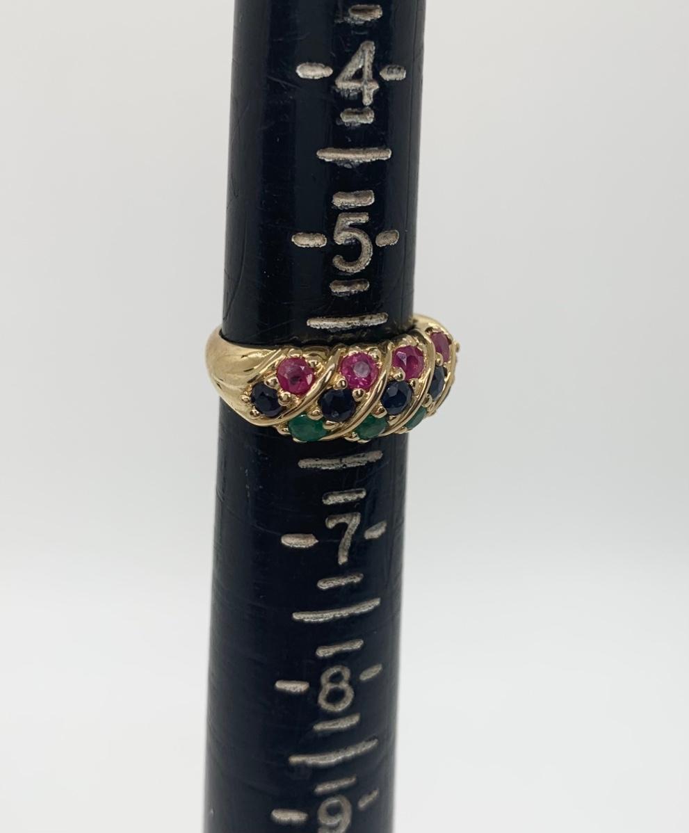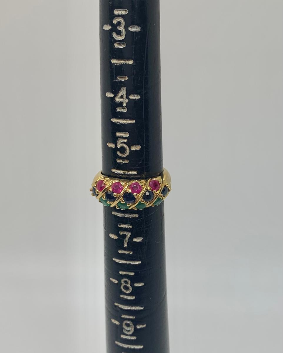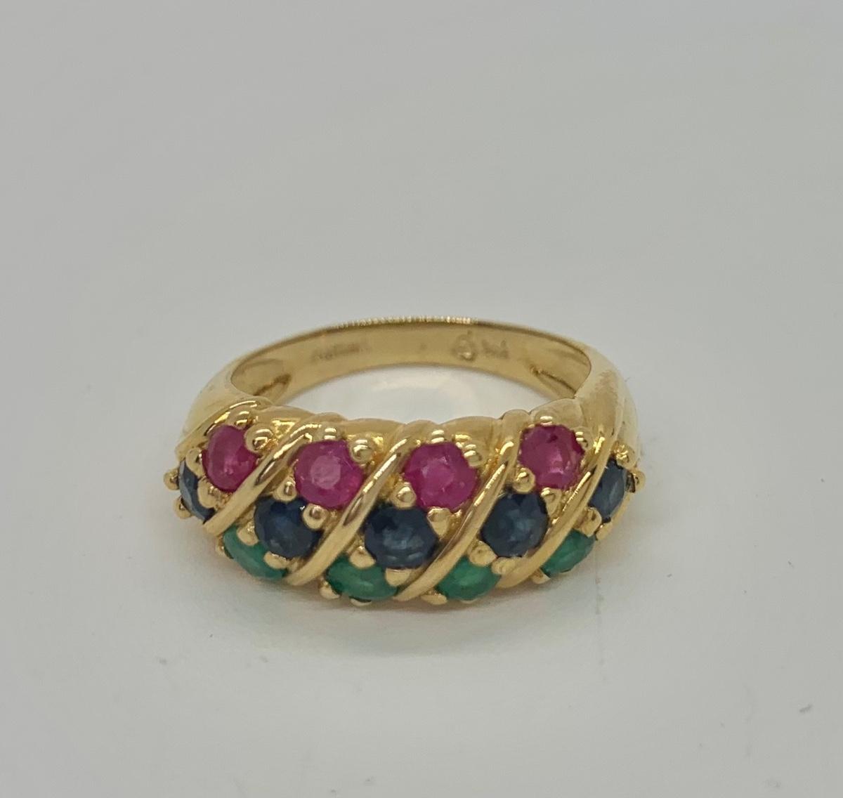 LOTJ115: 14k yellow gold Ruby-Emerald-Sapphire Woven Band Ring size 6 5 grams TW