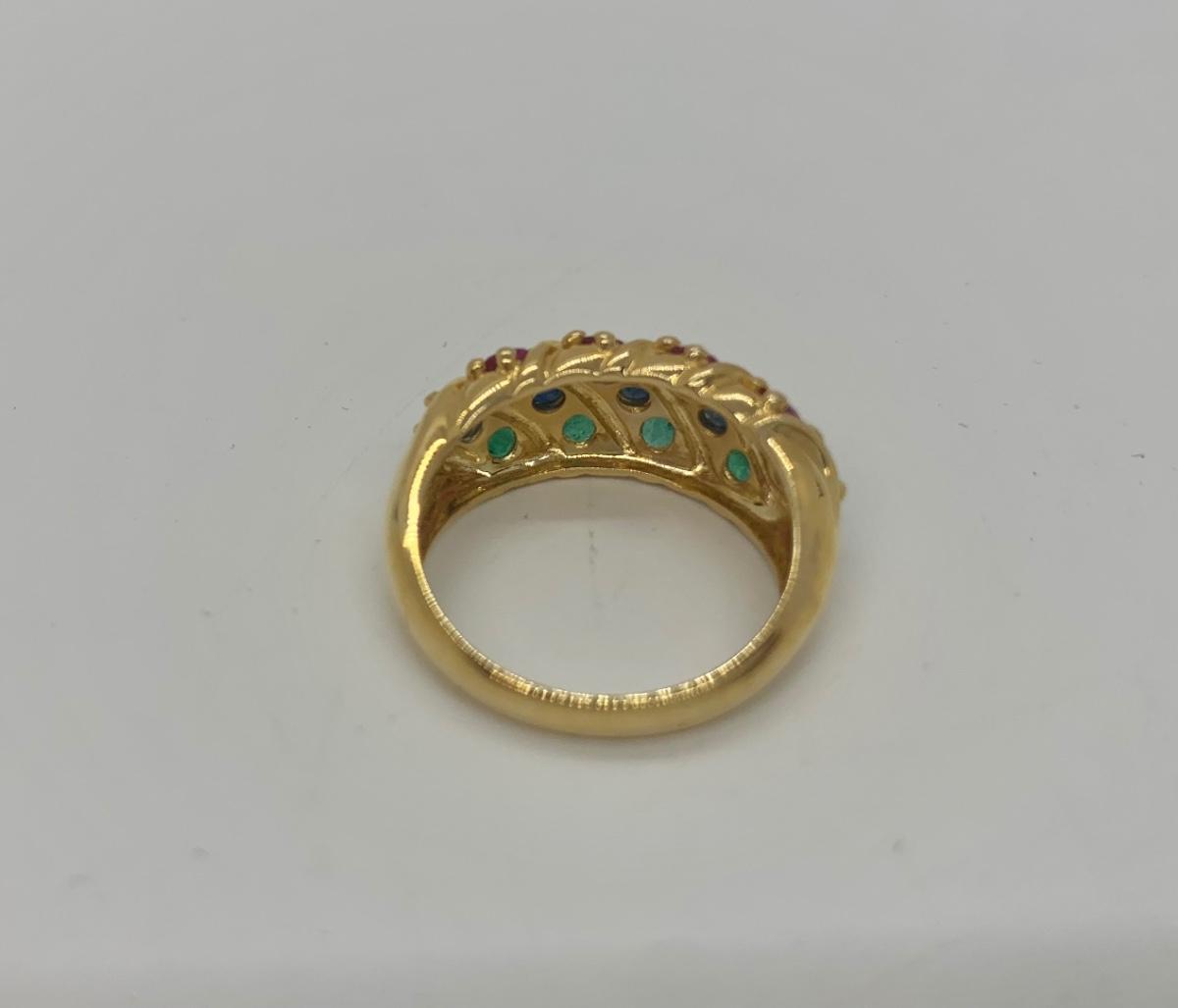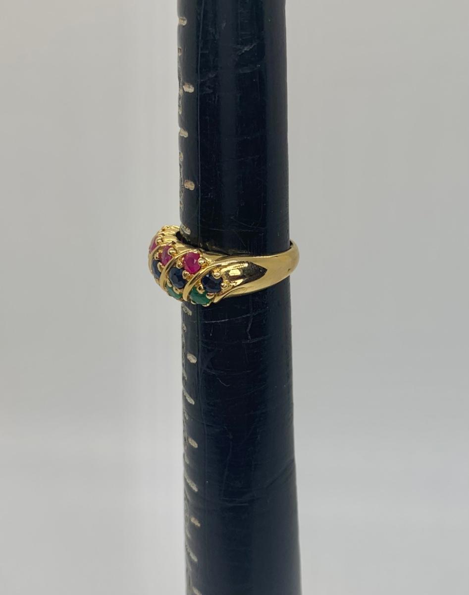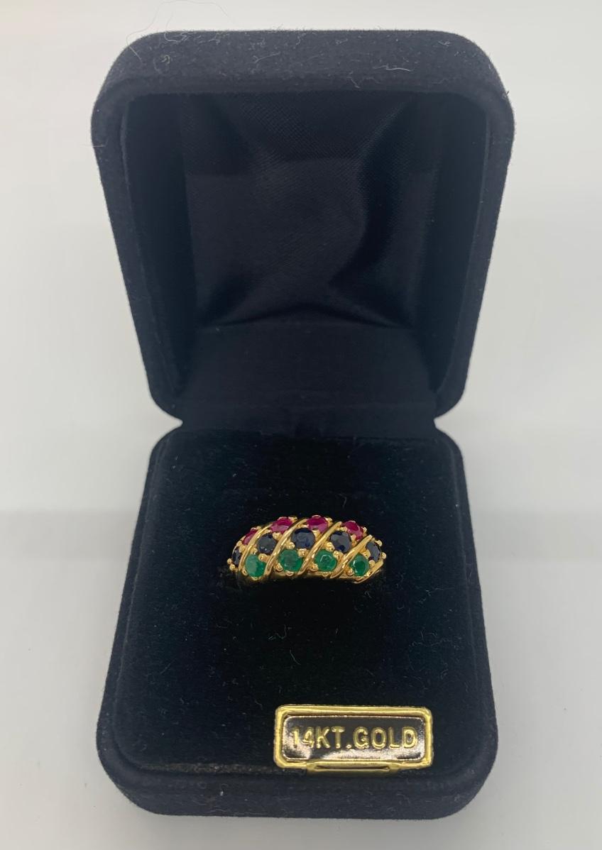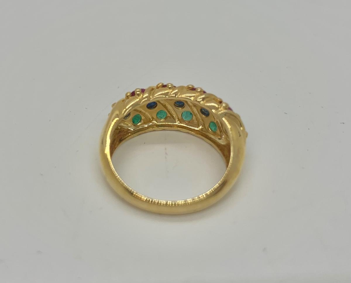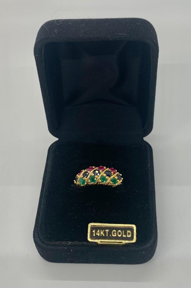 LOTJ115: 14k yellow gold Ruby-Emerald-Sapphire Woven Band Ring size 6 5 grams TW