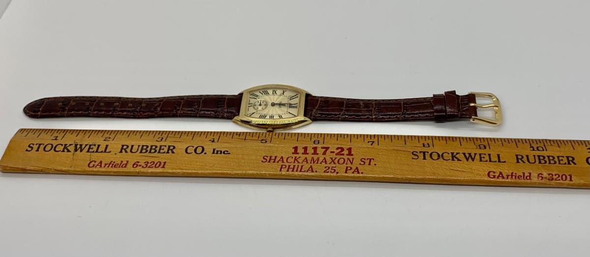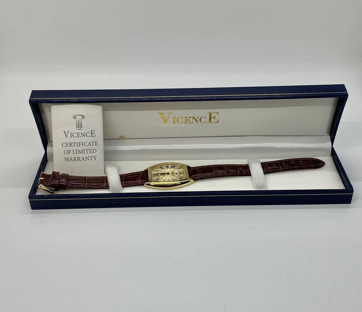 LOTJ118: New in box Vicence Milor Italy 14k Gold Watch with Leather strap total L is 9.5"