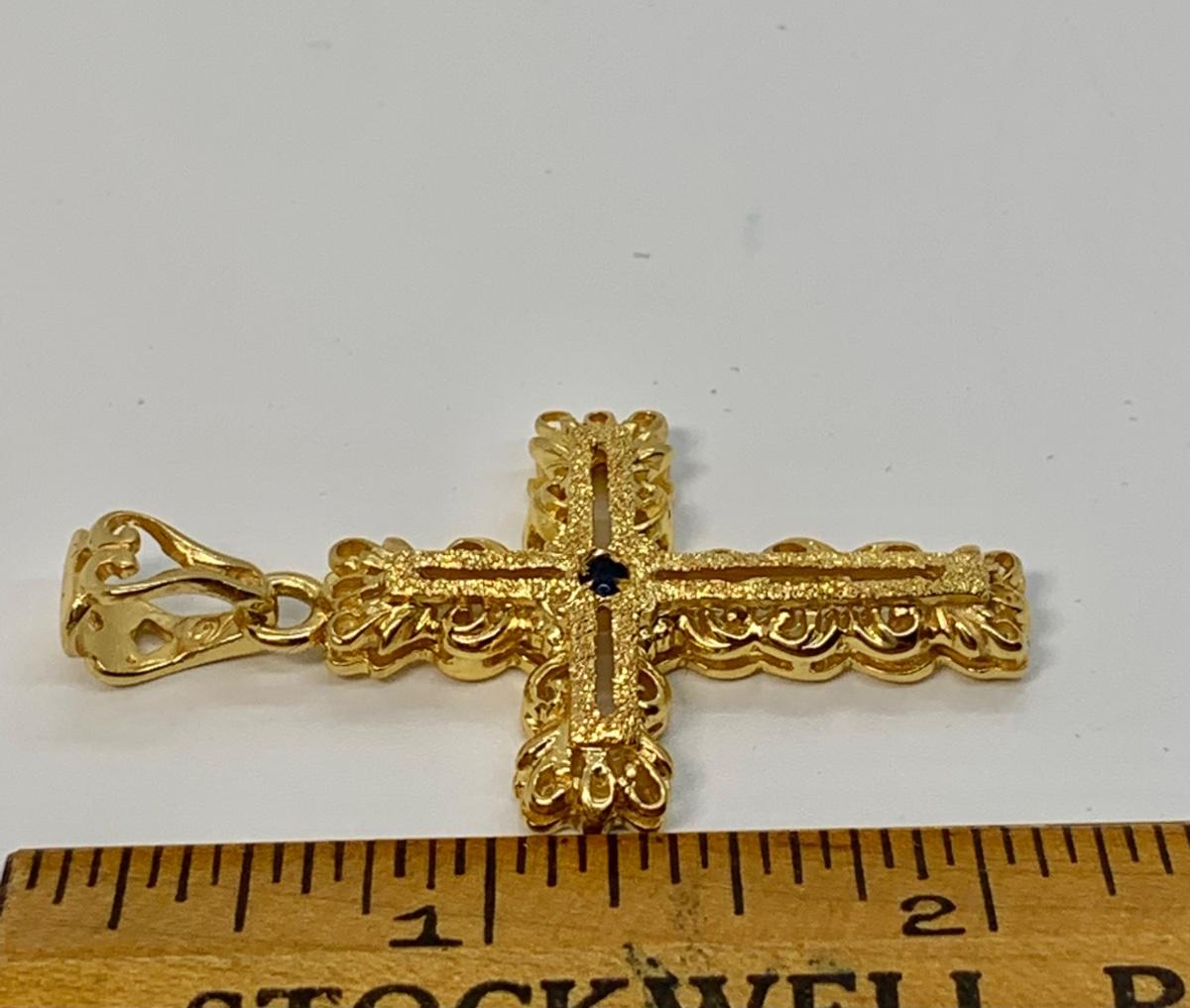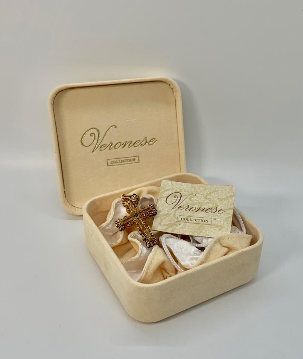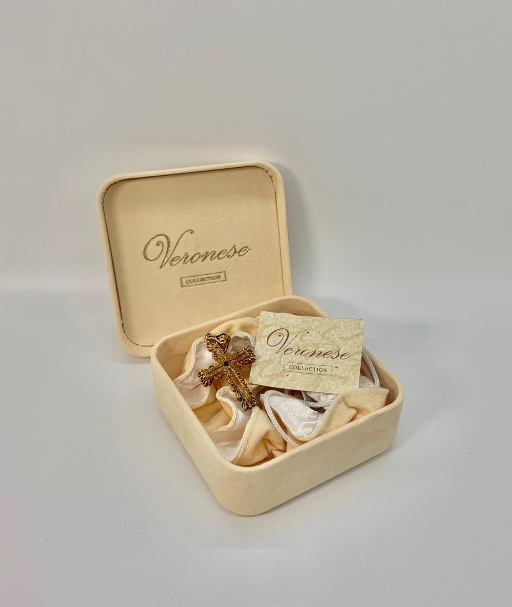 LOTJ120: New in box Veronese 18k Gold Bonded Sterling Sapphire Gemstone Cross Pendant