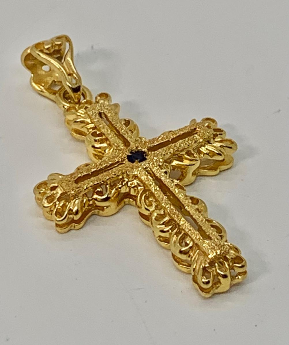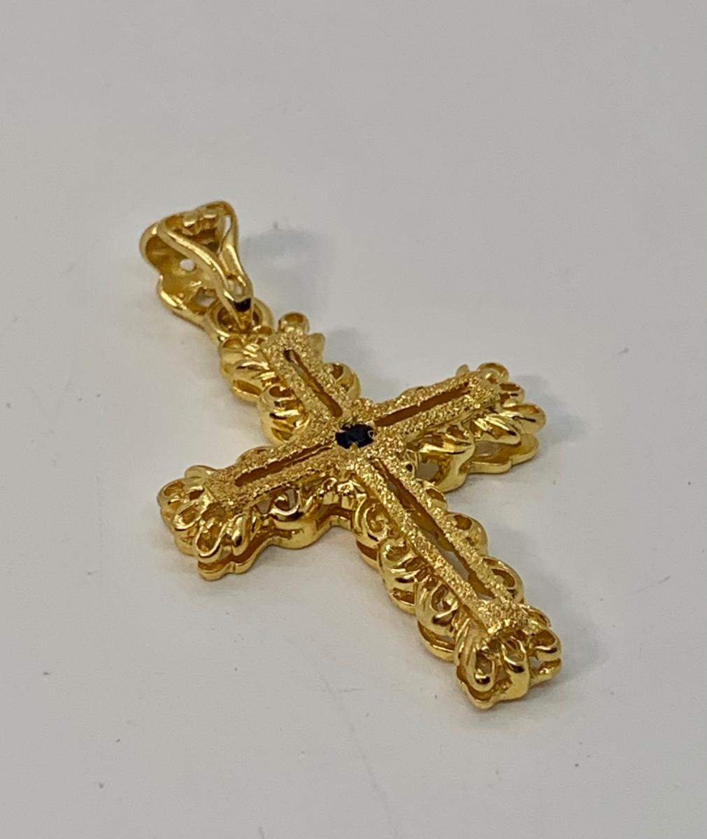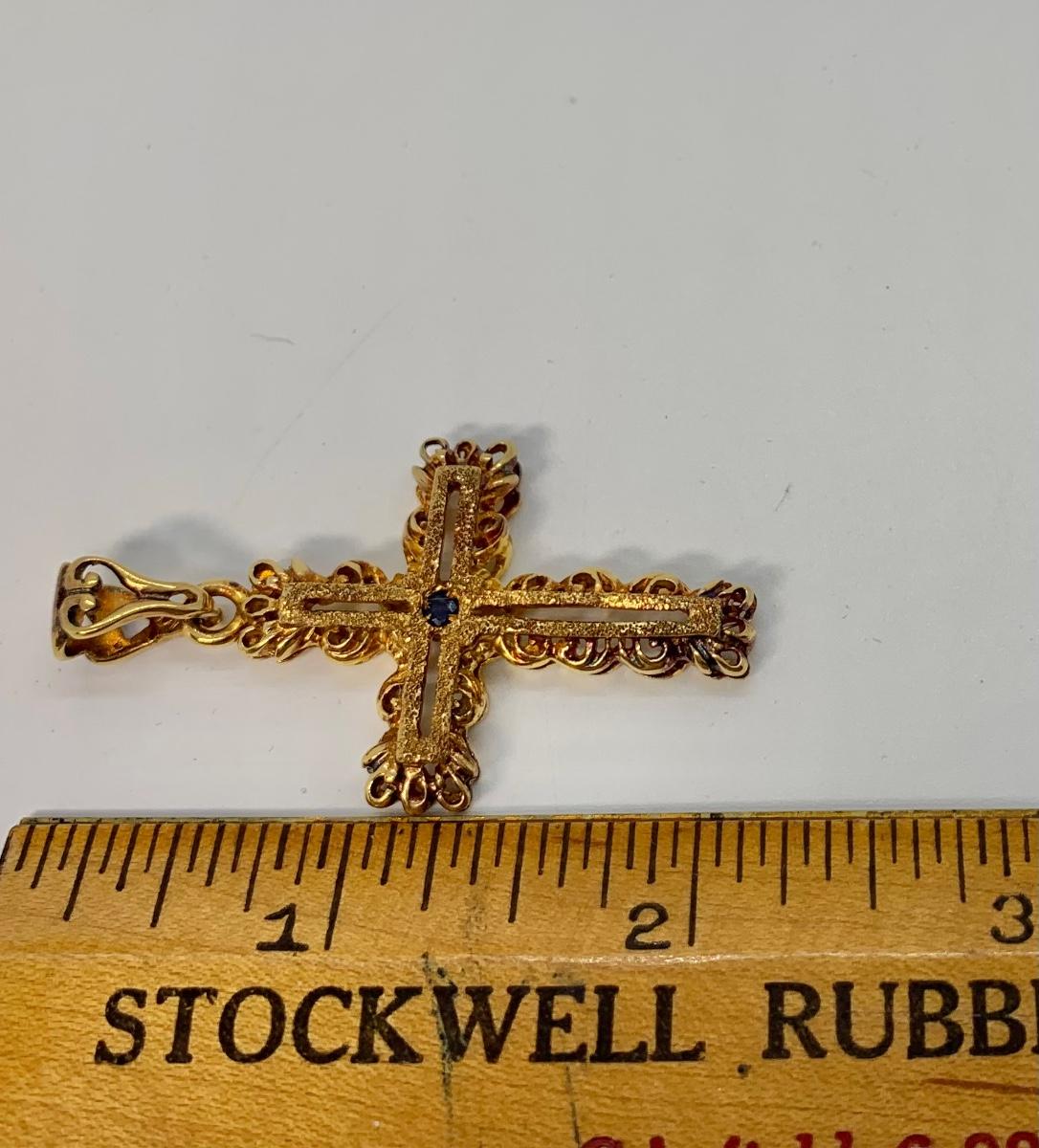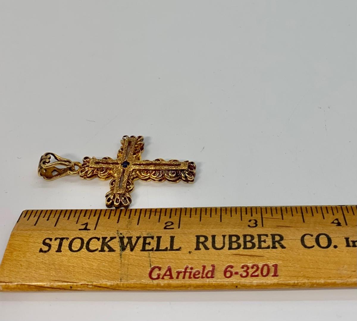 LOTJ120: New in box Veronese 18k Gold Bonded Sterling Sapphire Gemstone Cross Pendant