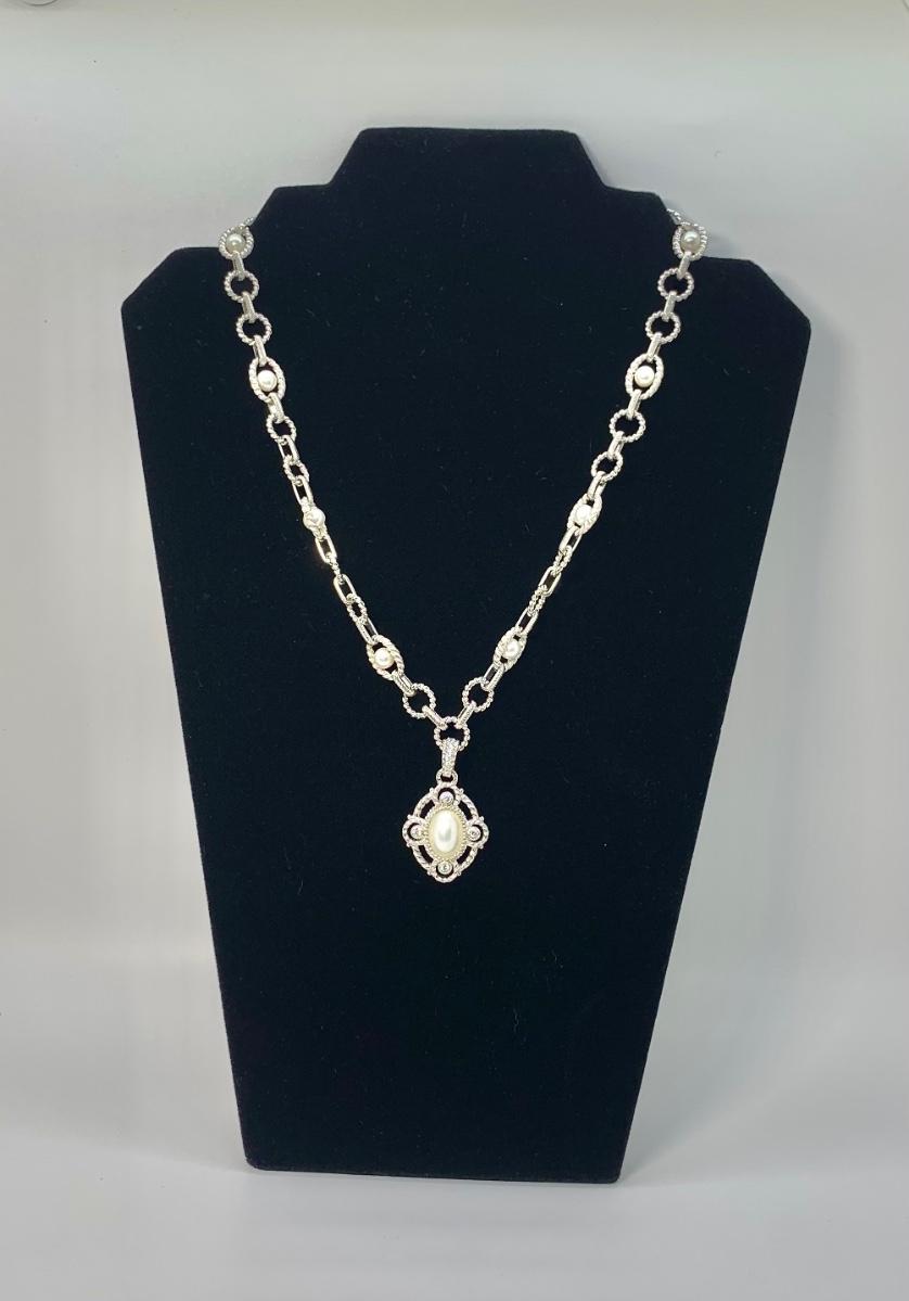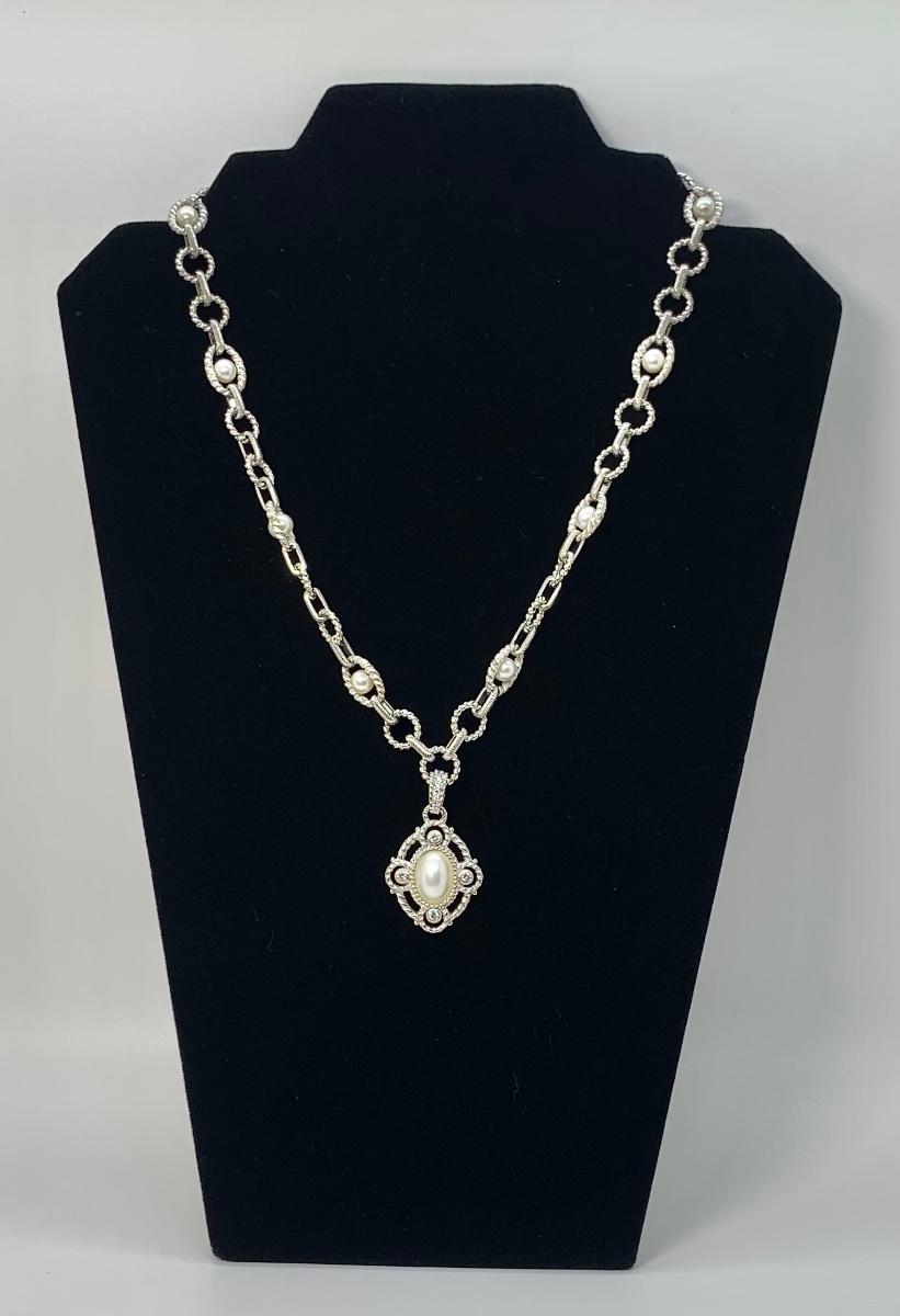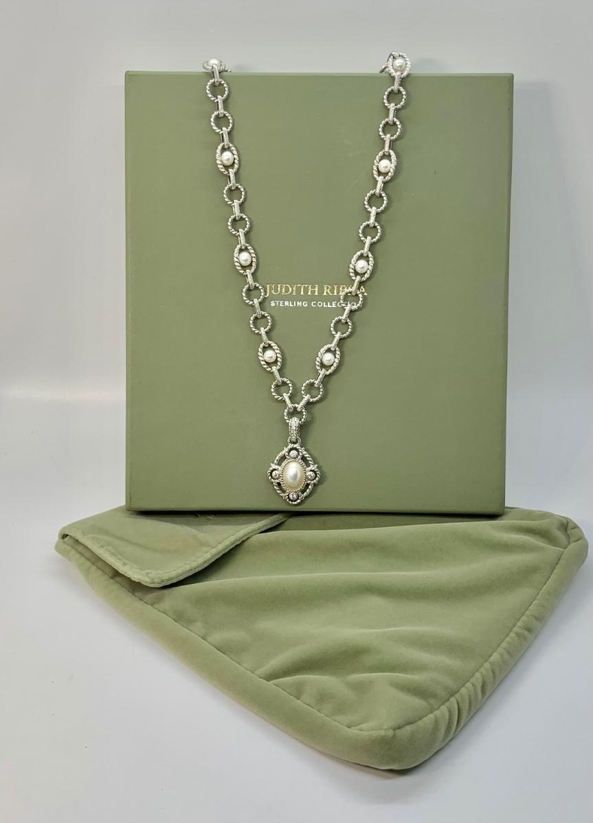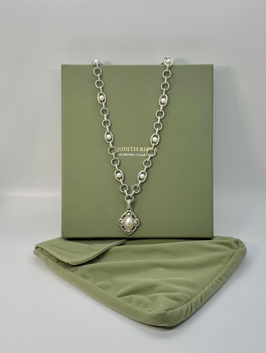 LOTJ123:  New in Box Judith Ripka Sterling and Mabe' Pearl necklace 20" L