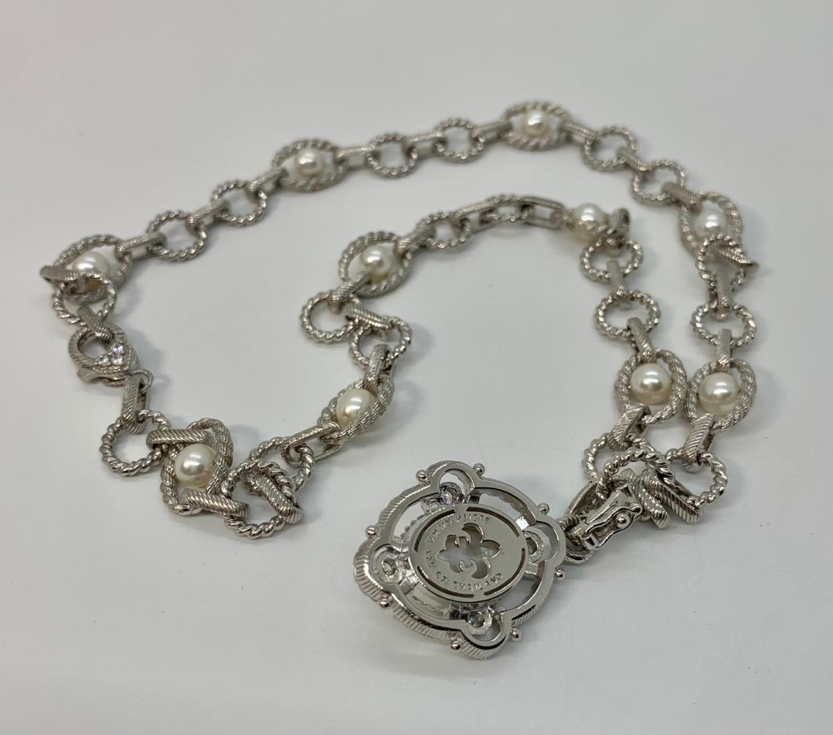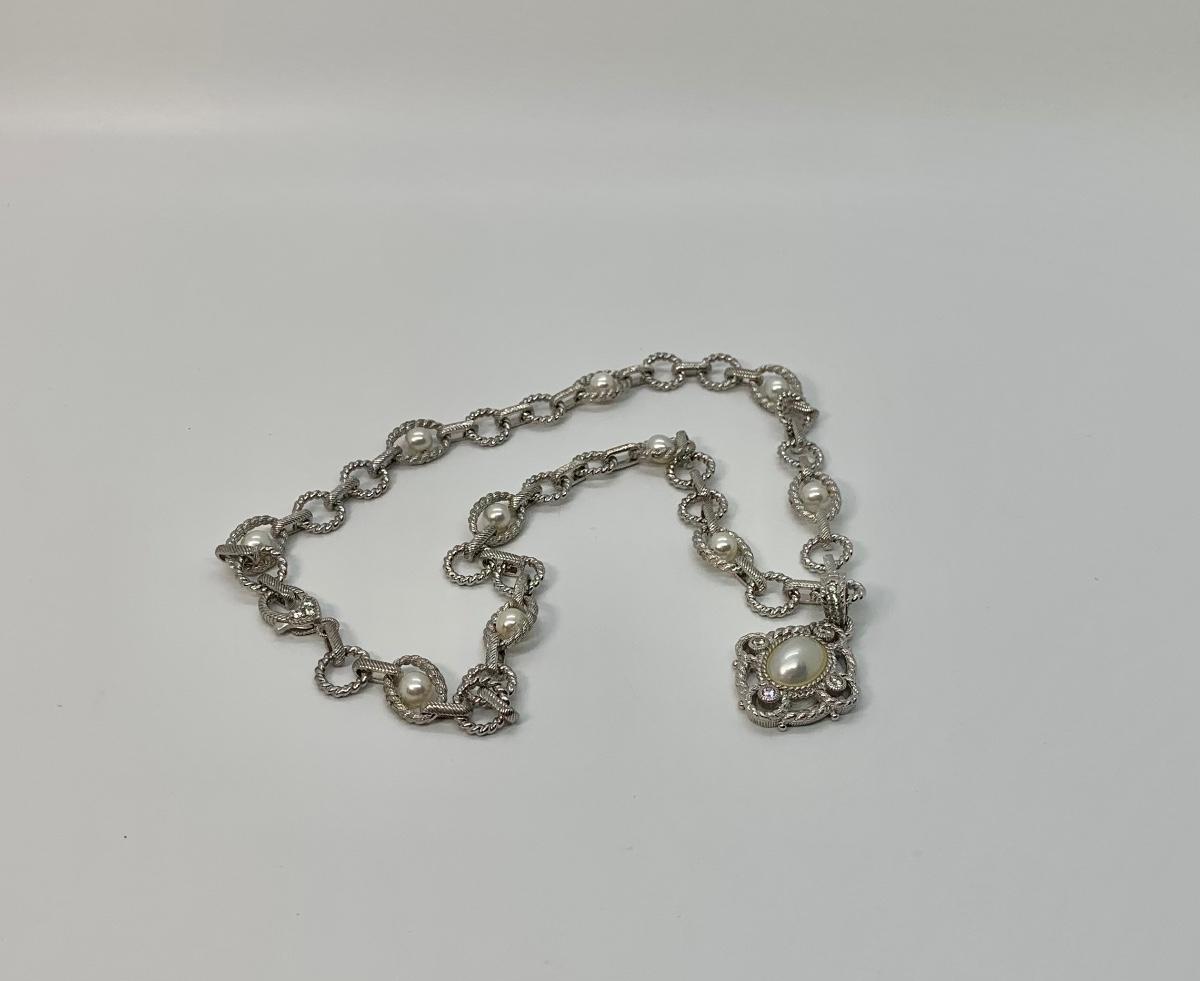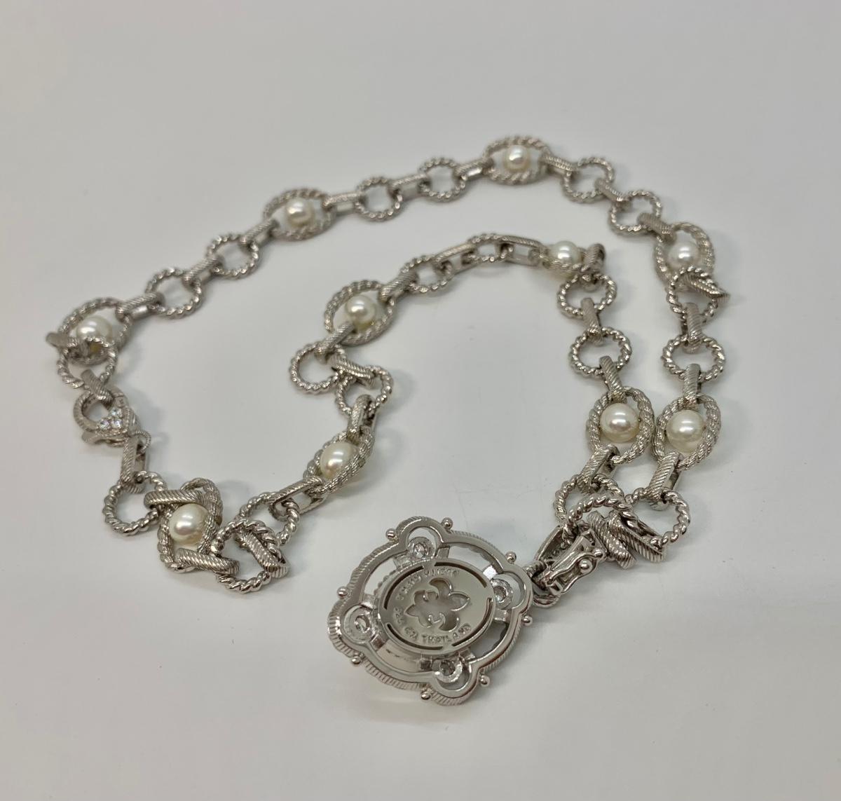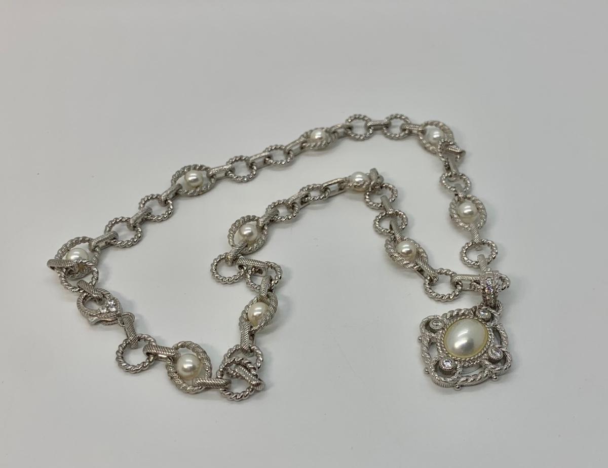 LOTJ123: New in Box Judith Ripka Sterling and Mabe' Pearl necklace 20" L