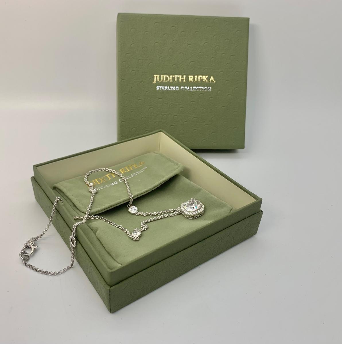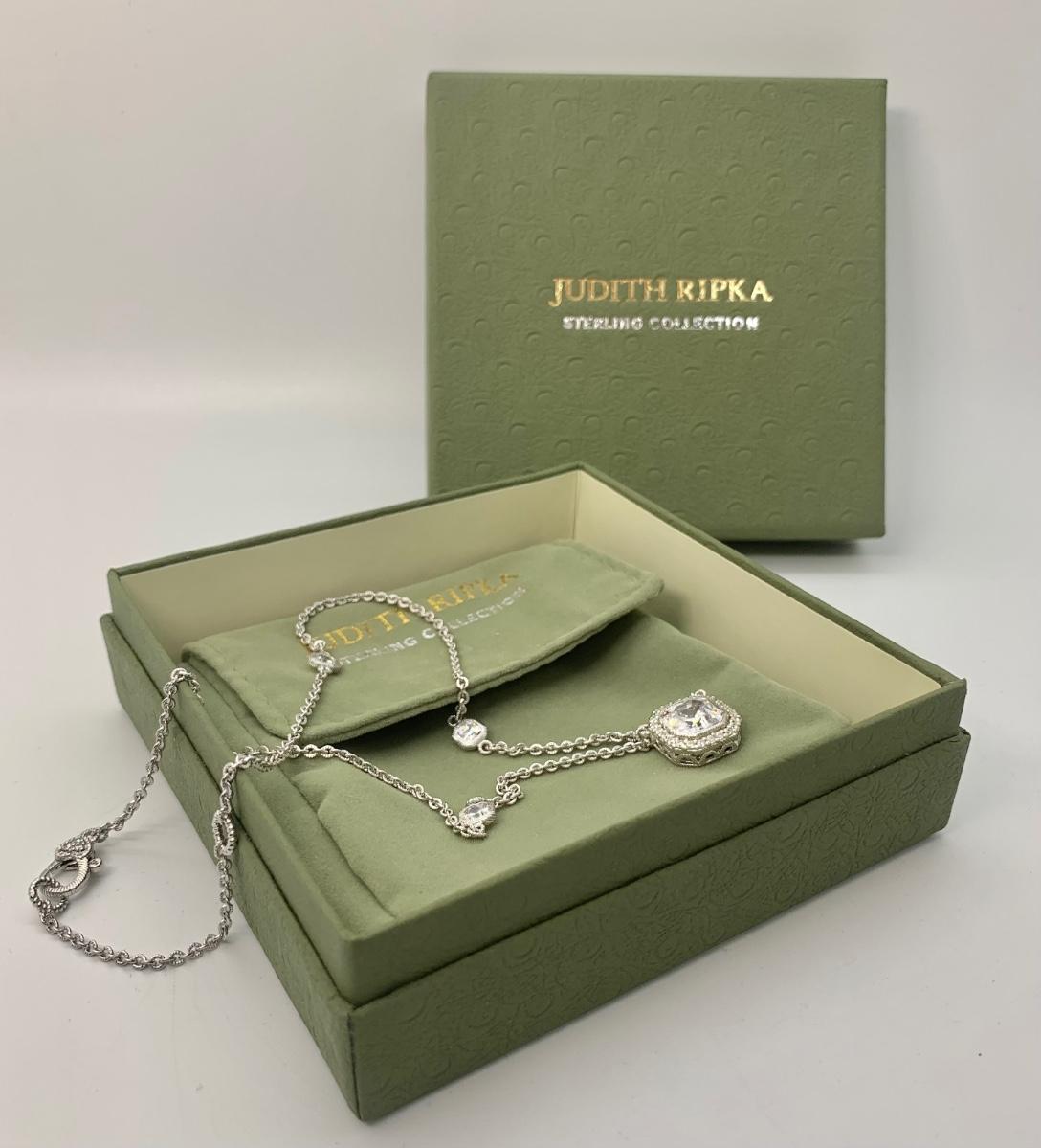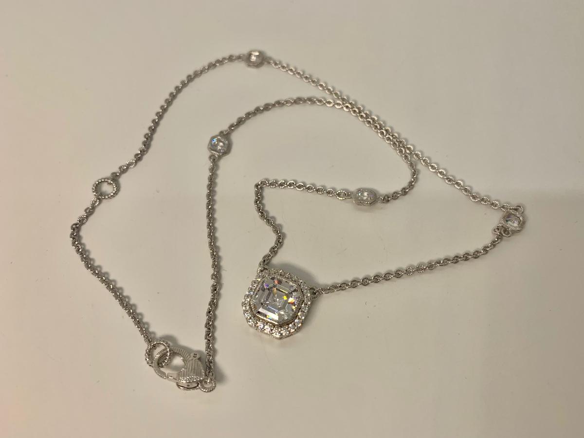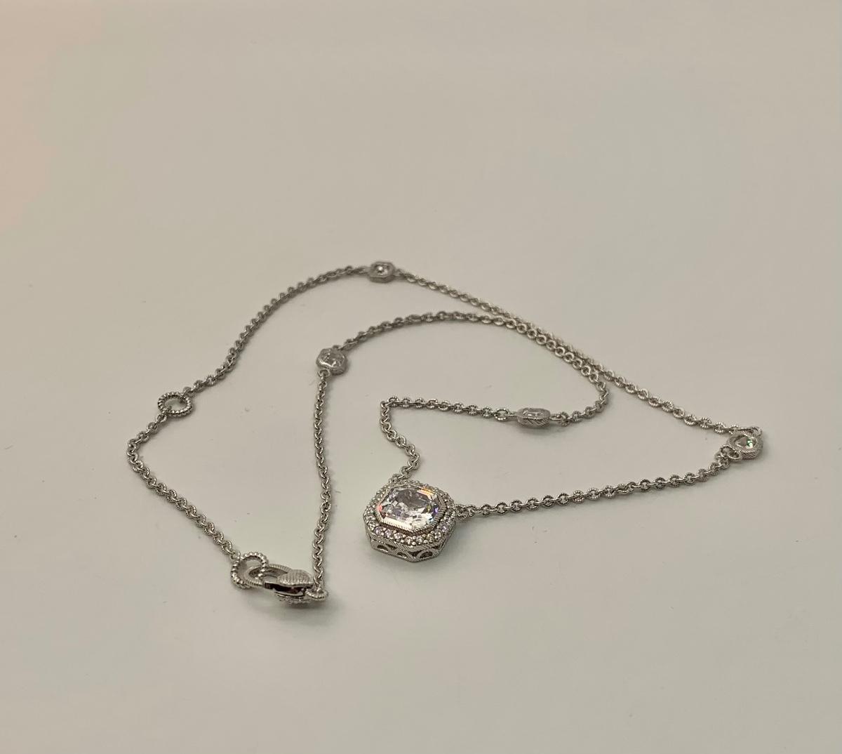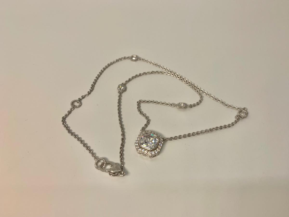 LOTJ: New in box Judith Ripka Sterling Silver Diamonique Asscher Necklace 20"L
