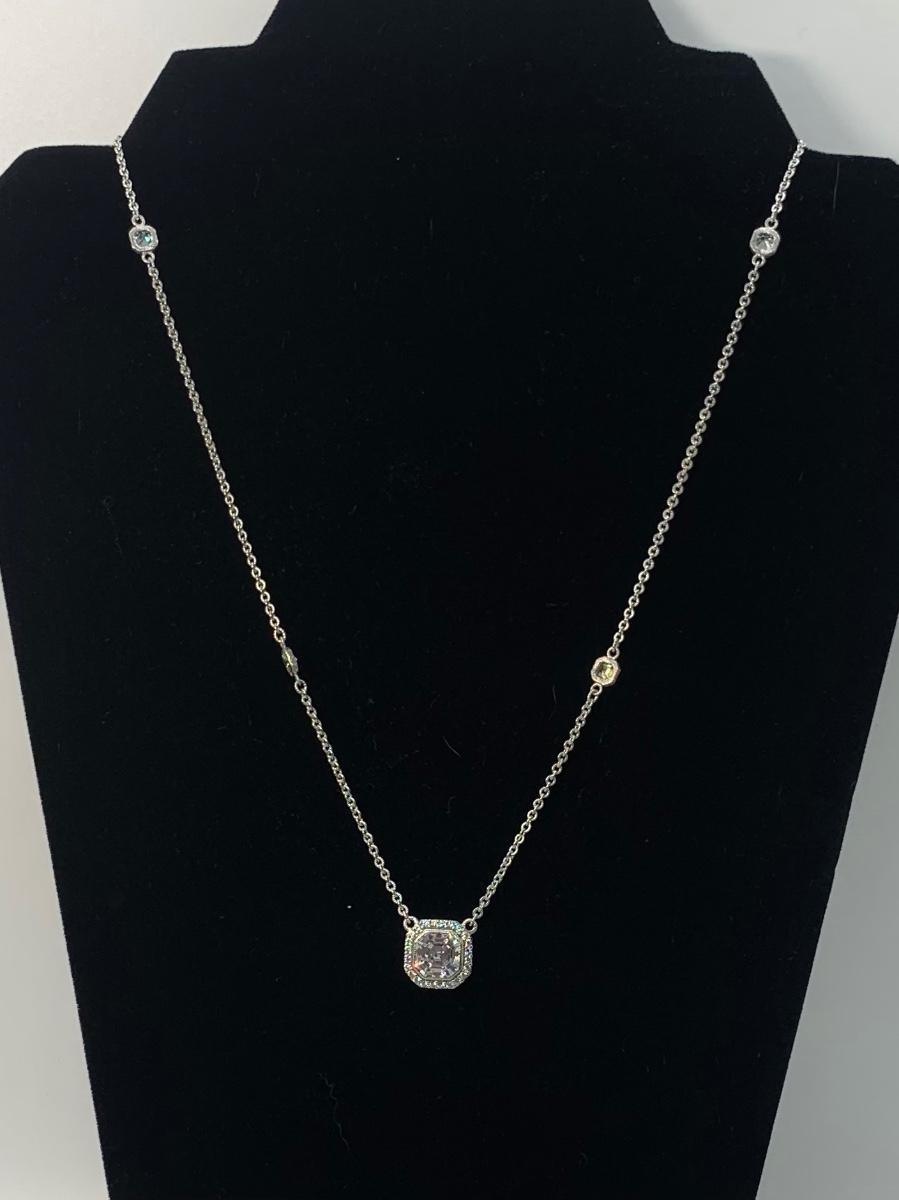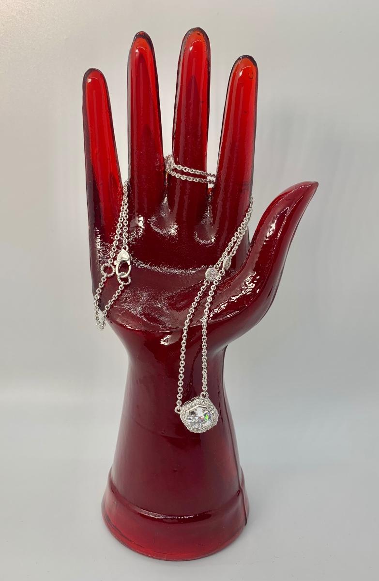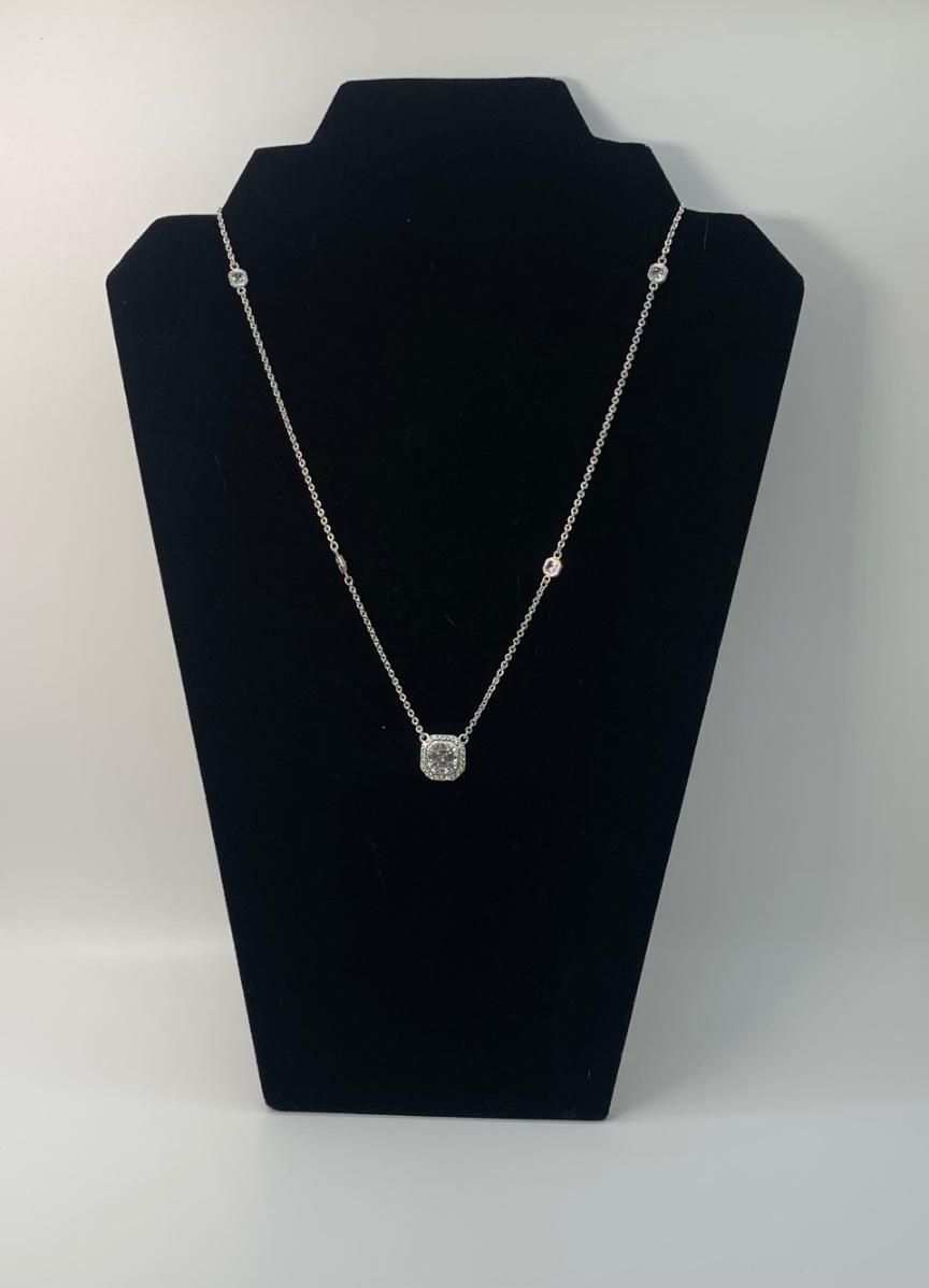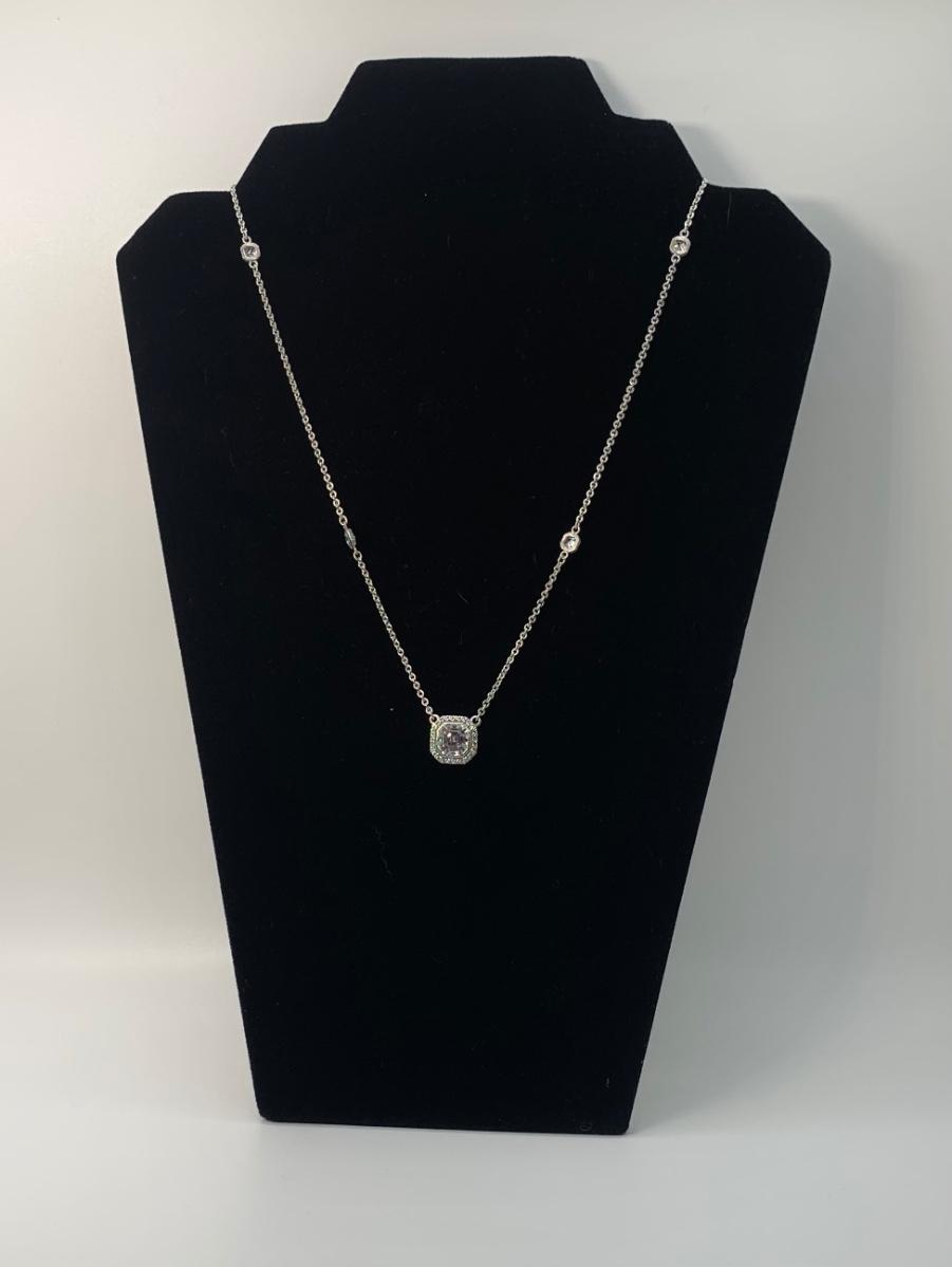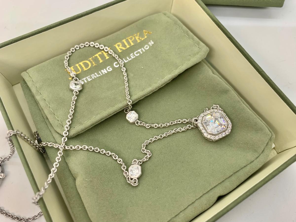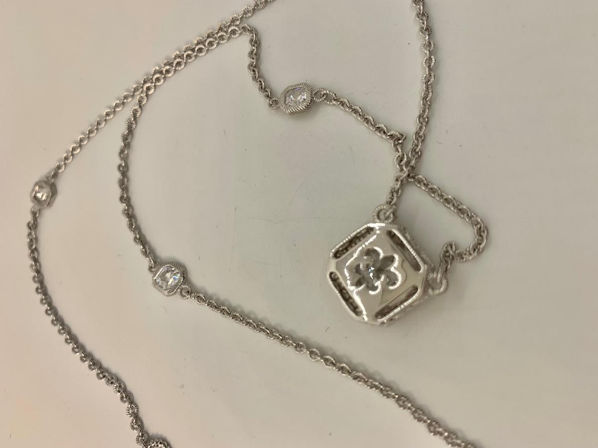 LOTJ: New in box Judith Ripka Sterling Silver Diamonique Asscher Necklace 20"L