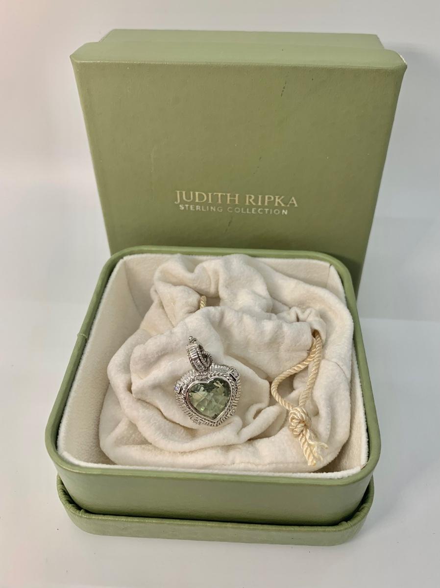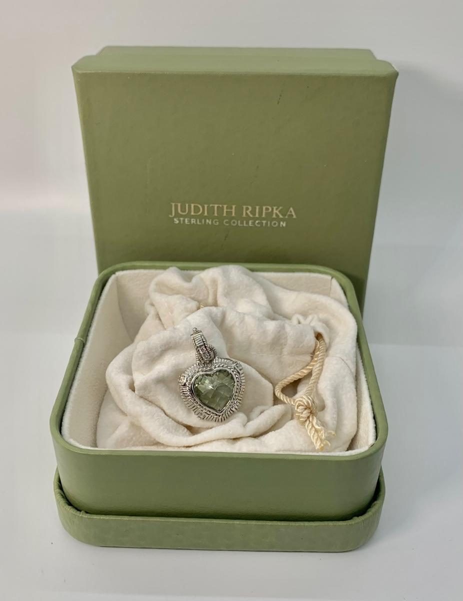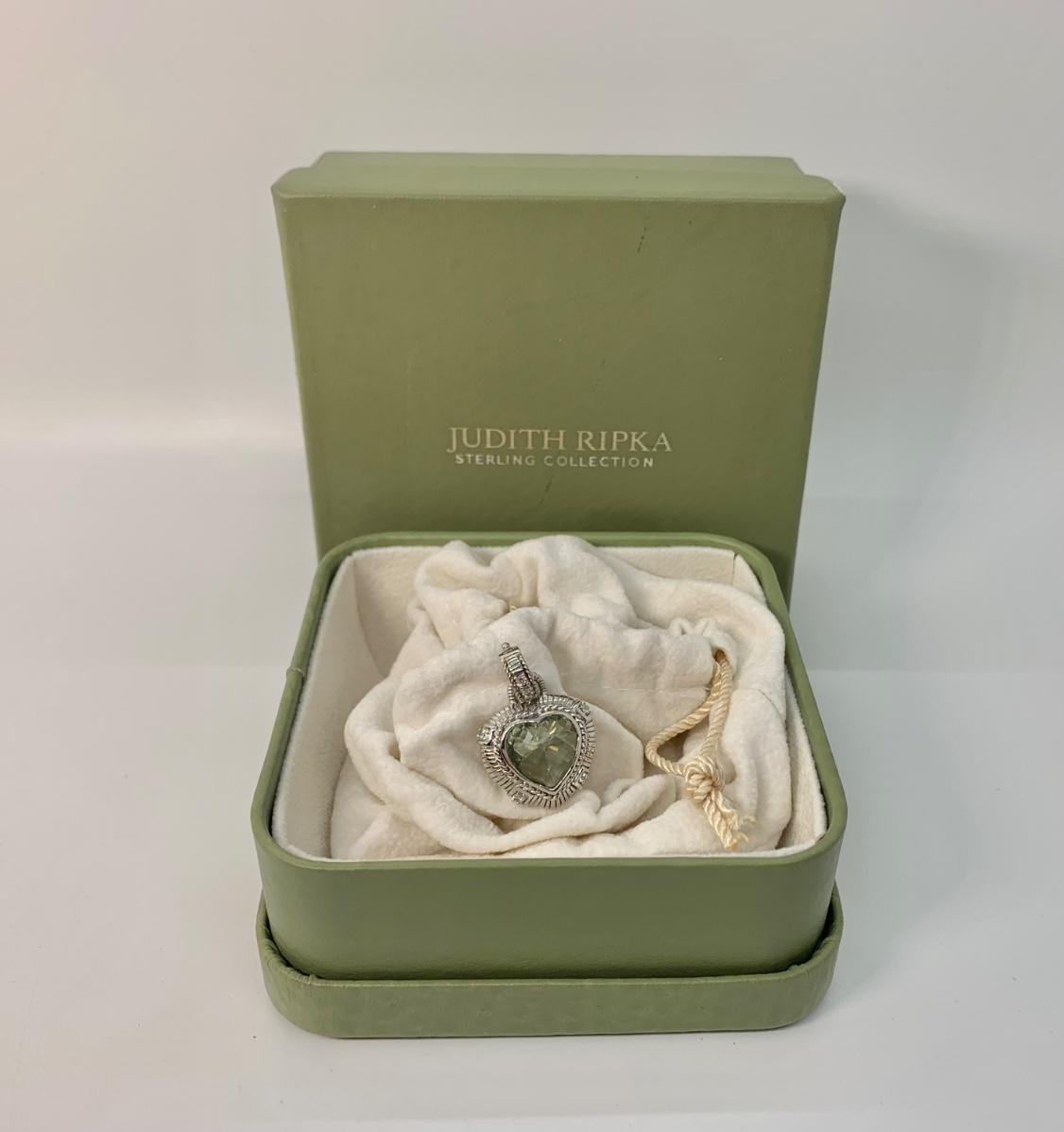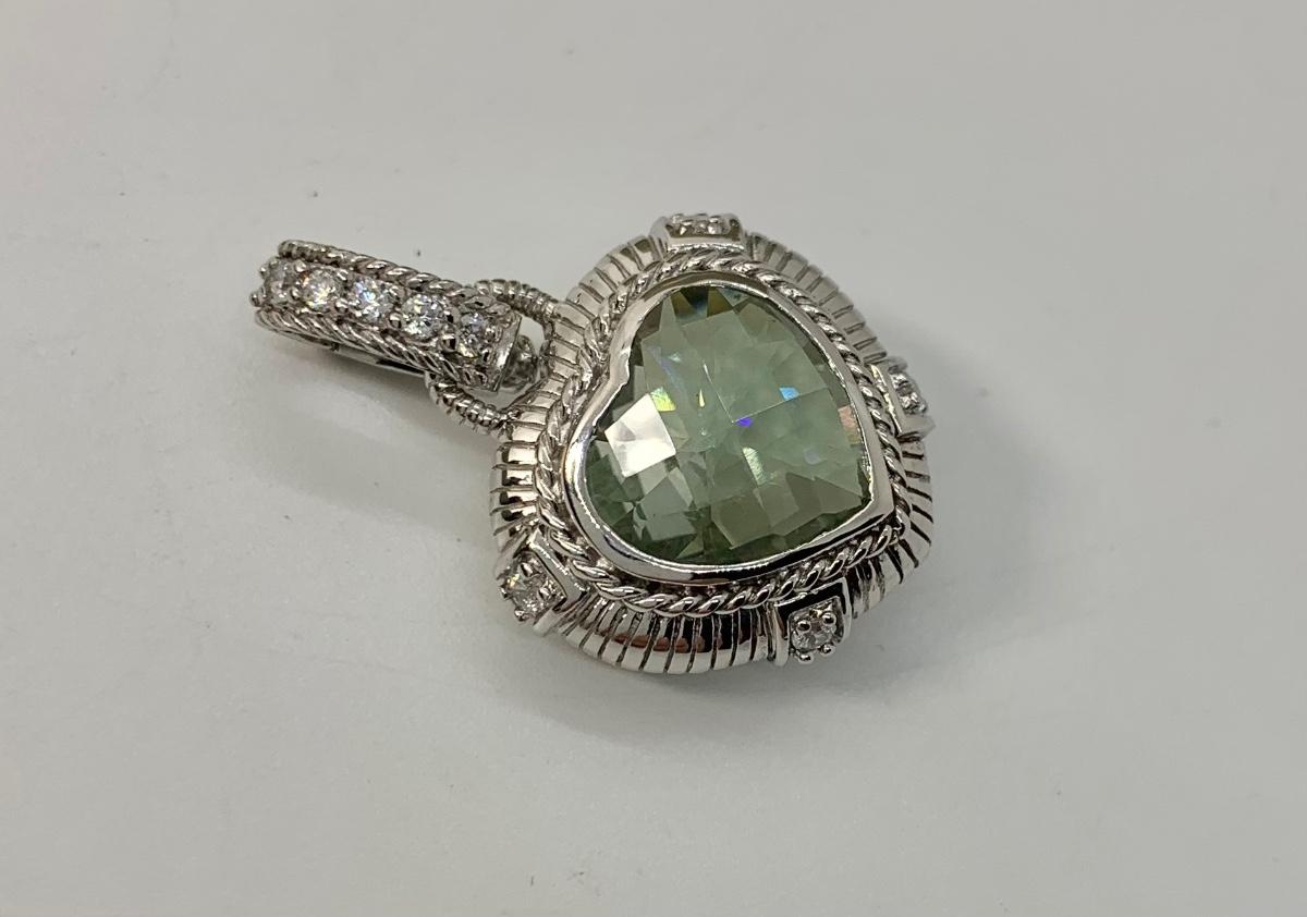 LOTJ128: New in box Judith Ripka Sterling double side Mint Quartz Gemstone Heart Enhancer/ Pendant