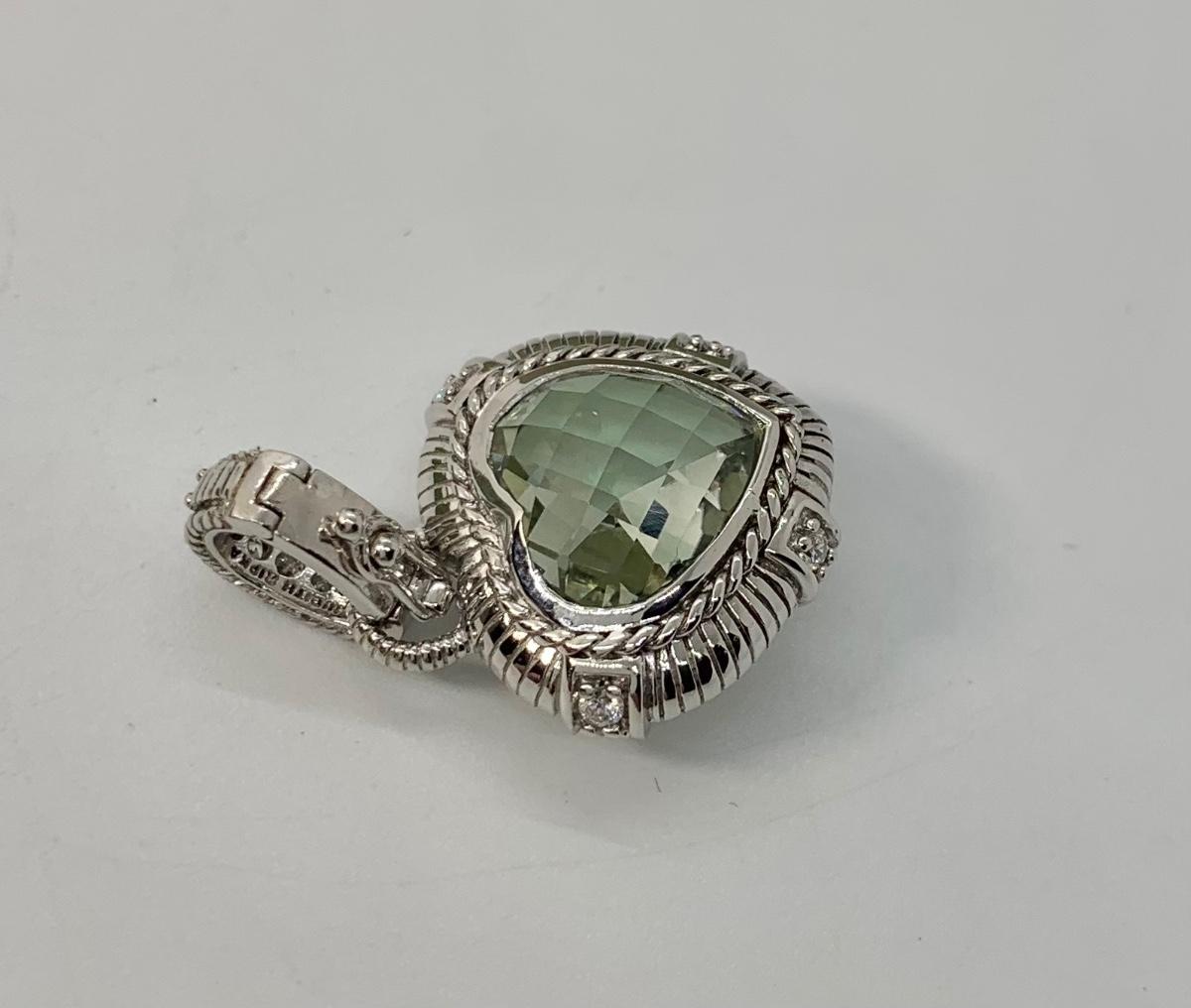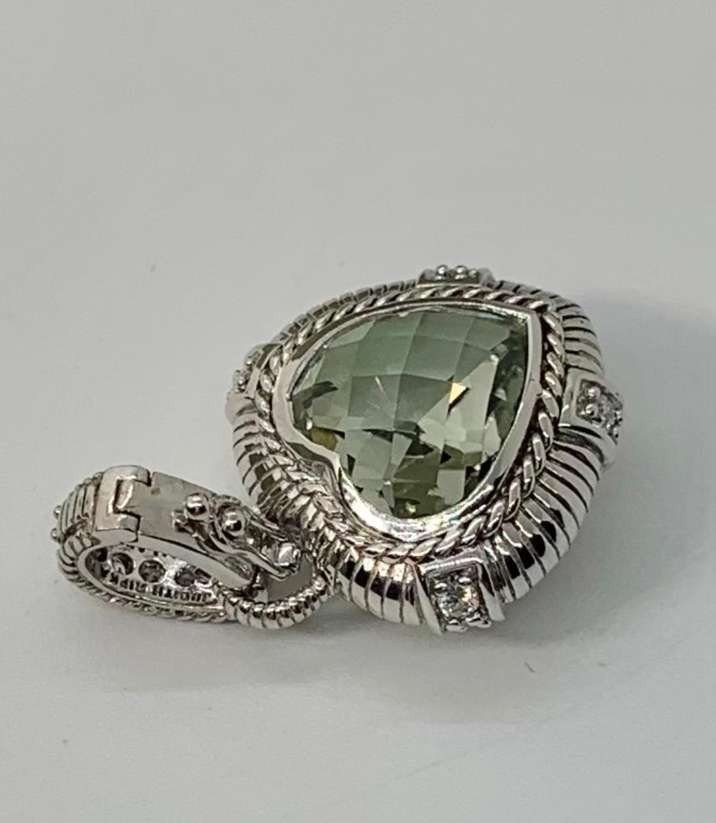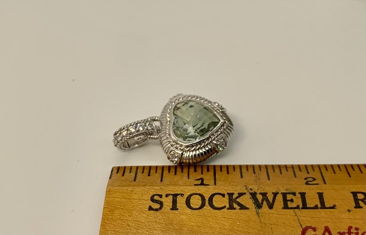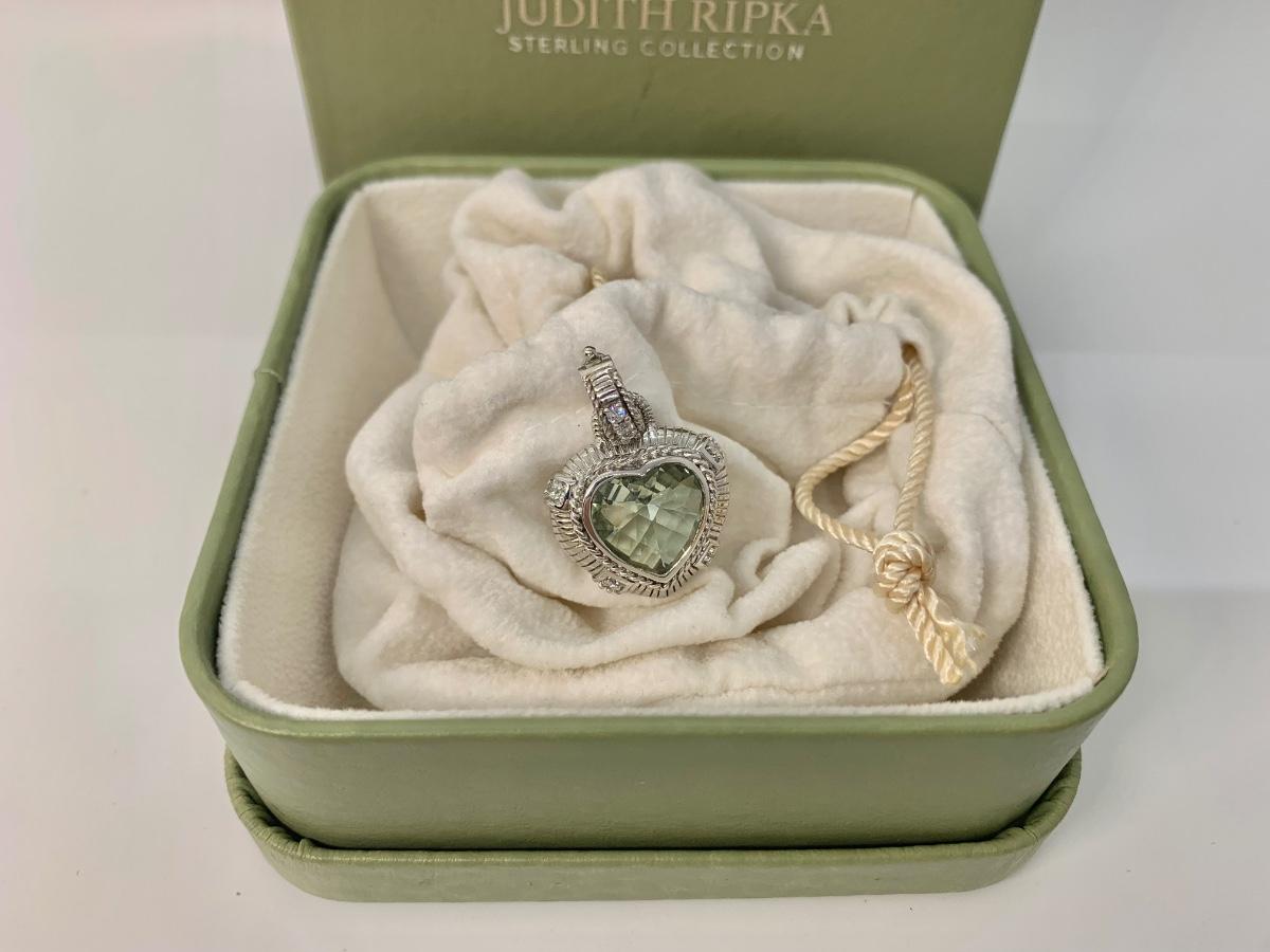 LOTJ128: New in box Judith Ripka Sterling double side Mint Quartz Gemstone Heart Enhancer/ Pendant