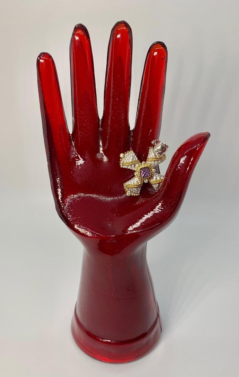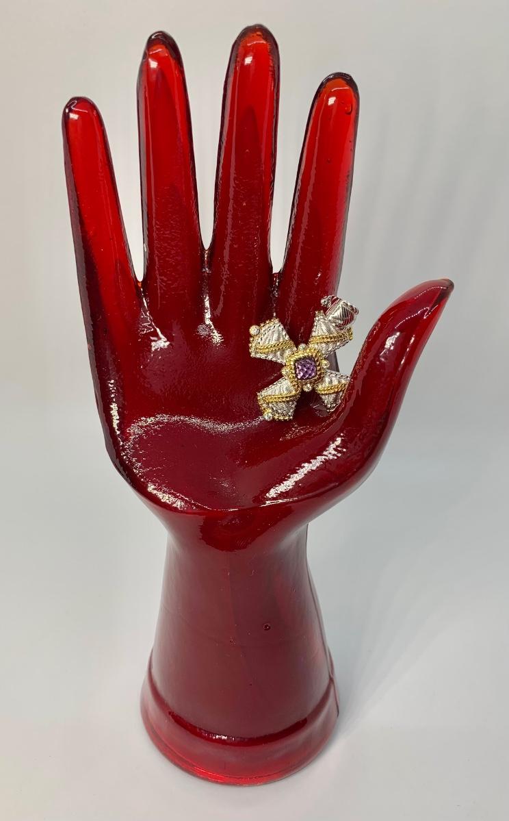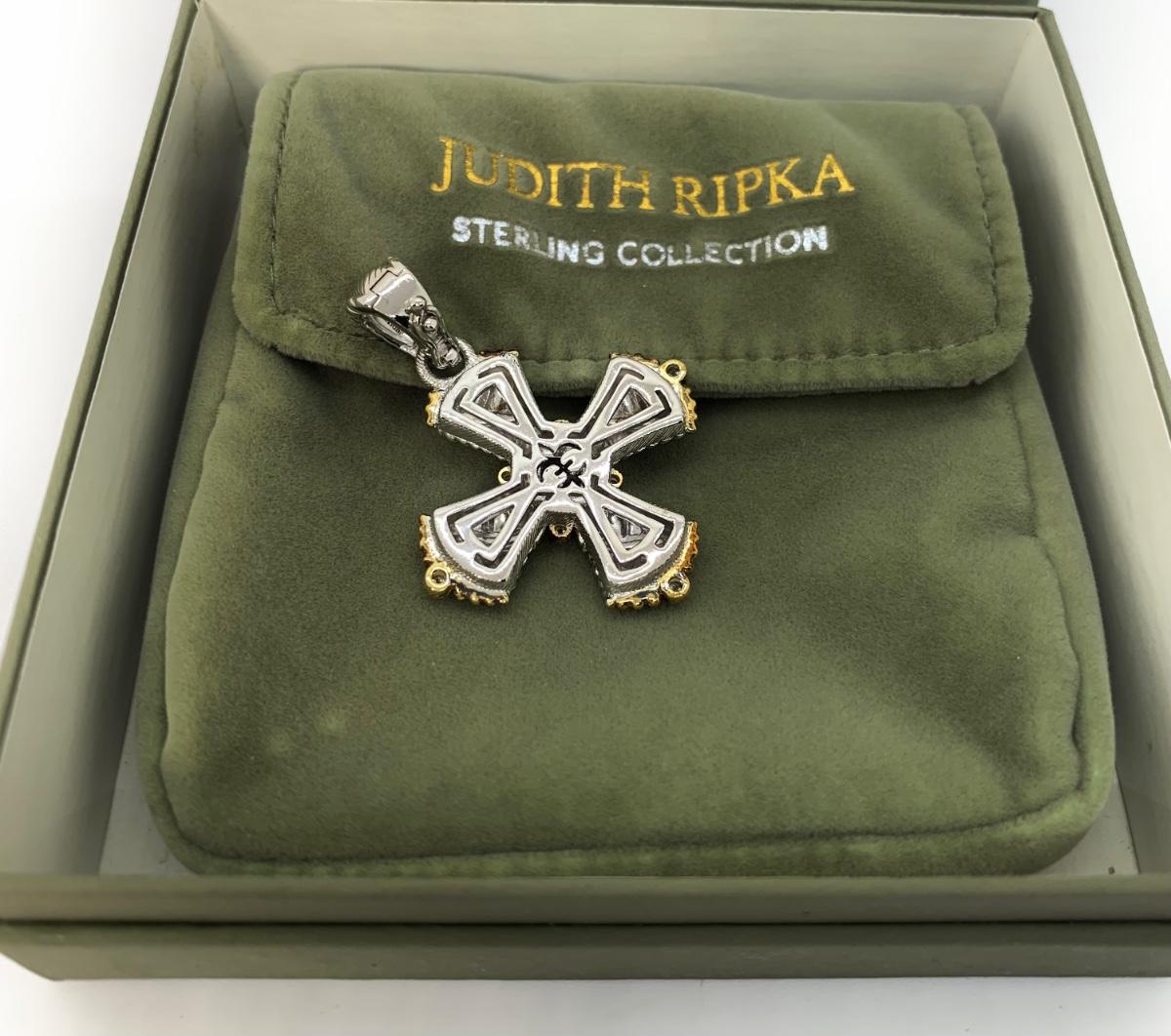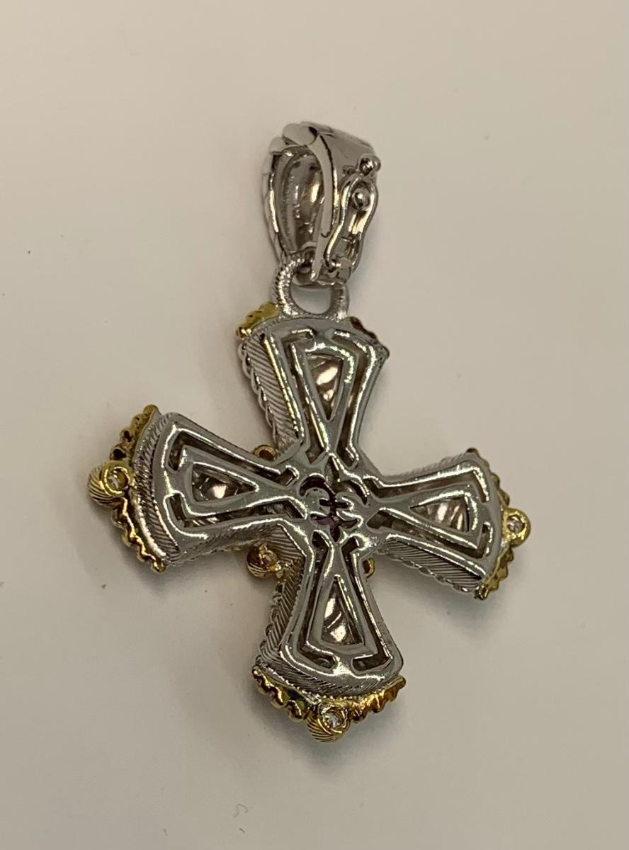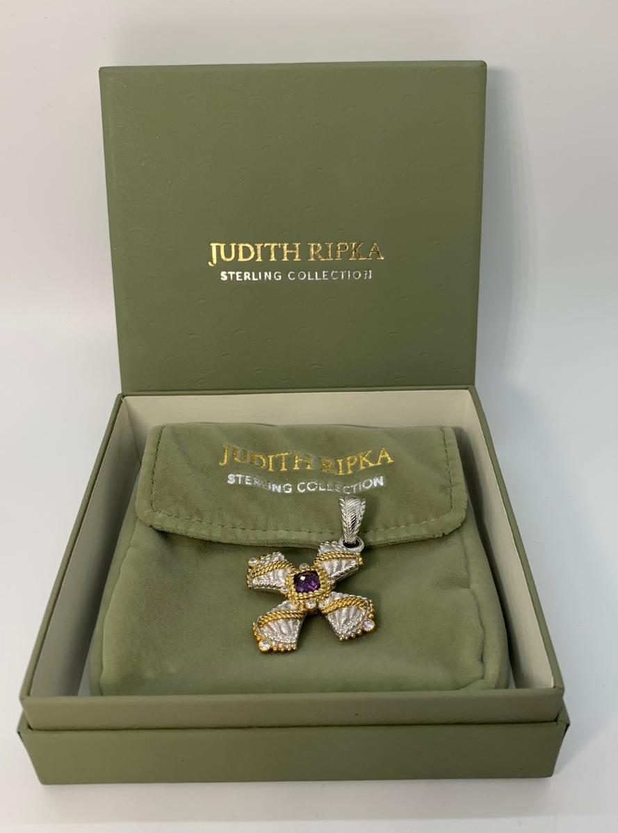 LOTJ131: New in box Judith Ripka Sterling 14k Clad Amethyst Cross Enhancer/ Pendant