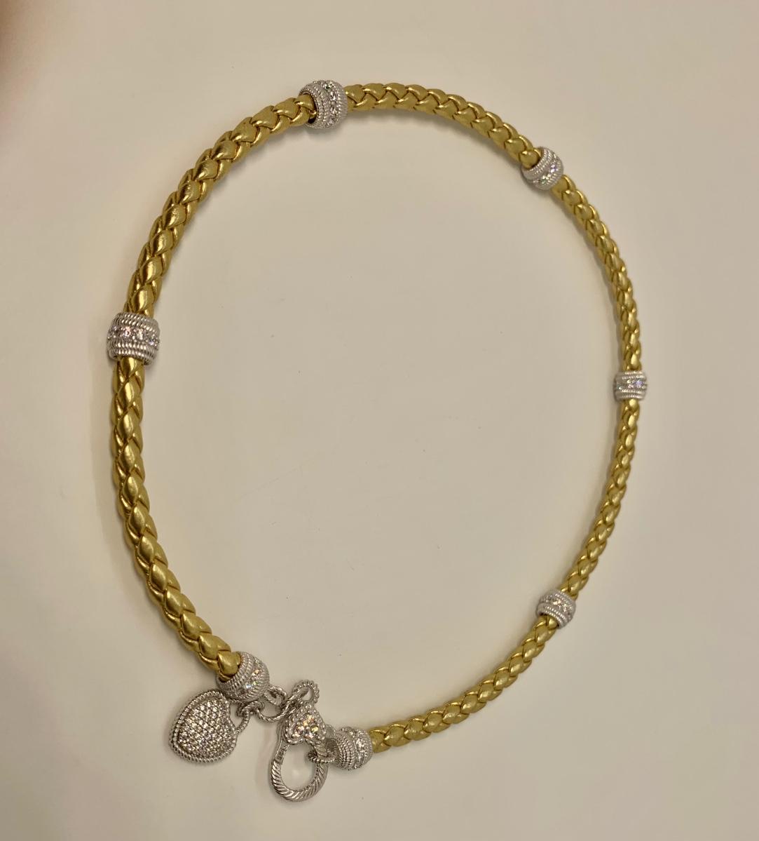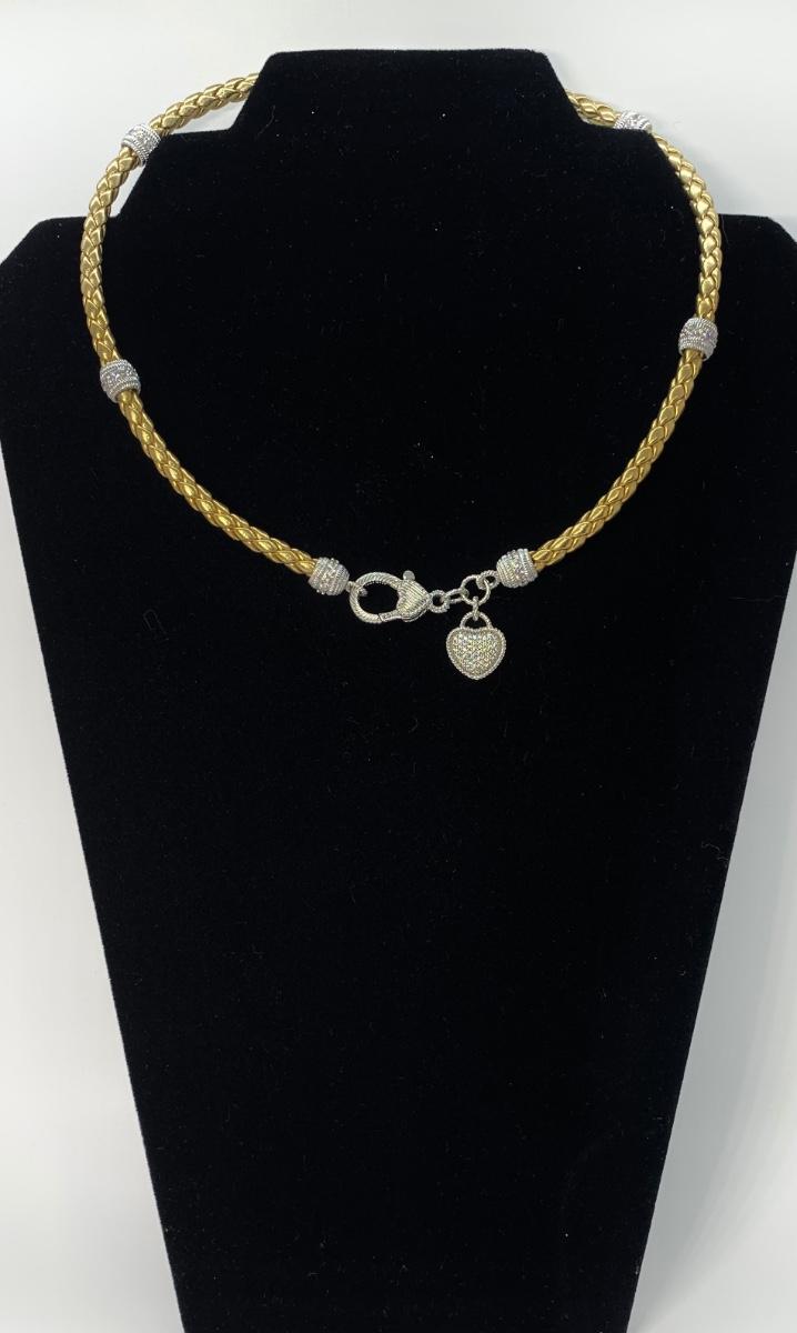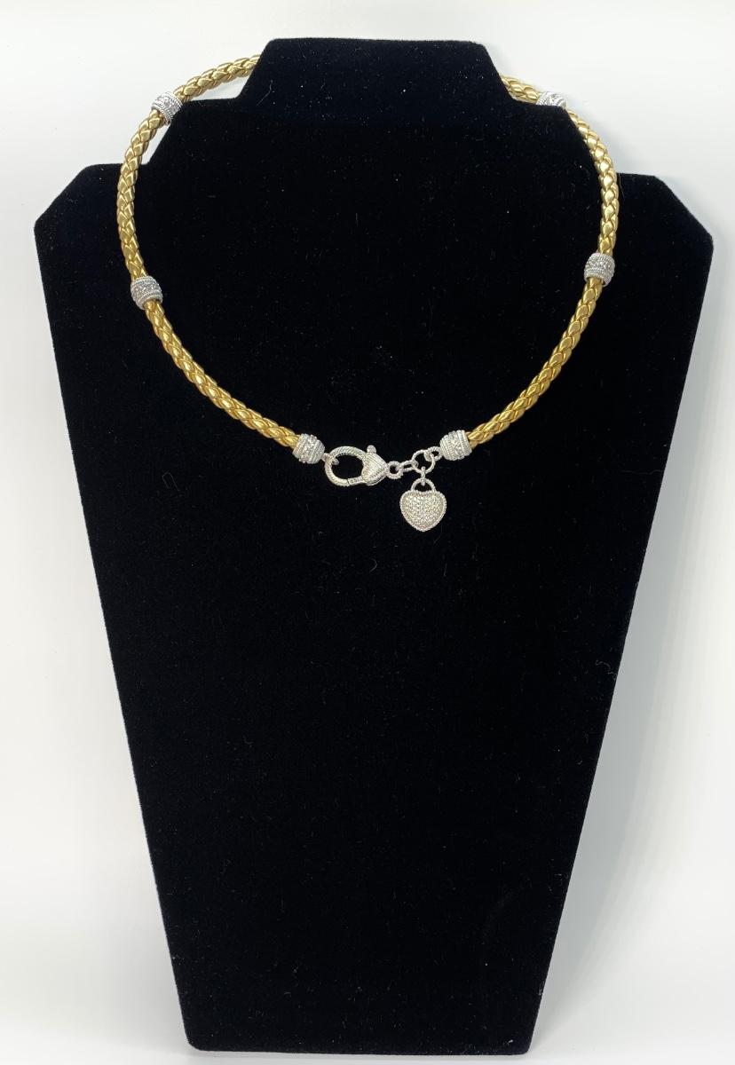 LOTJ132: New in Box Judith Ripka Sterling Silver Verona Braided 18" Necklace with heart charm