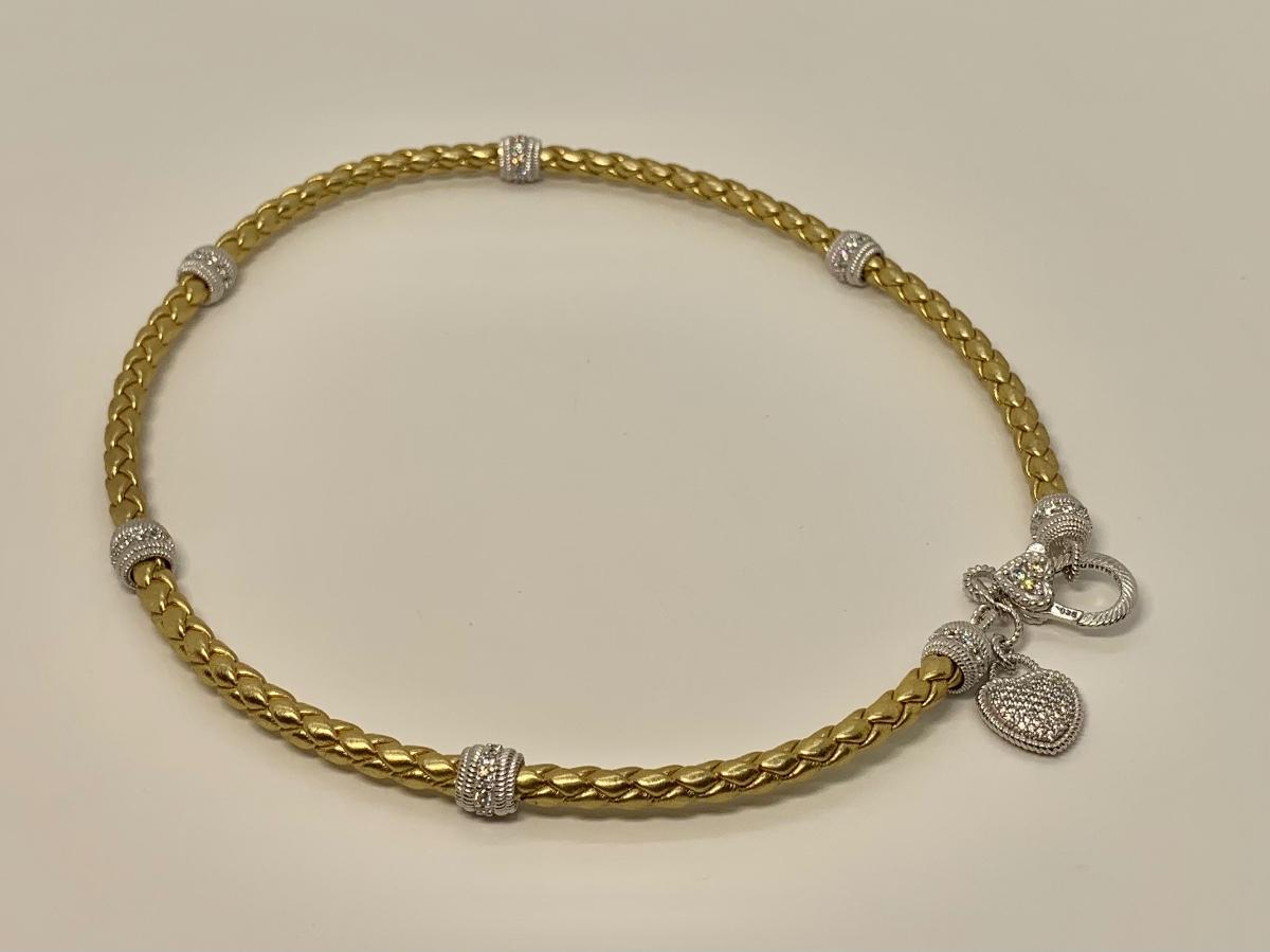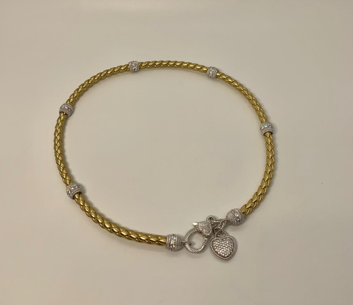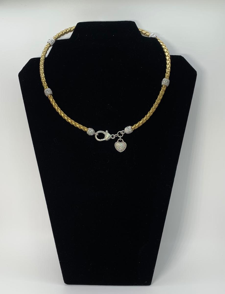 LOTJ132: New in Box Judith Ripka Sterling Silver Verona Braided 18" Necklace with heart charm