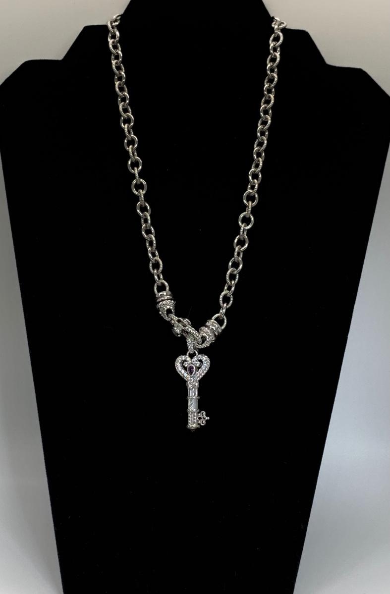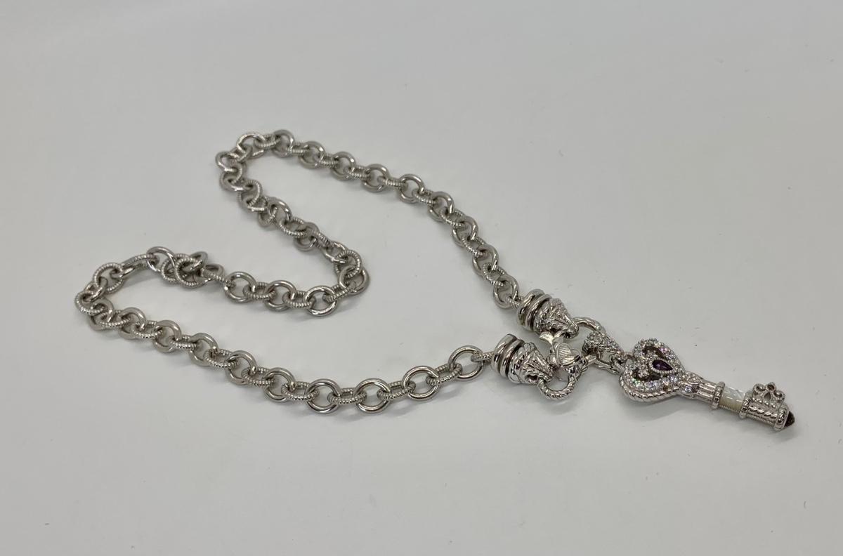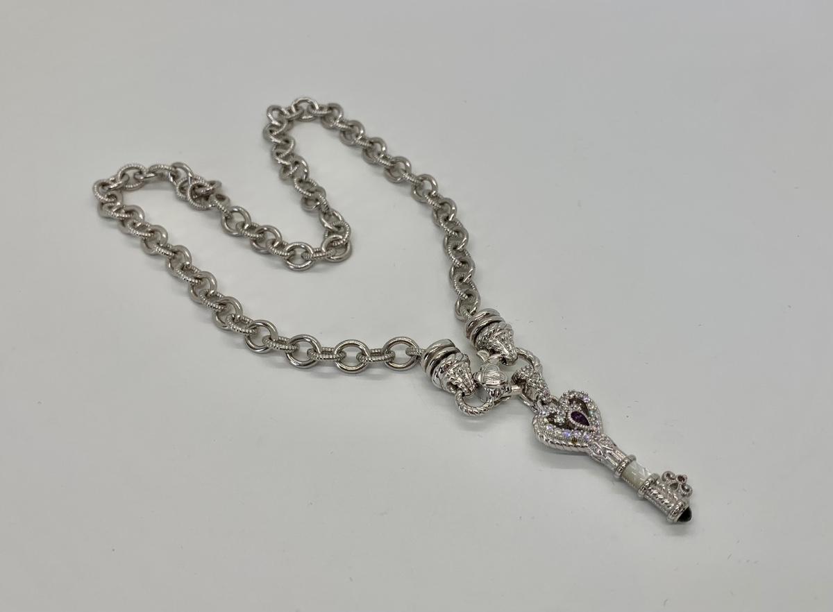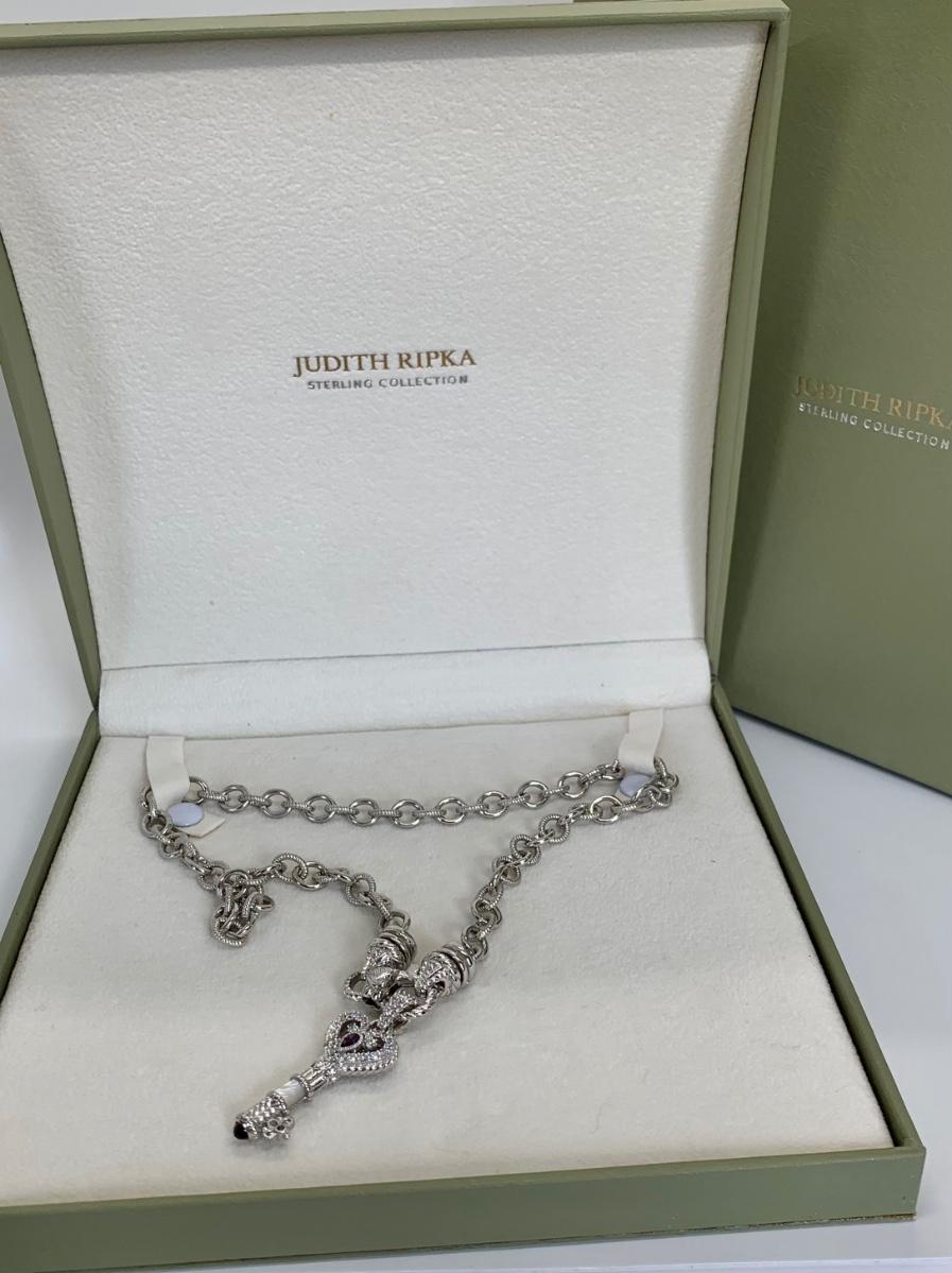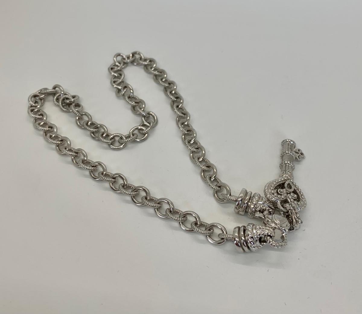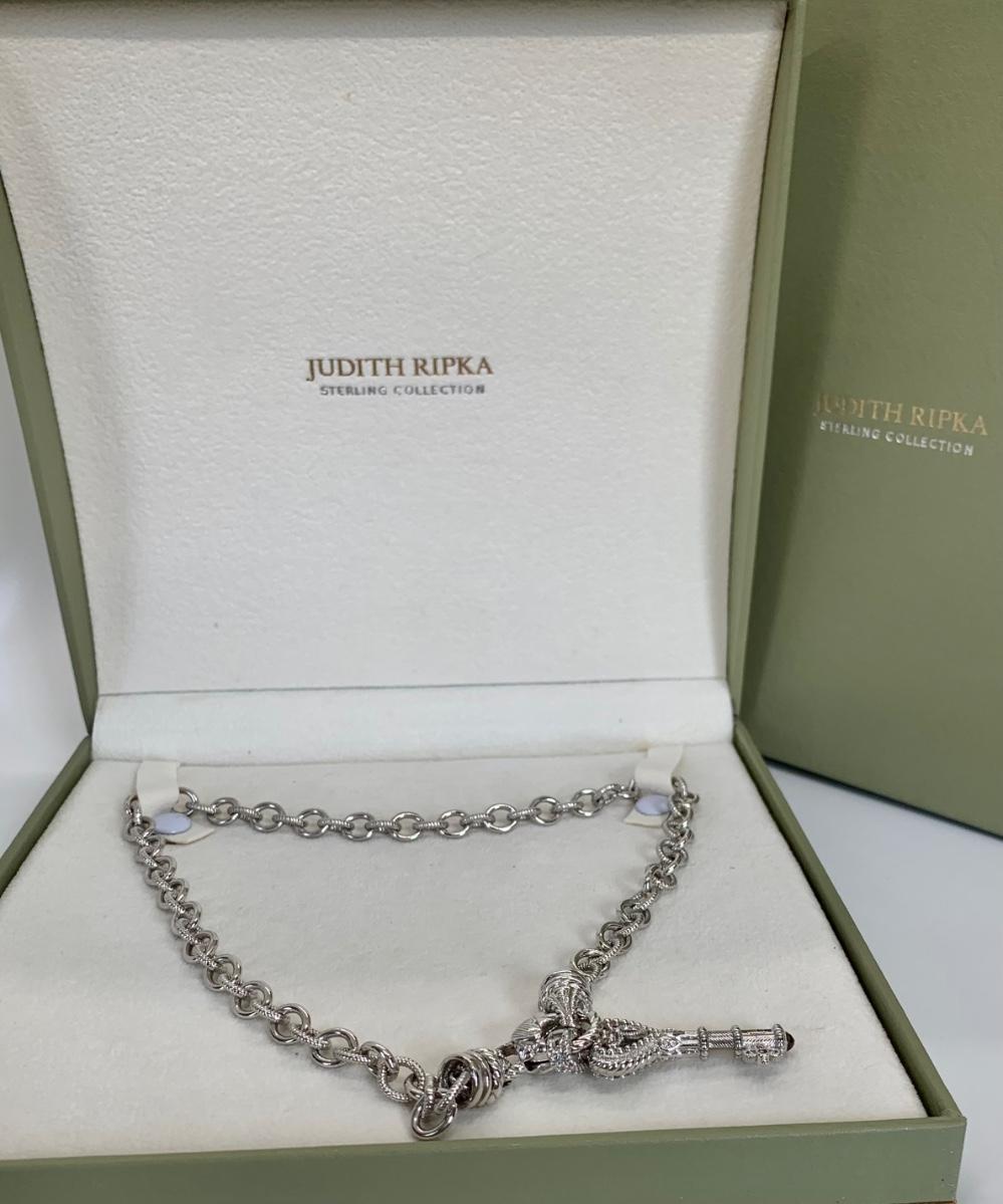 LOTJ134: New in box Judith Ripka 17" Textured Sterling Link Necklace with Magnetic Clasp