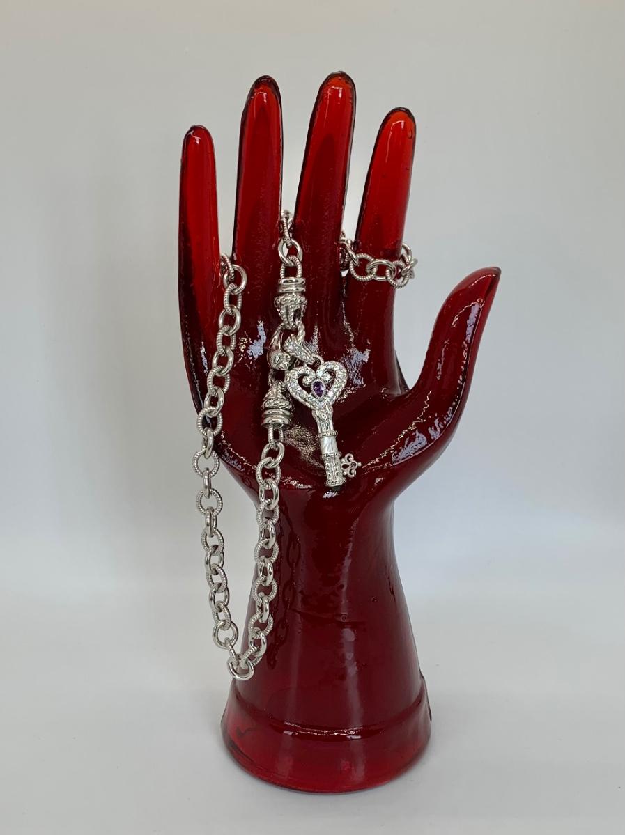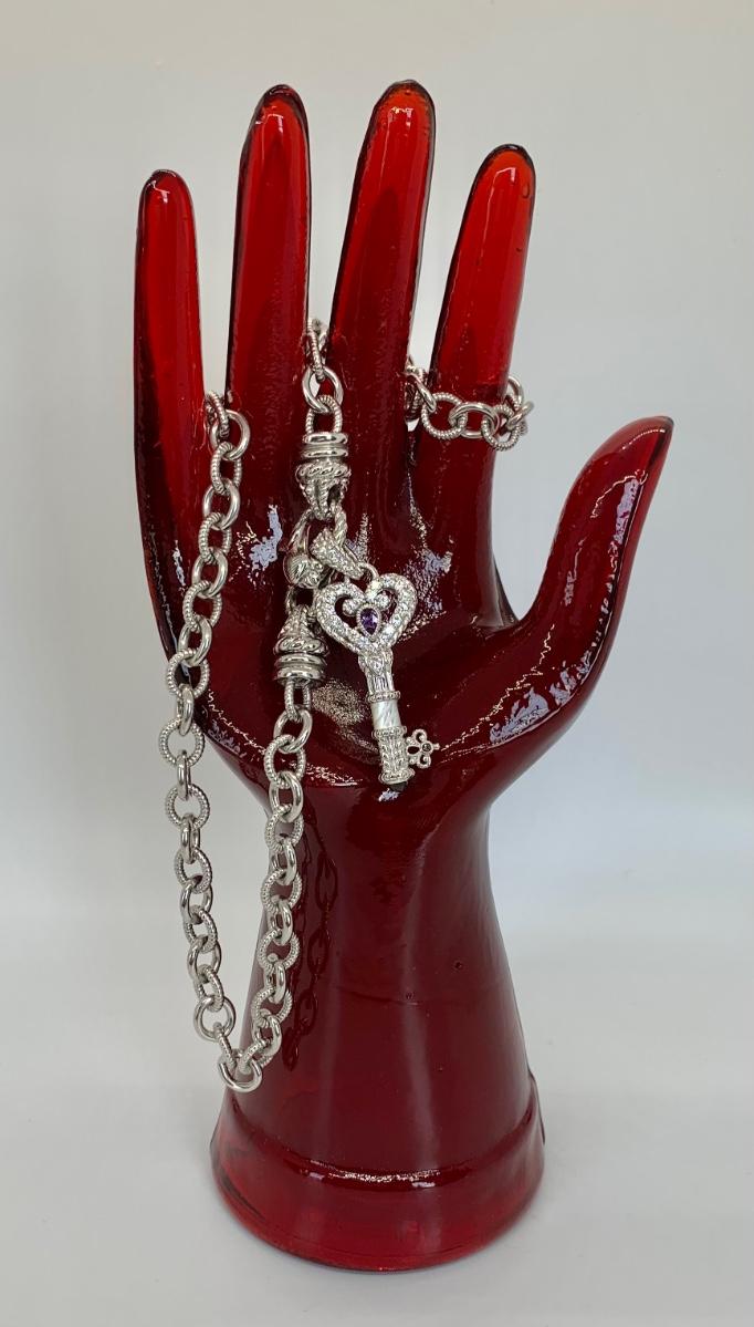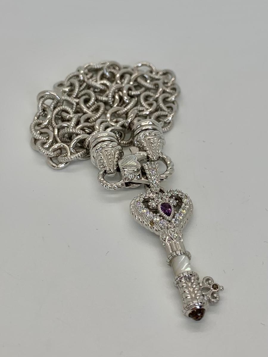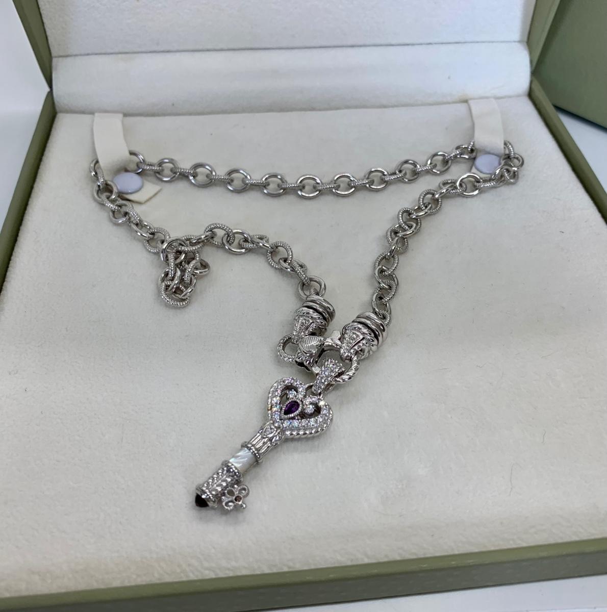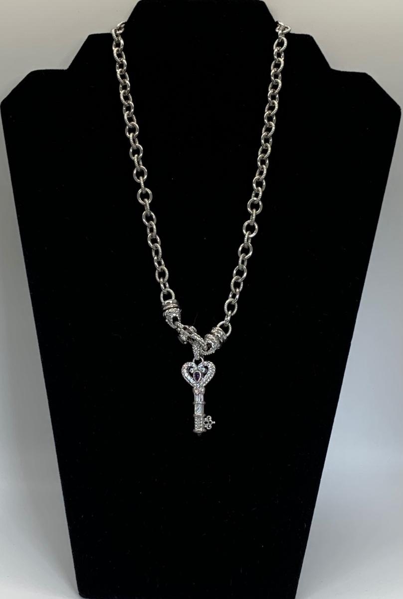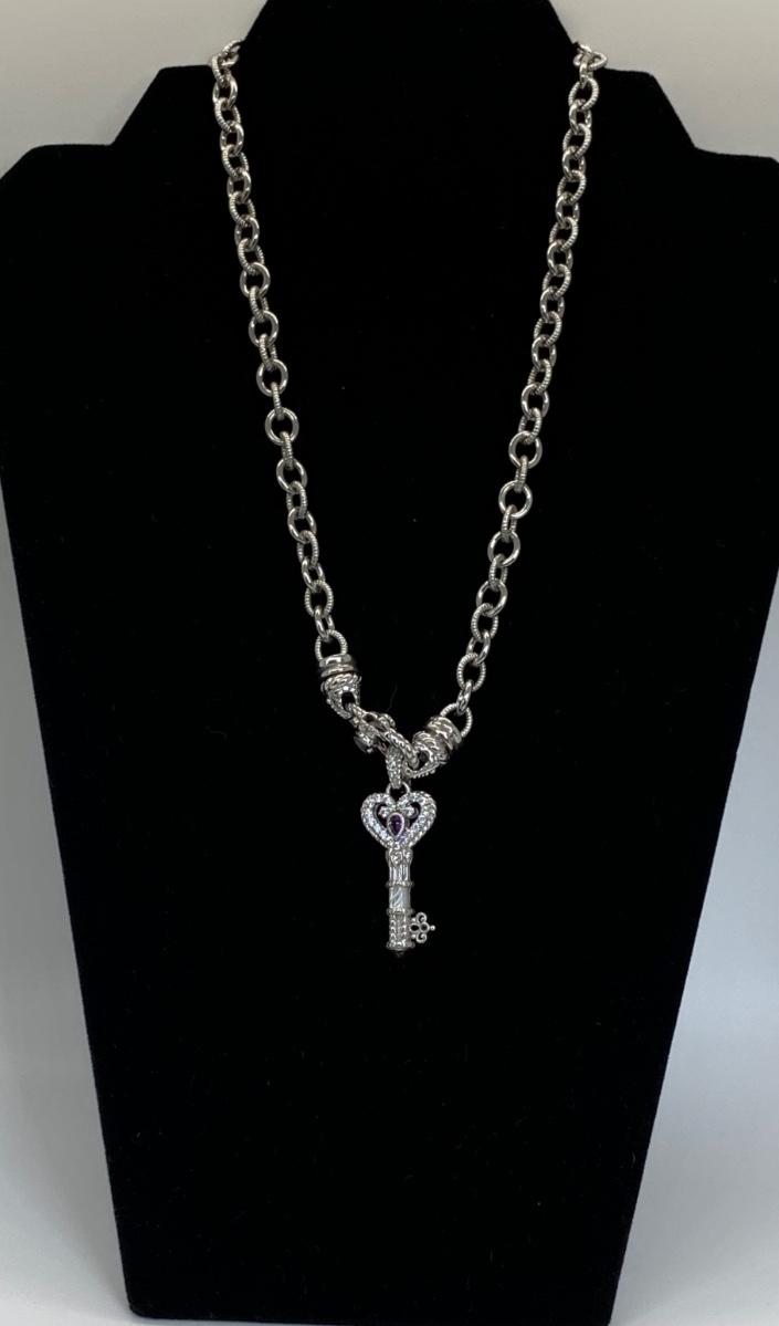 LOTJ134: New in box Judith Ripka 17" Textured Sterling Link Necklace with Magnetic Clasp